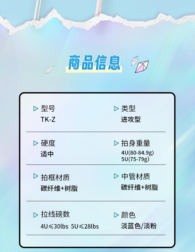 【Victory Crystal】TK-Z【4U】Light Pink【White String】-Empty Racket, 【Victory Crystal】TK-Z【4U】Light Pink【White Stri...