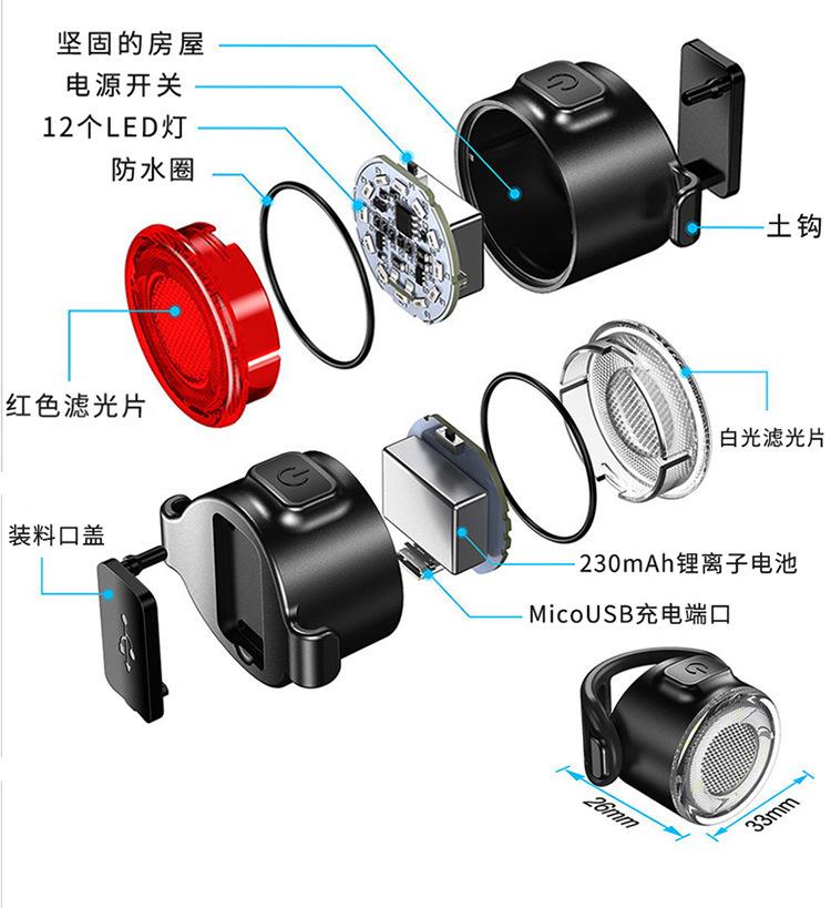 Luz Trasera de Bicicleta USB de Alto Brillo, Juego de Faro Delantero para Bicicleta de Montaña, Luz de Advertencia de Seguridad para Ciclismo Nocturno, Accesorios de Equipo de Ciclismo