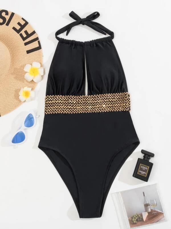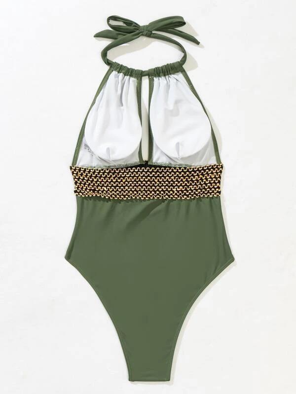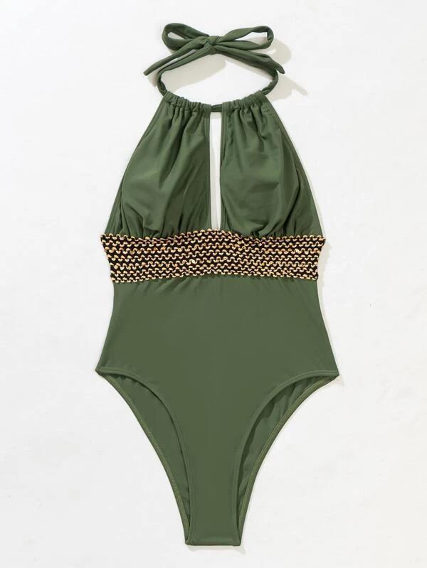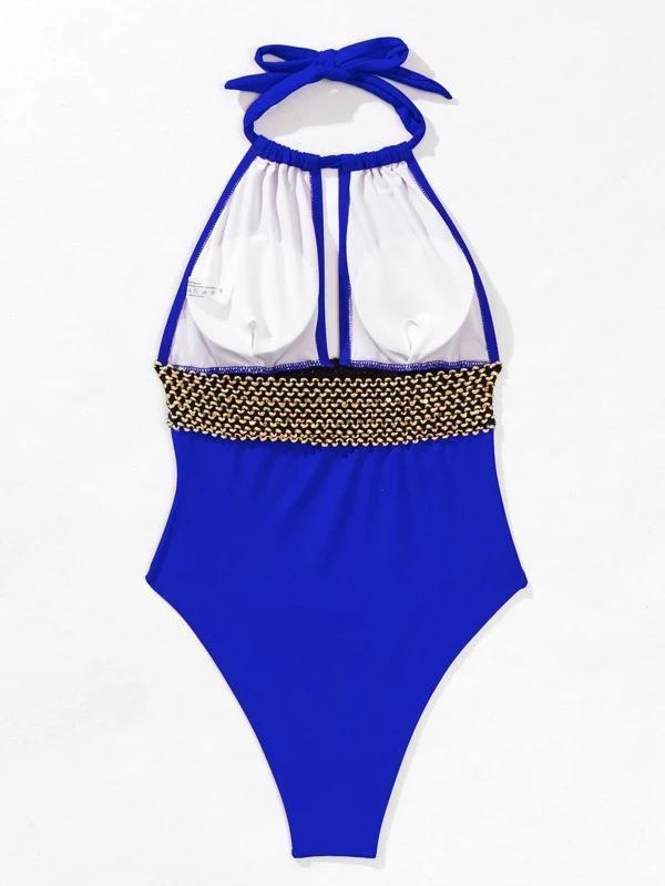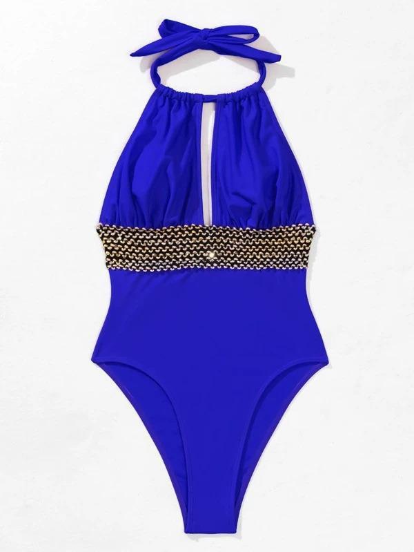 [Traje de baño de una pieza europeo y americano para mujer] Amazon transfronterizo nuevo sexy sin espalda halter con cordones apariencia traje de baño al por mayor