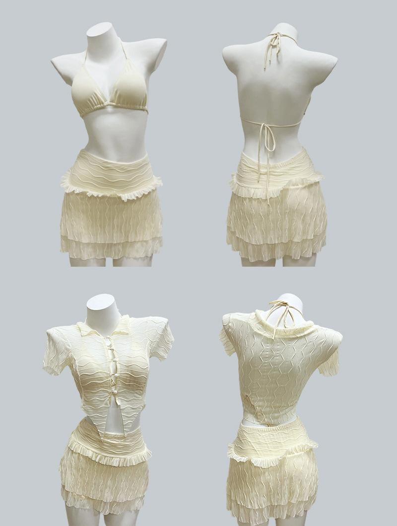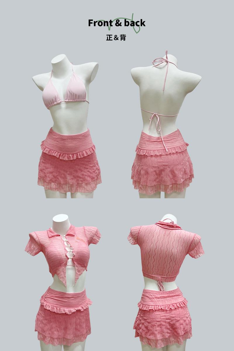 Traje de baño de mujer de dos piezas Deseo puro Adelgazante Bikini sexy Conservador Cubre abdomen Conjunto de tres piezas Traje de baño para parque acuático Venta al por mayor