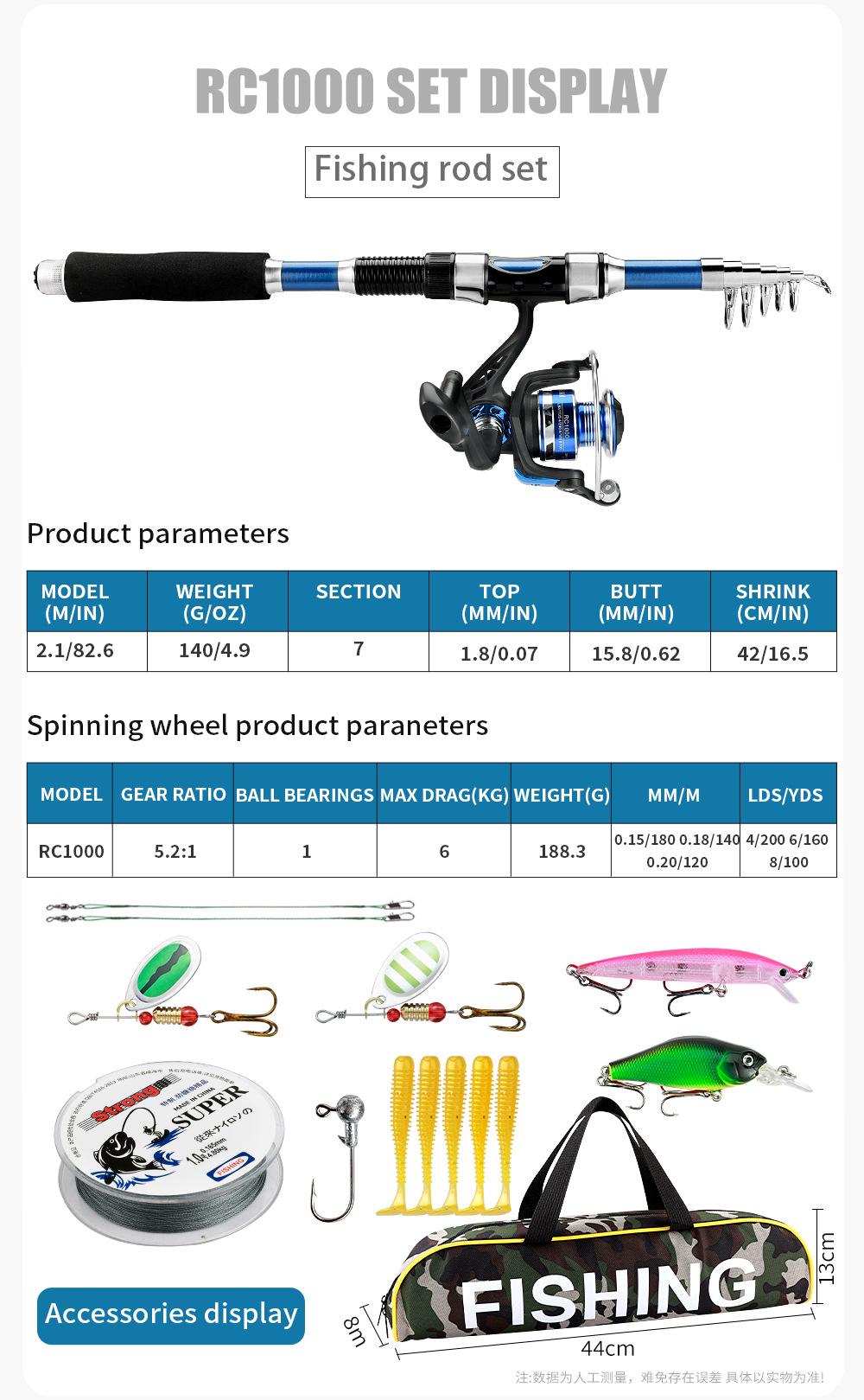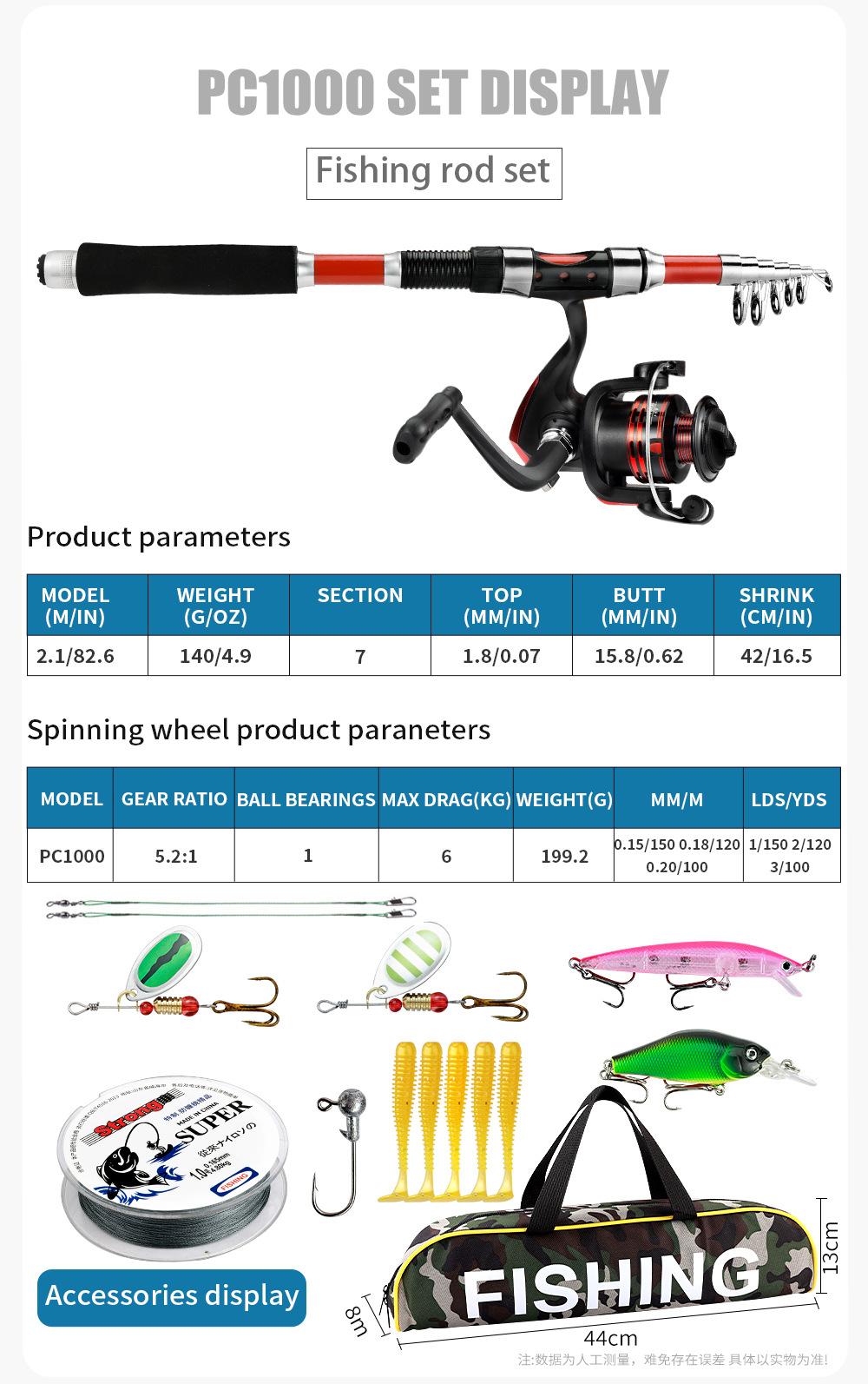 Tiburón | Caña de Pescar de 2.1m Caña Lua Set de Equipo de Pesca Carrete Giratorio Carrete Metálico Combinación de Cebo Blando Cebo Duro Venta al por Mayor Transfronteriza