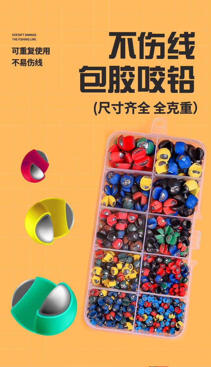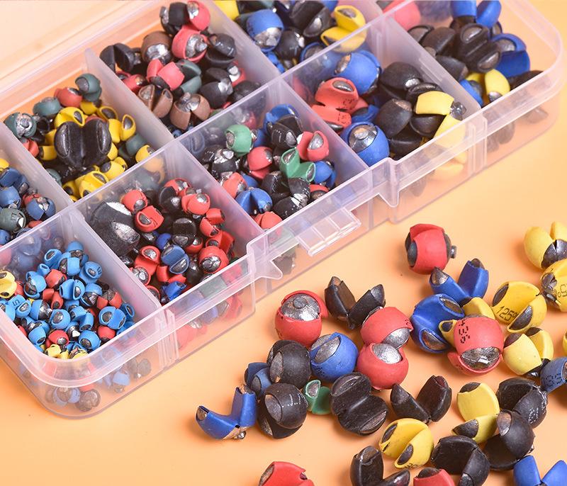 Compra Plomos de mordida recubiertos de goma en caja 30 piezas 110 piezas Clip de plomo Plomo abierto No daña la línea Accesorios de plomo para pesca Plomo estañado Equipo de pesca al por mayor en Joom.pro