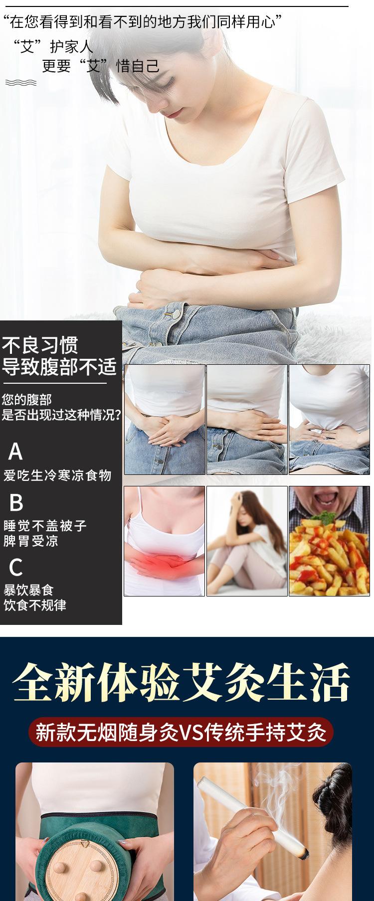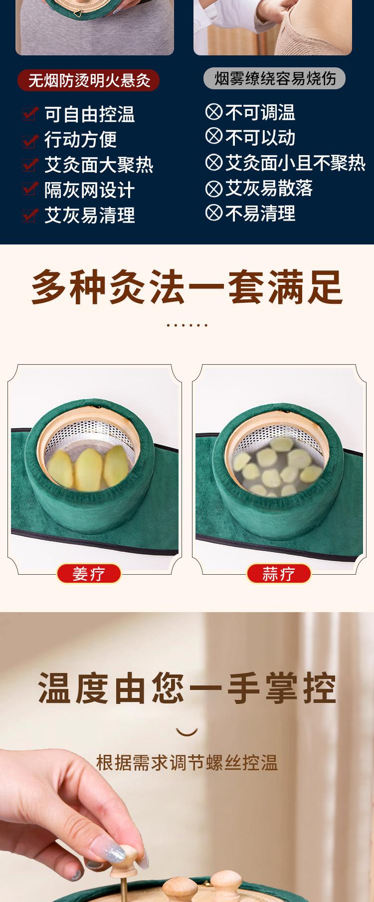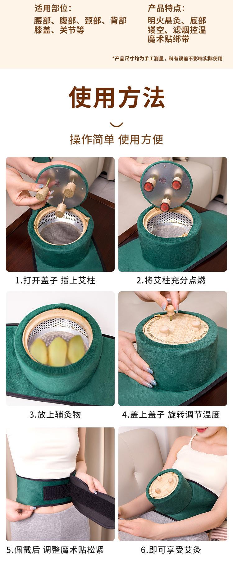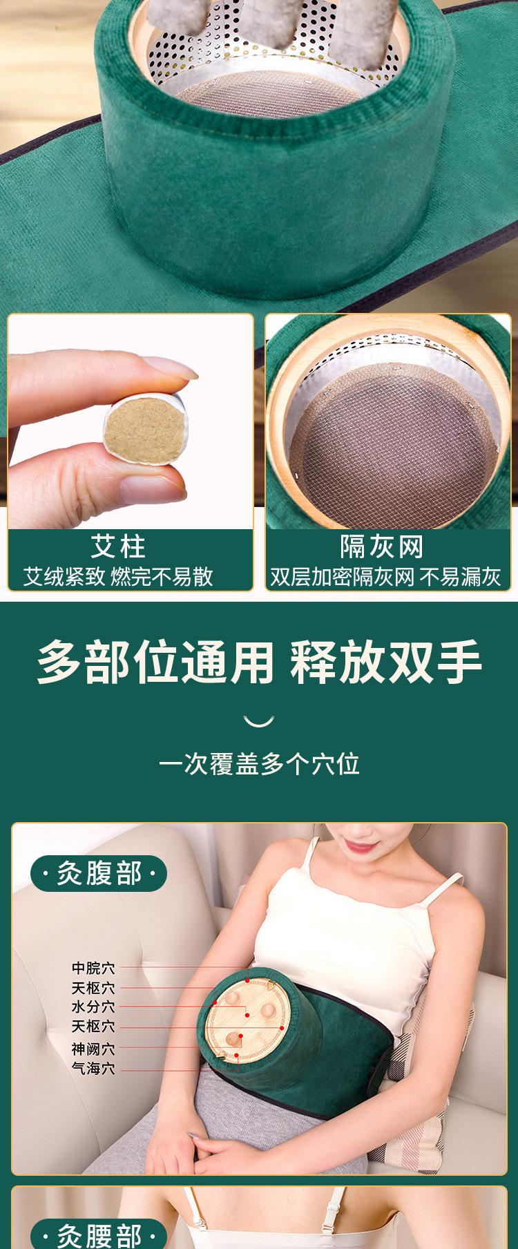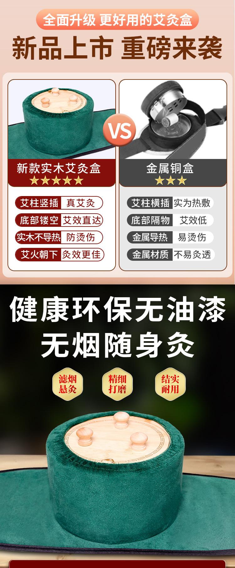 Smoke-filtering solid wood abdominal three-needle moxibustion box (green) + 1 box of golden moxa sticks + acupoint map