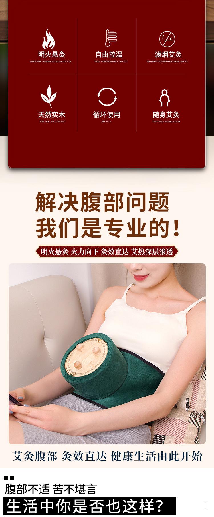 Smoke-filtering solid wood abdominal three-needle moxibustion box (green) + 1 box of red flower moxa + acupoint map