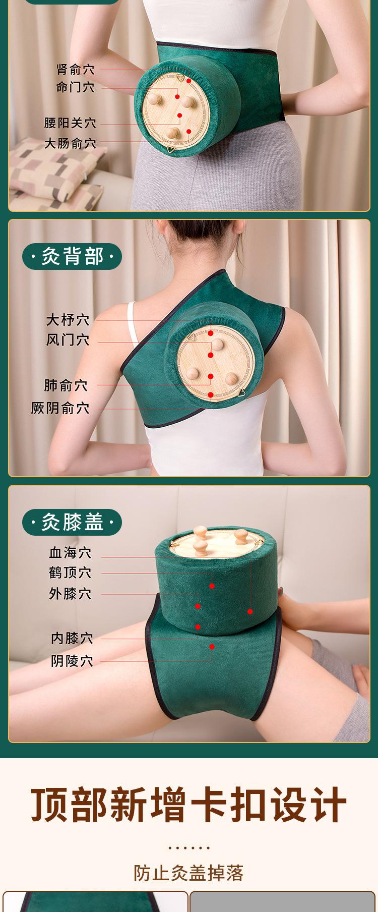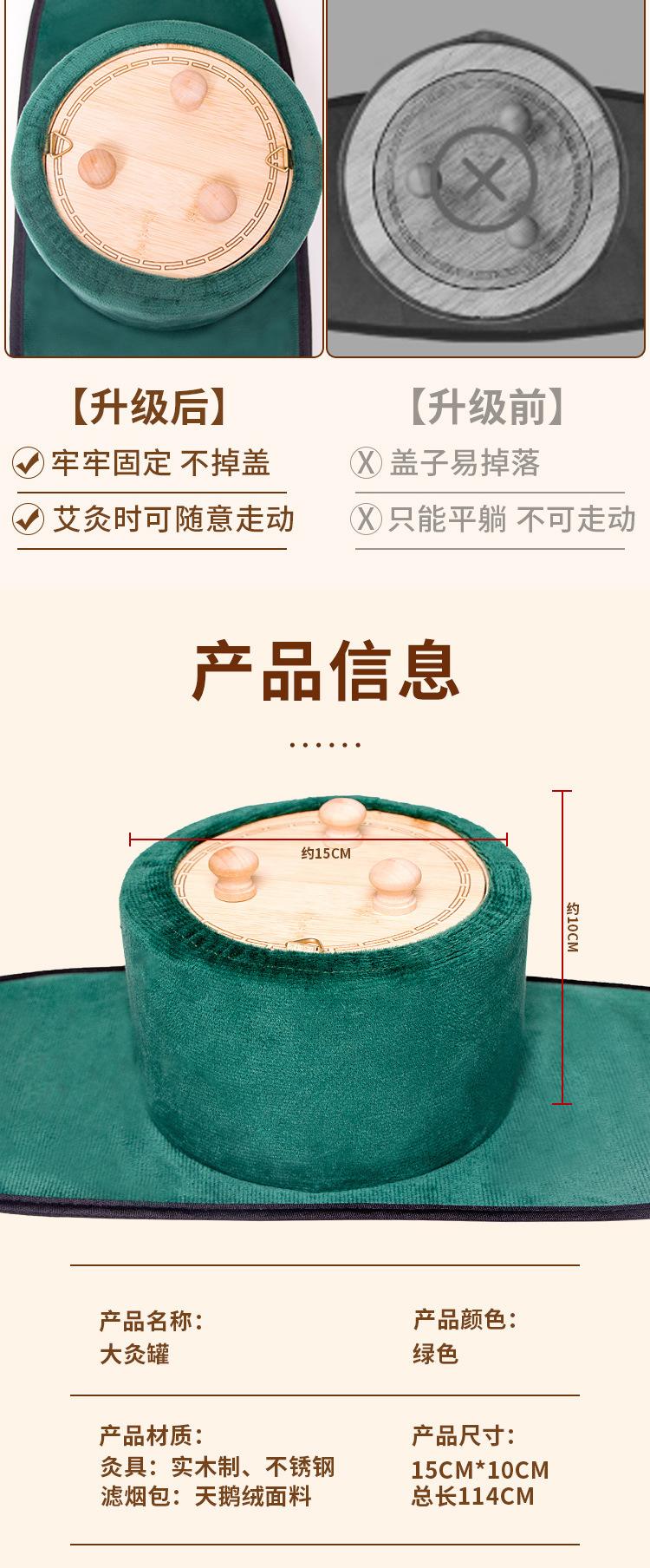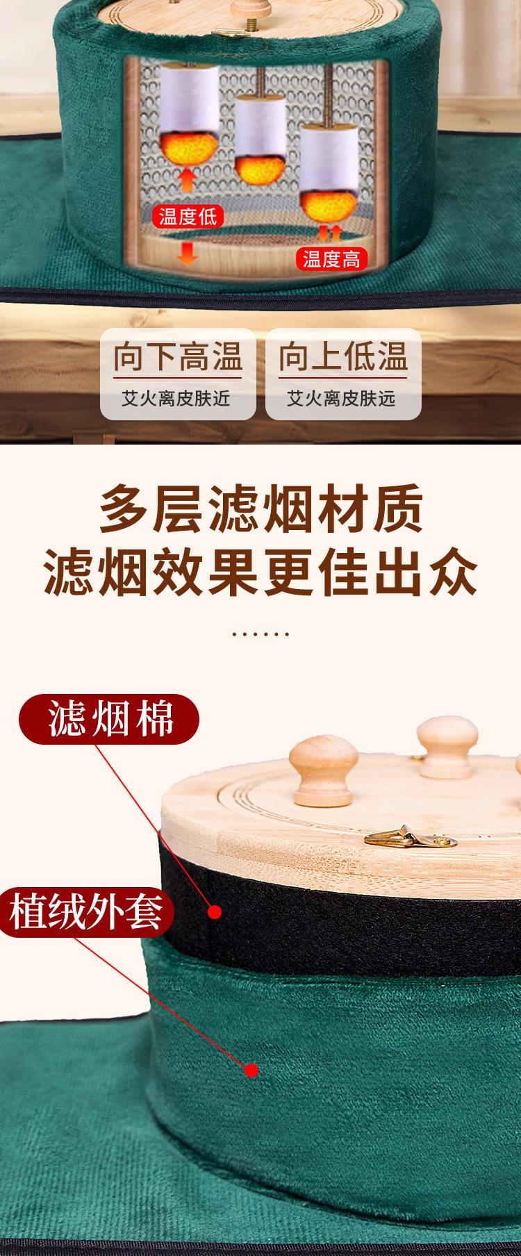 Smoke filter solid wood abdominal three-needle moxibustion box (green), Smoke-filtering solid wood abdominal t...