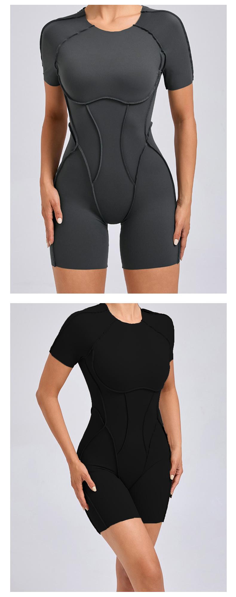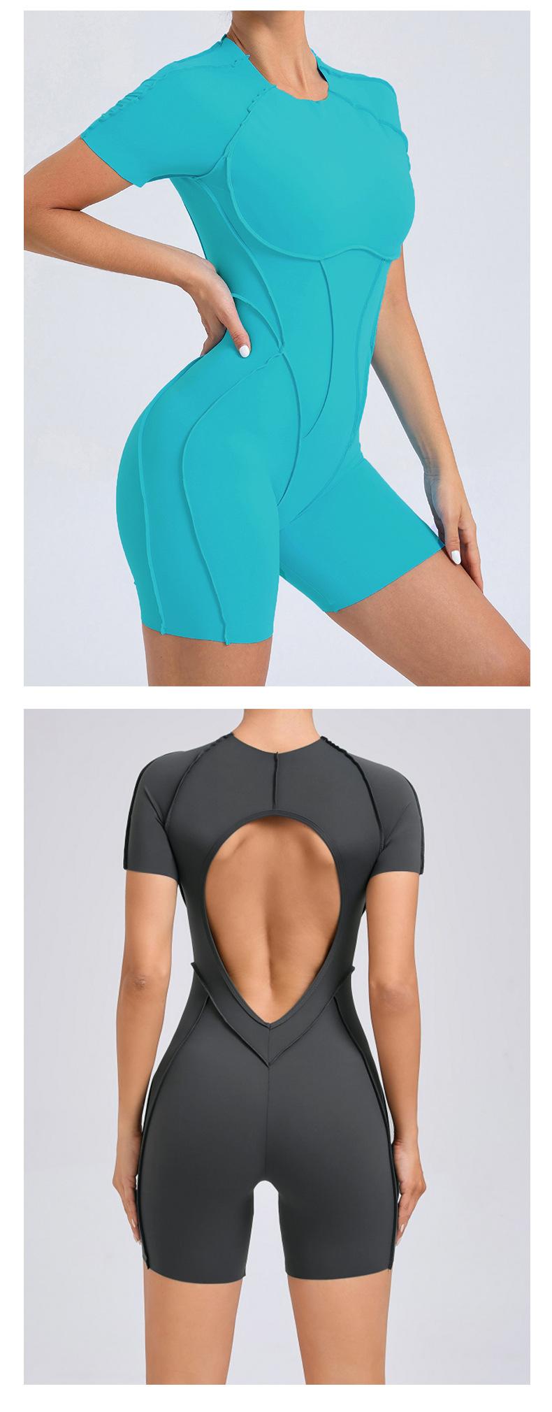 Traje de Fitness de Una Pieza de Manga Corta Ajustado Transfronterizo de Secado Rápido para Mujer Pilates Levanta Caderas y Espalda Hermosa Sexy Traje de Yoga Lulu de Una Pieza