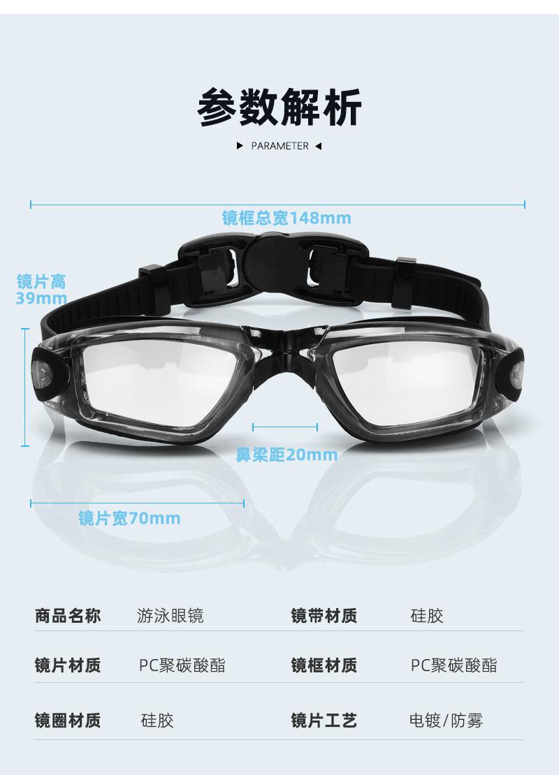 Black colorful gold + glasses case + swimming cap + nose clip earplug set