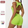 Ropa de Yoga y Fitness Tejida Jacquard Sin Costuras Transfronteriza de Secado Rápido, Shorts Deportivos con Efecto Melocotón, con Almohadillas para el Busto y Chaleco Retráctil para el Busto