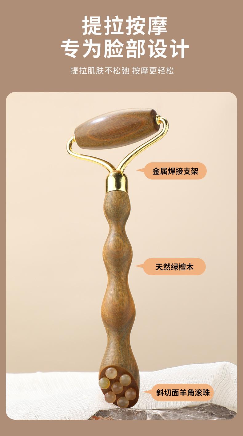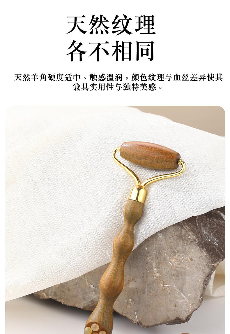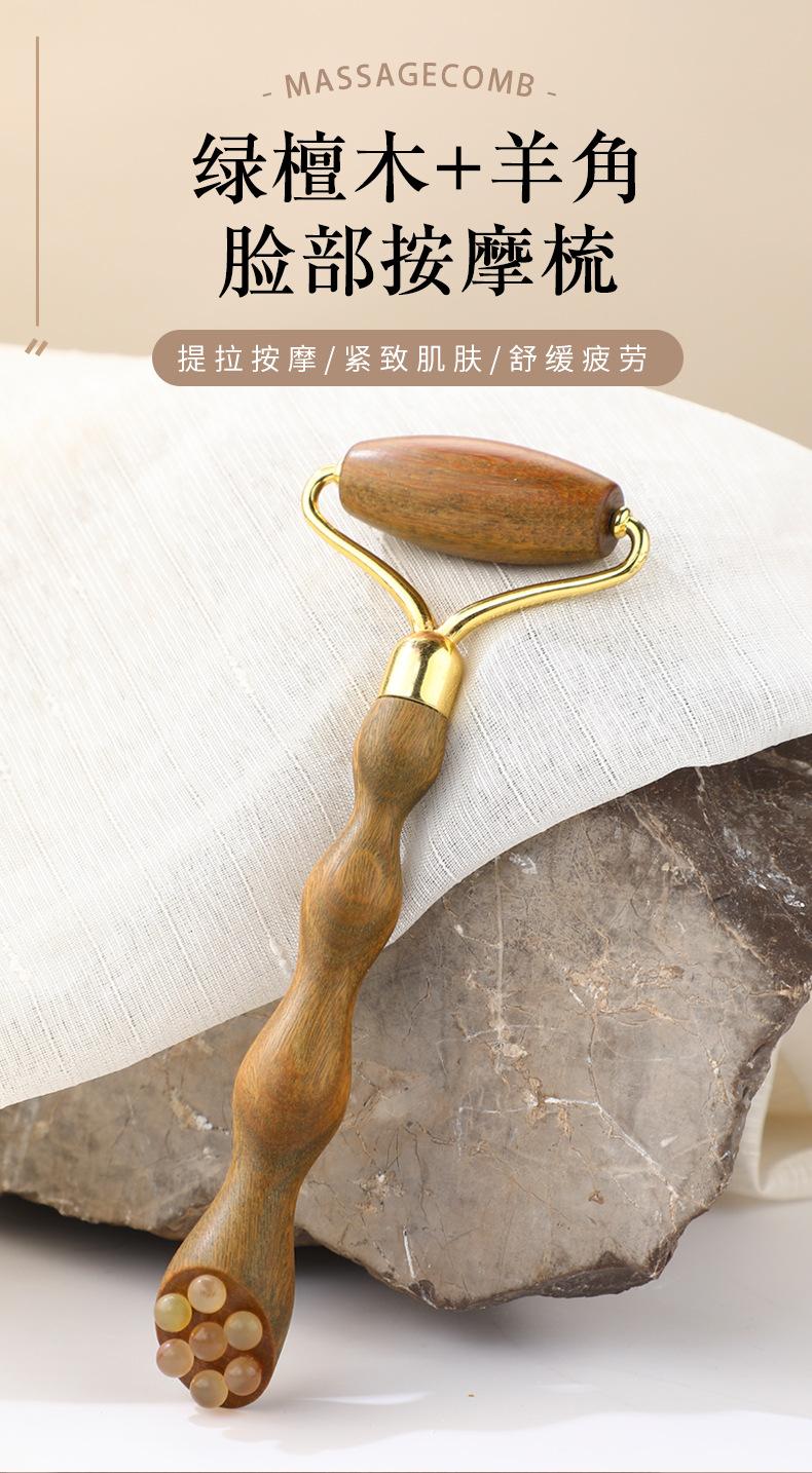Goat Horn Tooth Green Sandalwood Facial Roller【Gift Box+Cloth Bag】