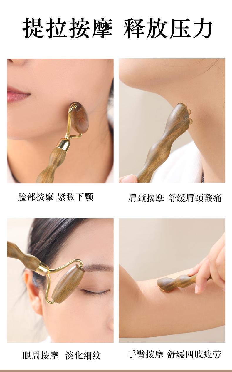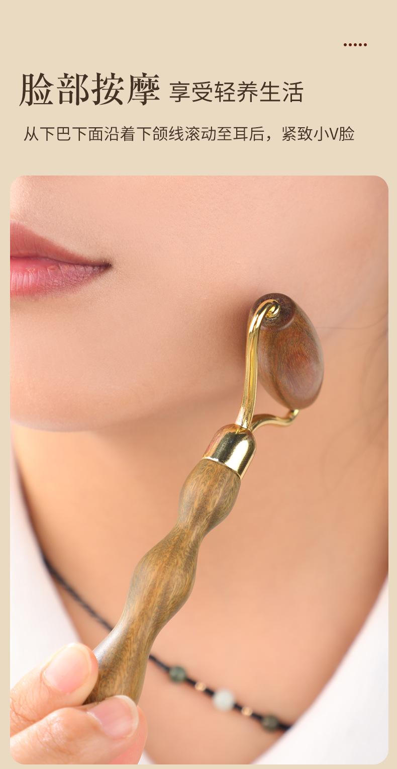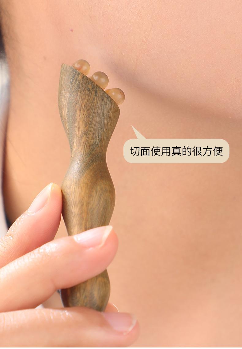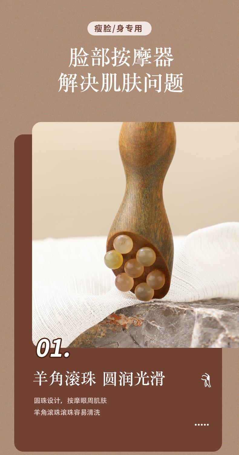 Goat Horn Tooth Green Sandalwood Facial Roller【Gift Box+Cloth Bag】