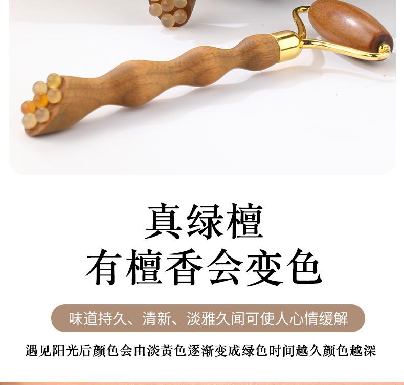 Goat Horn Tooth Green Sandalwood Facial Roller【Gift Box+Cloth Bag+Essential Oil】