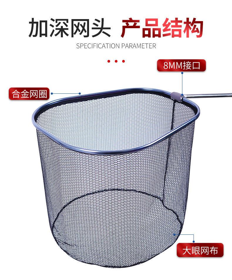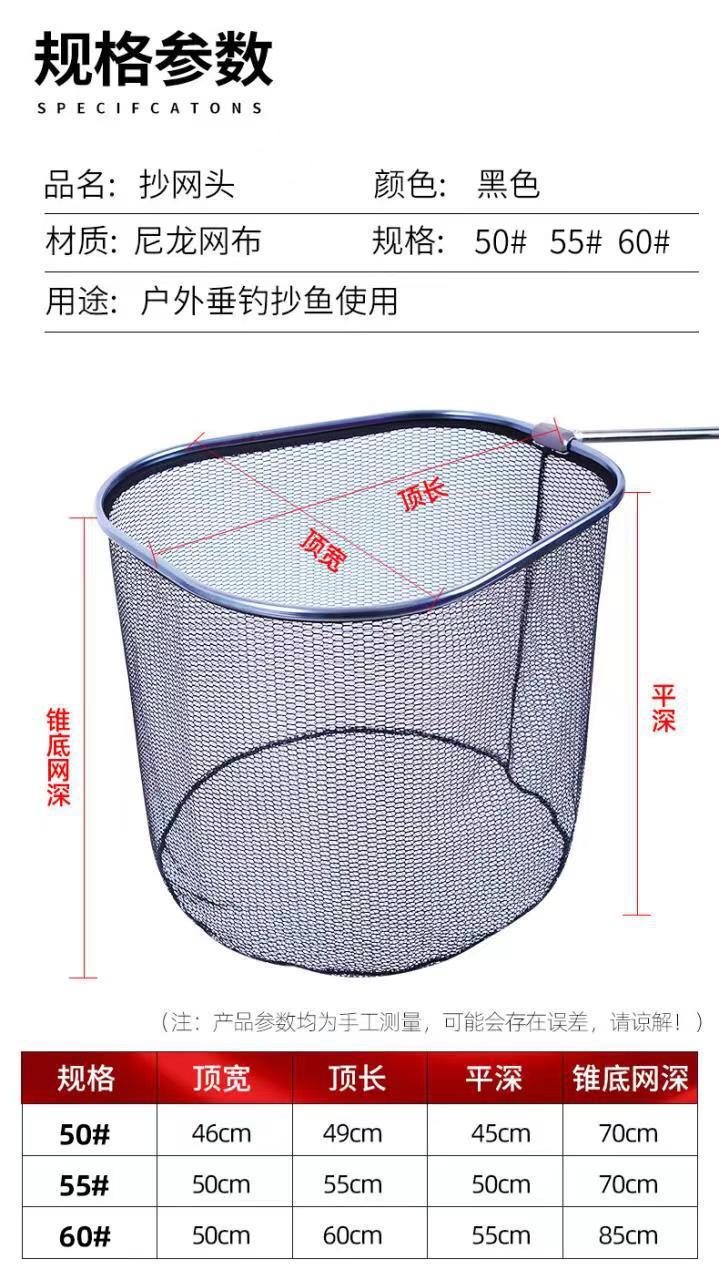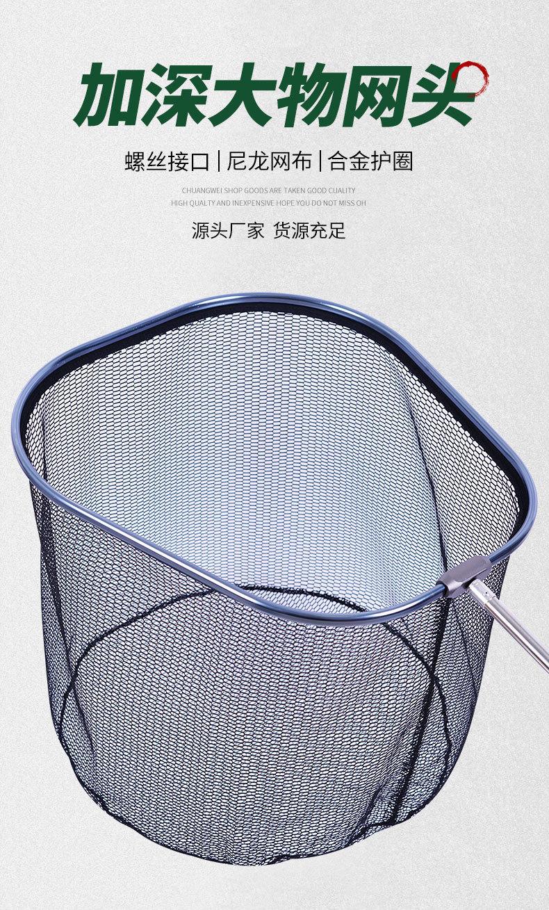 Este es un cabezal de red de cuchara reforzado grande en forma de abanico con un anillo engrosado de aleación de aluminio que no es fácil de deformar ni doblar. Está hecho de malla de nailon de secado rápido profundizada y tiene tres especificaciones de diámetro de 50-55-60 cm. El punto de venta de este modelo es la interfaz engrosada de 8 mm. ¡Gracias!