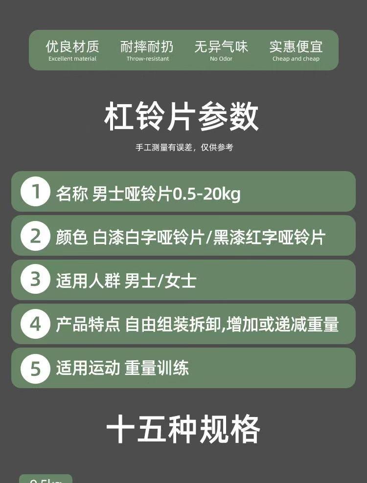 0.5kg*2 pieces, 1.25kg*2 pieces, 2.5kg*2 pieces, 5kg*2 pieces, 7.5kg*2 pieces, 10kg*2 pieces, 15kg*1 piece, 20...