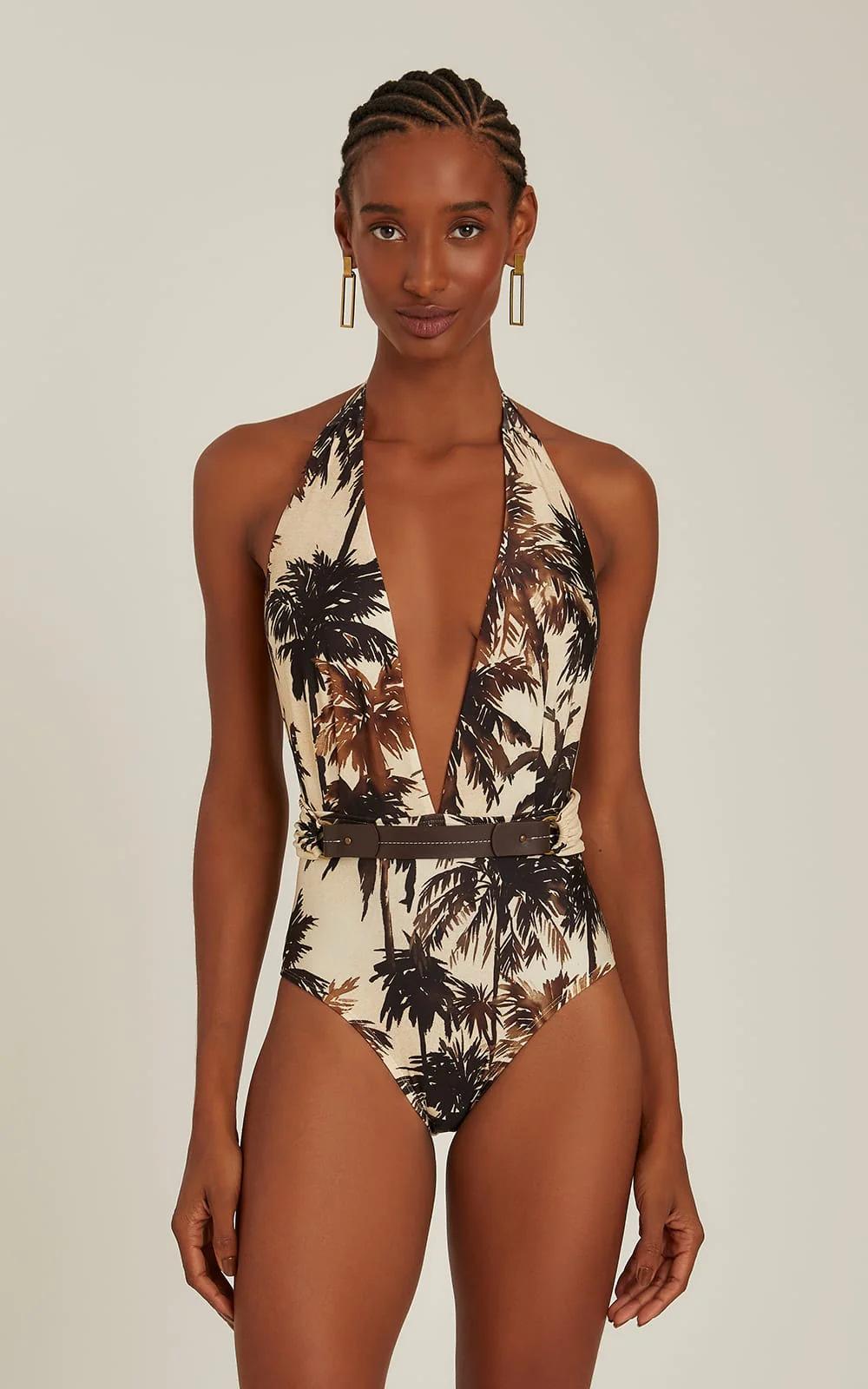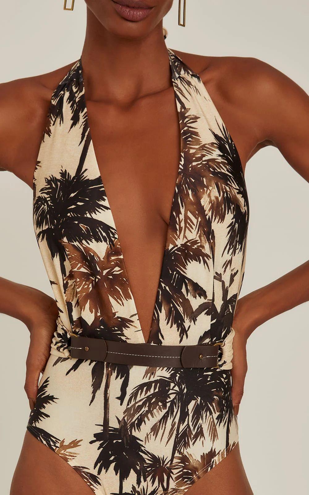 Compra 2025 Nuevo Traje de Baño Europeo y Americano Cuello Halter con Escote en V Profundo Traje de Baño Estampado Retro Bikini Transfronterizo para Mujer 25308 al por mayor en Joom.pro