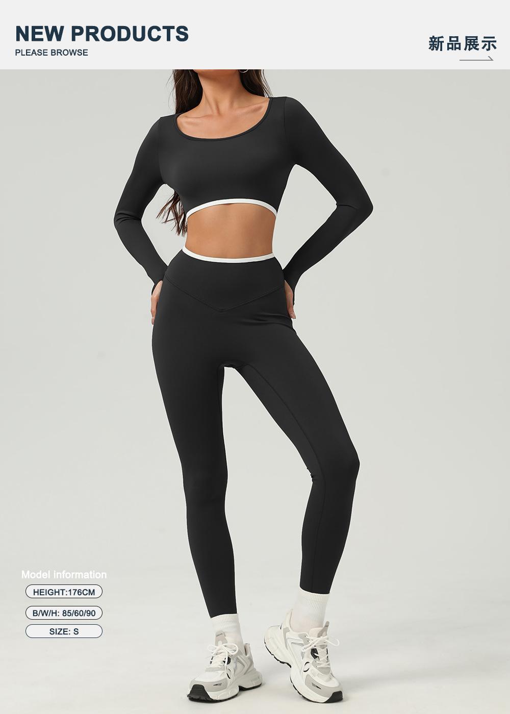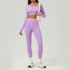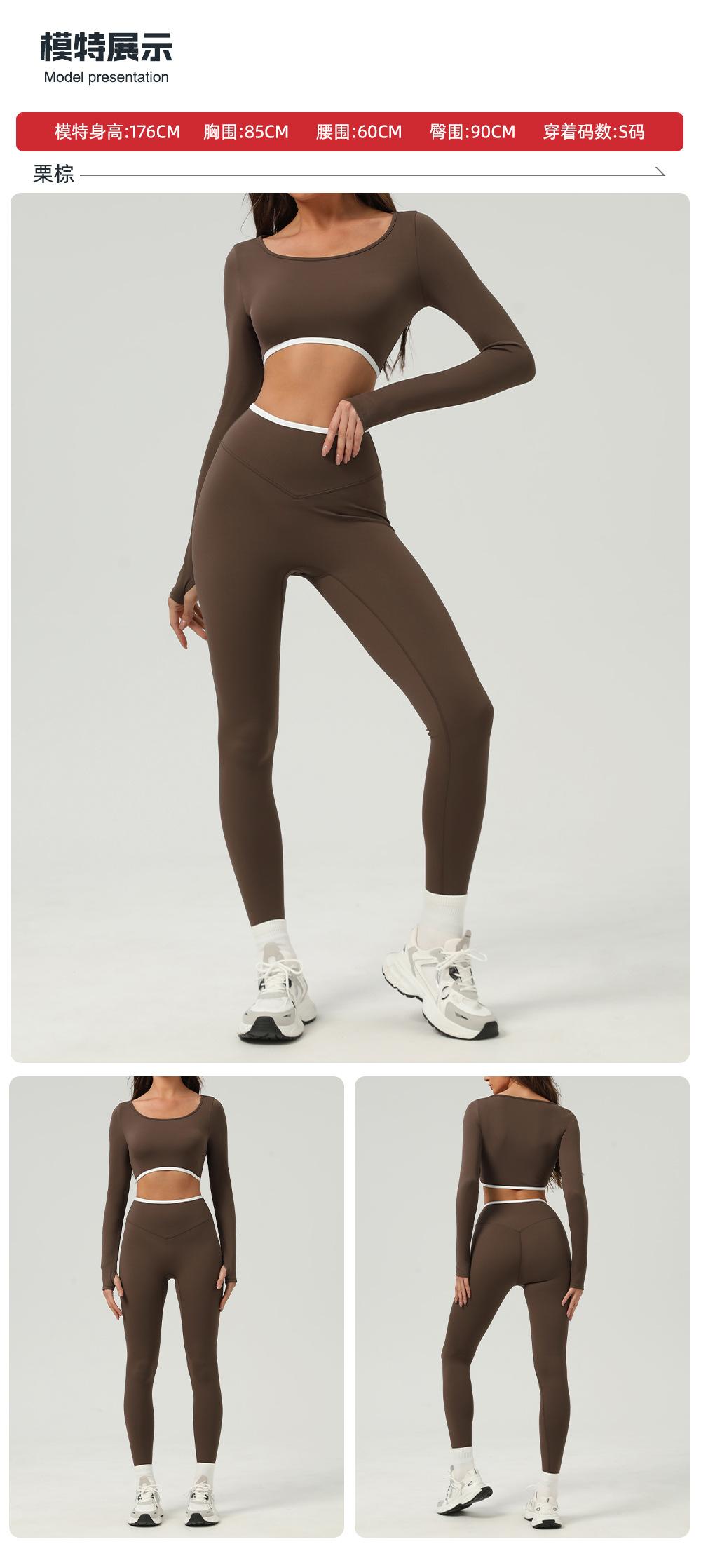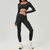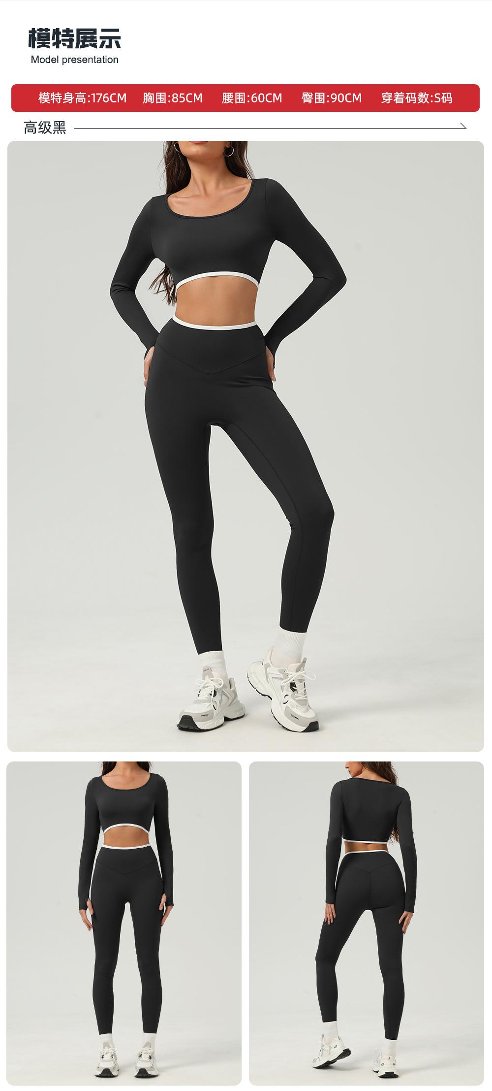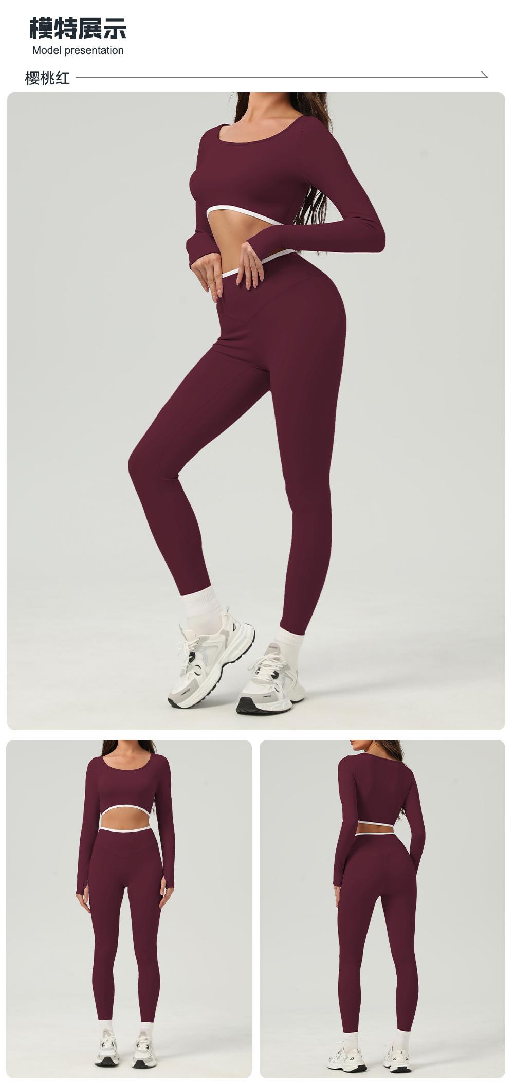 Nuevo Traje de Fitness para Correr de Secado Rápido Desnudo Transfronterizo Top Ajustado de Manga Larga Cintura Alta Cadera Traje de Pantalones de Yoga para Mujer