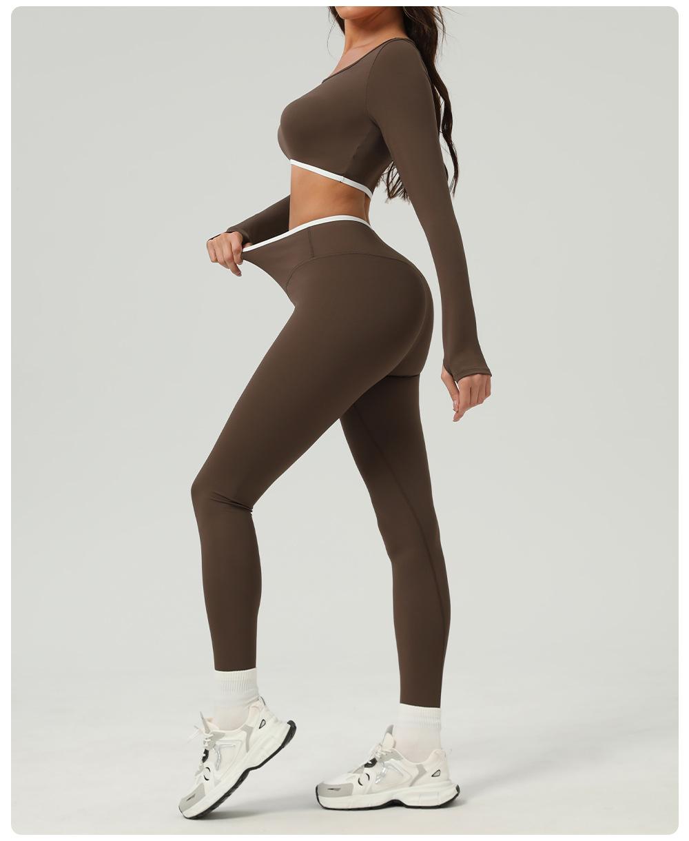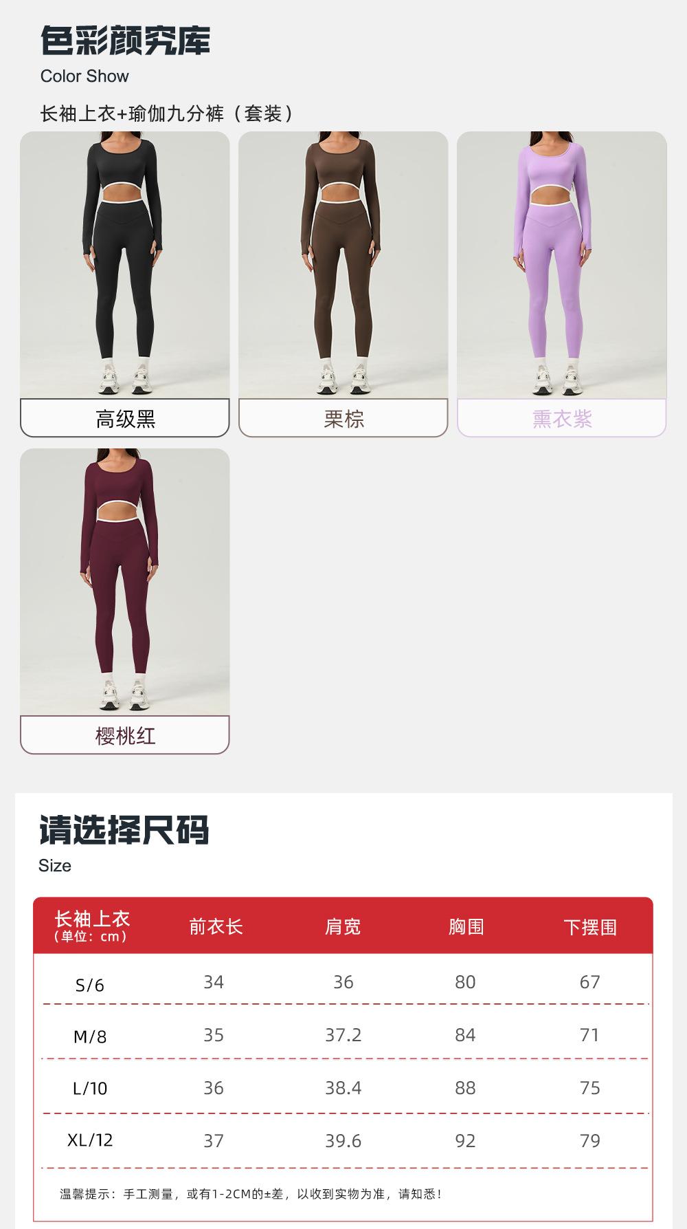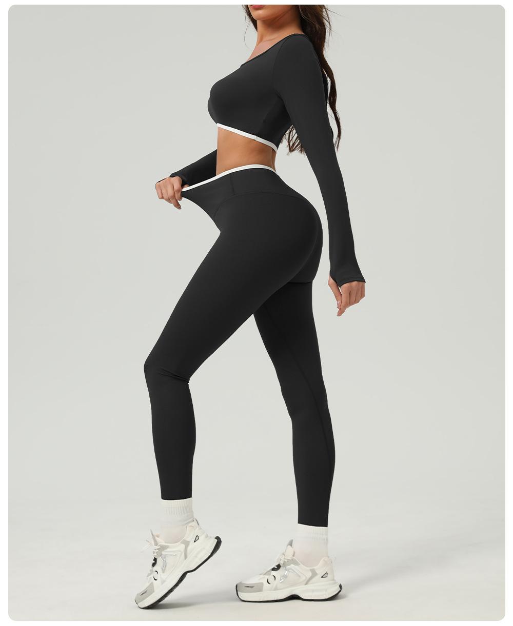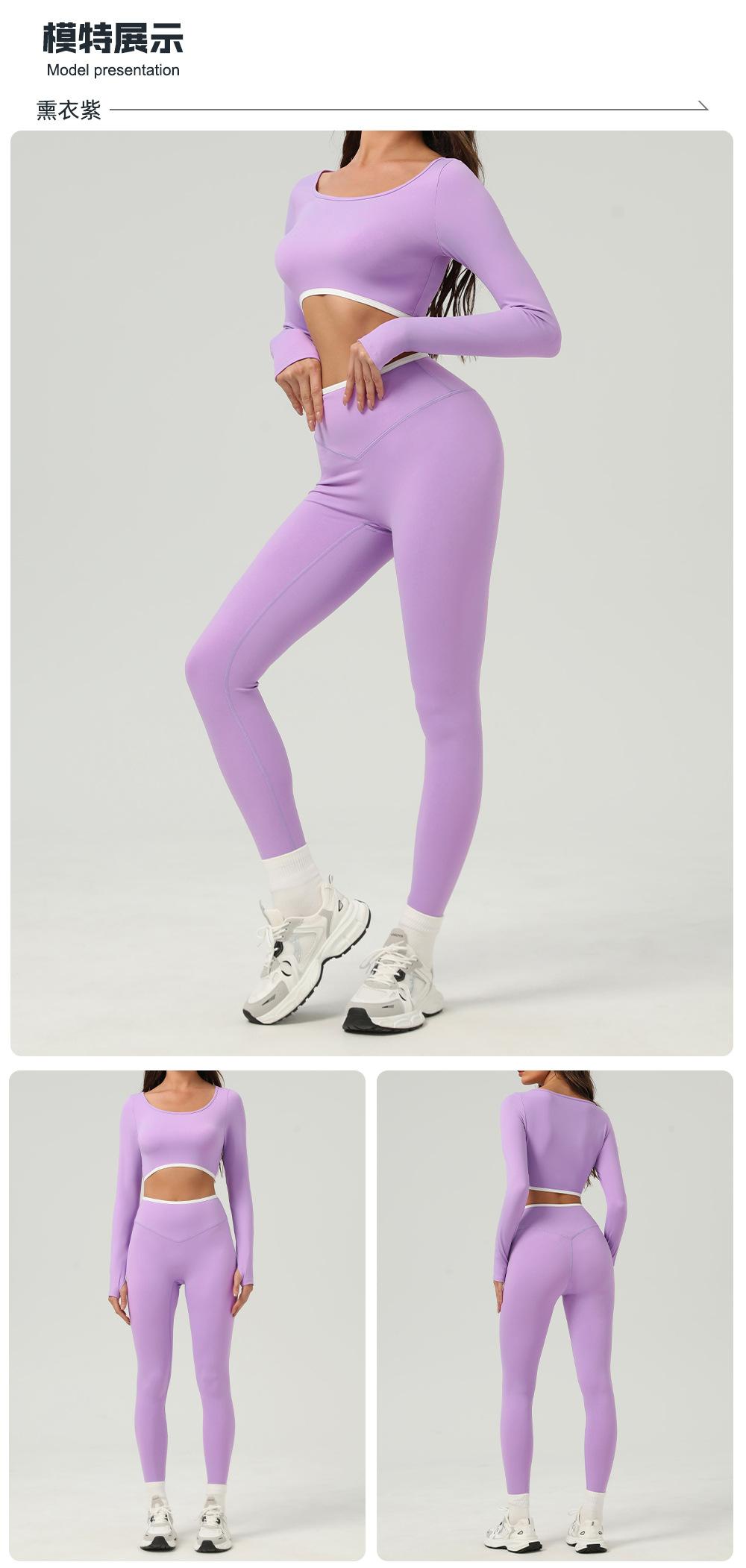 Nuevo Traje de Fitness para Correr de Secado Rápido Desnudo Transfronterizo Top Ajustado de Manga Larga Cintura Alta Cadera Traje de Pantalones de Yoga para Mujer