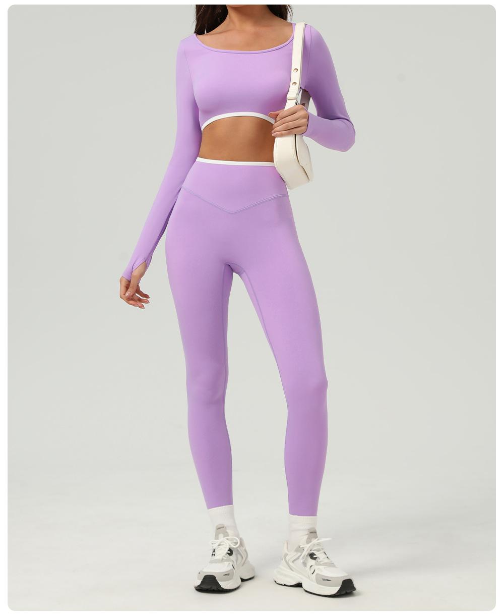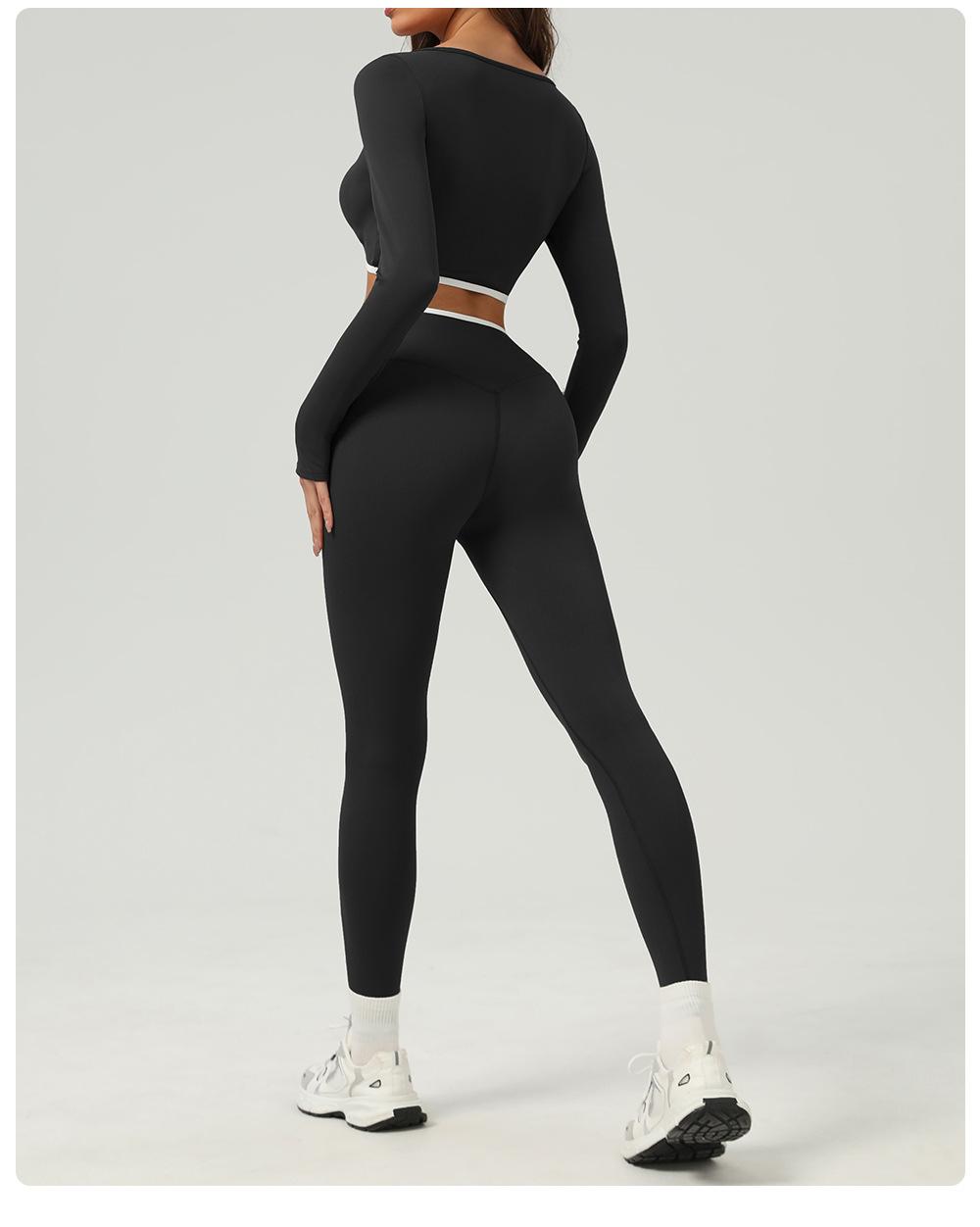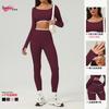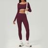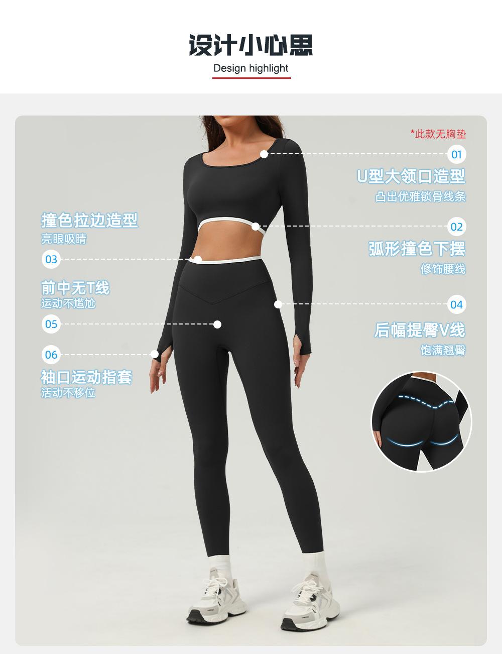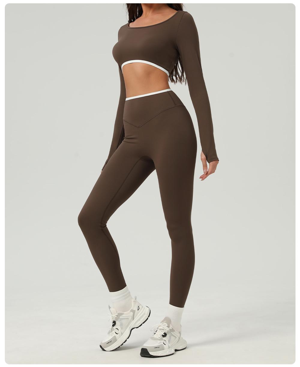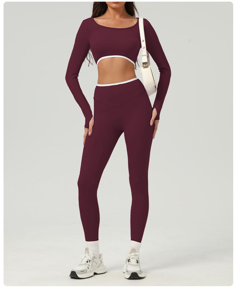 Nuevo Traje de Fitness para Correr de Secado Rápido Desnudo Transfronterizo Top Ajustado de Manga Larga Cintura Alta Cadera Traje de Pantalones de Yoga para Mujer