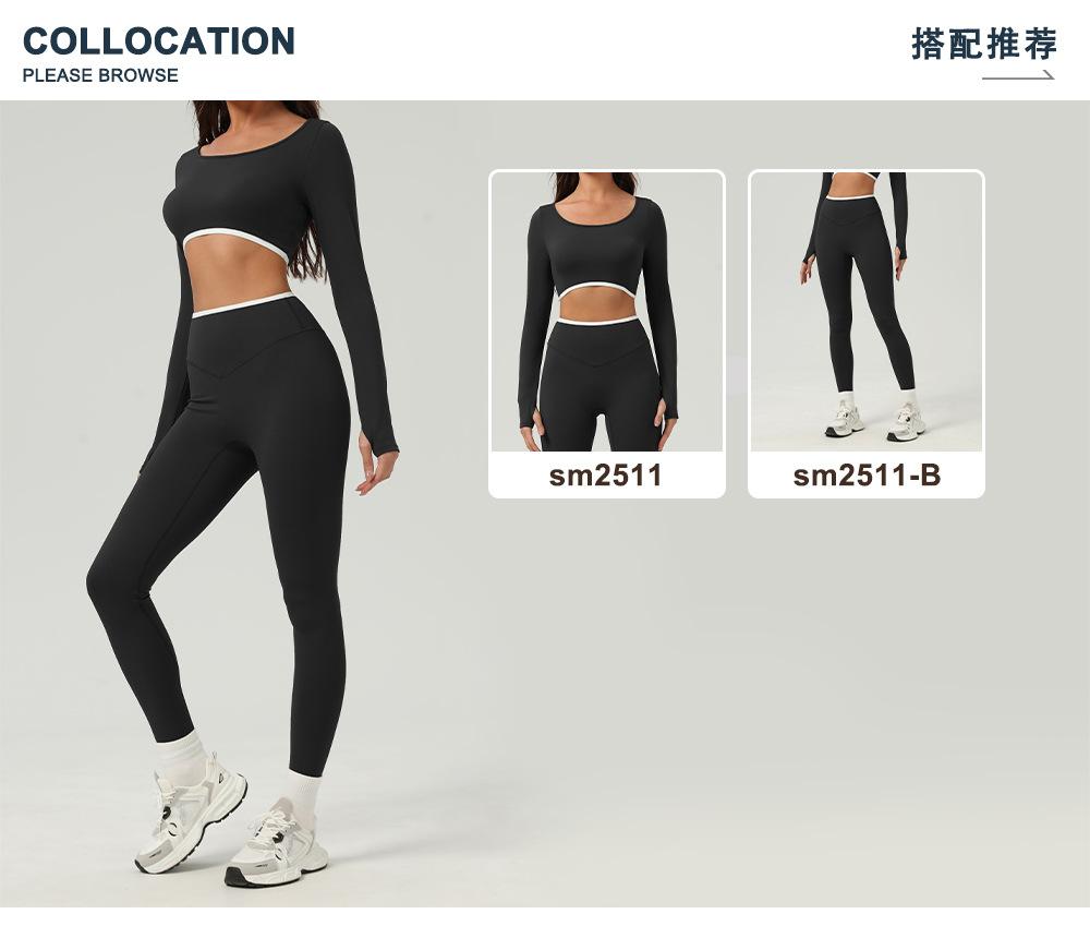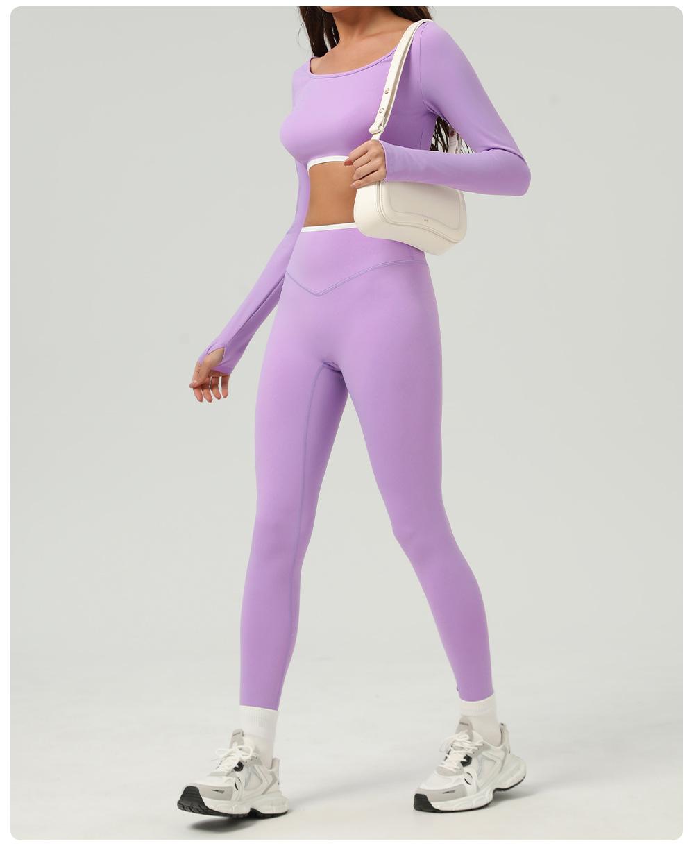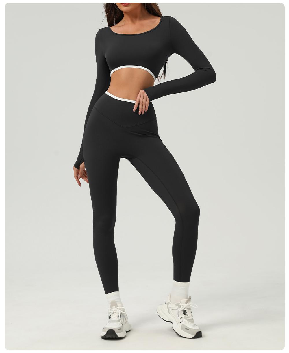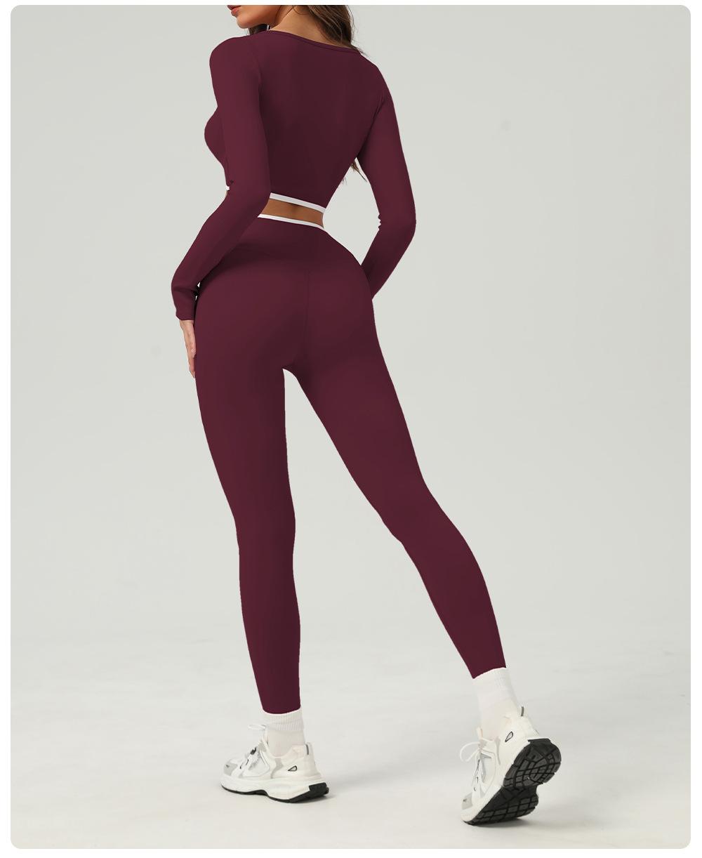 Nuevo Traje de Fitness para Correr de Secado Rápido Desnudo Transfronterizo Top Ajustado de Manga Larga Cintura Alta Cadera Traje de Pantalones de Yoga para Mujer