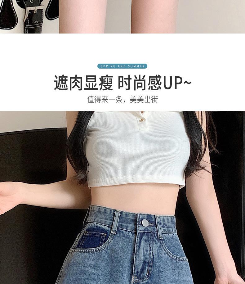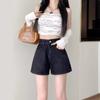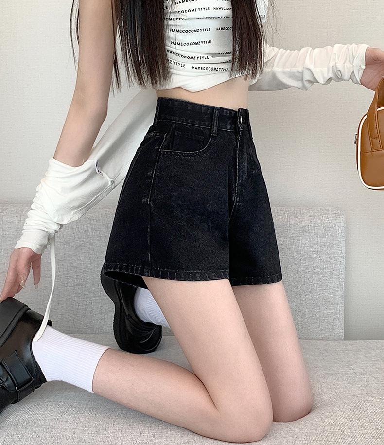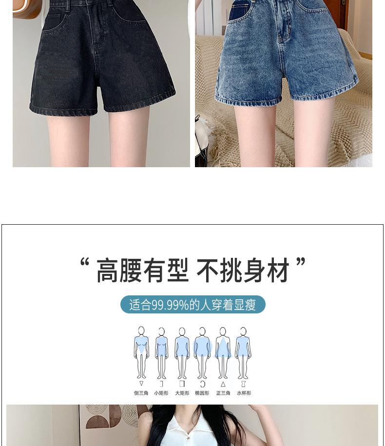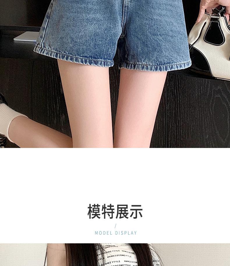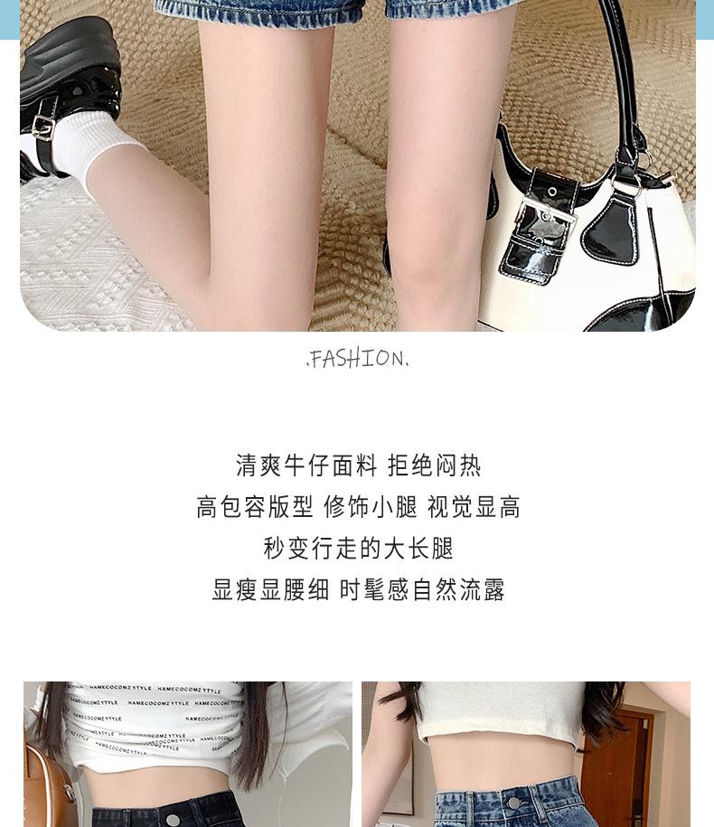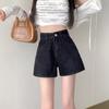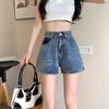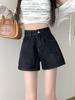 Shorts de mezclilla retro de color contrastante para niñas, verano nuevo, cintura alta, holgados, delgados, línea A, a la moda, pierna ancha, pantalones cortos, ins trendy