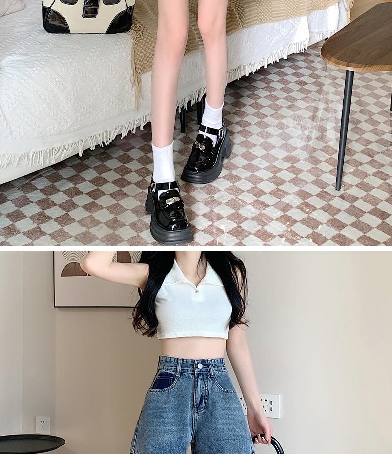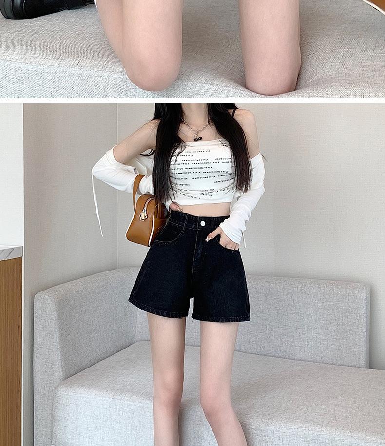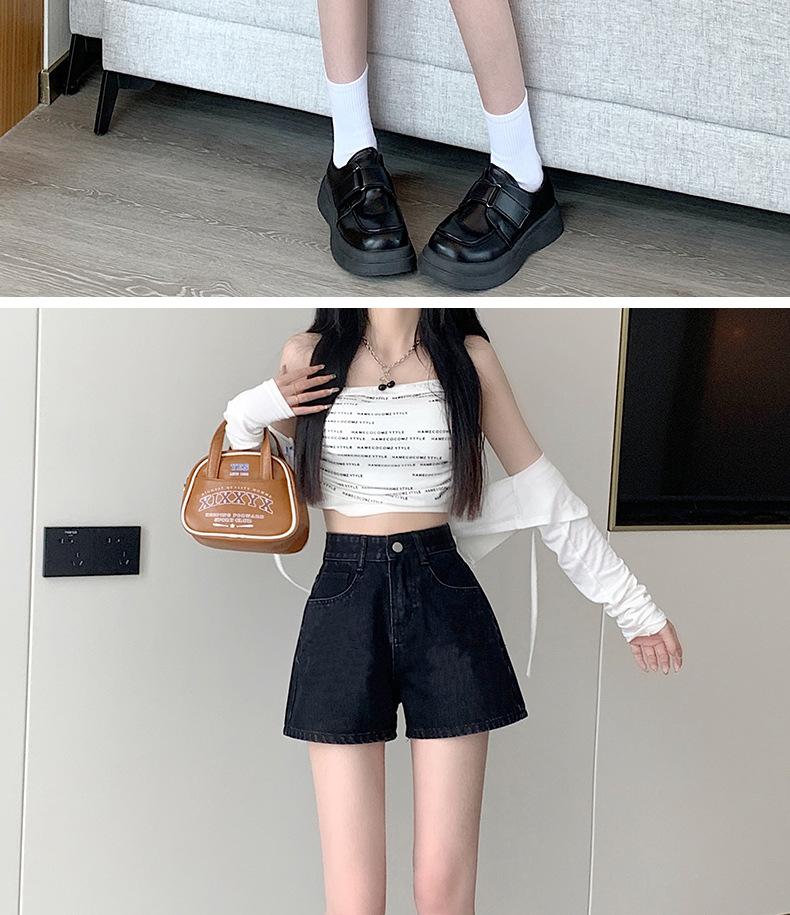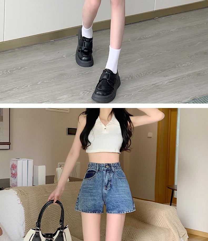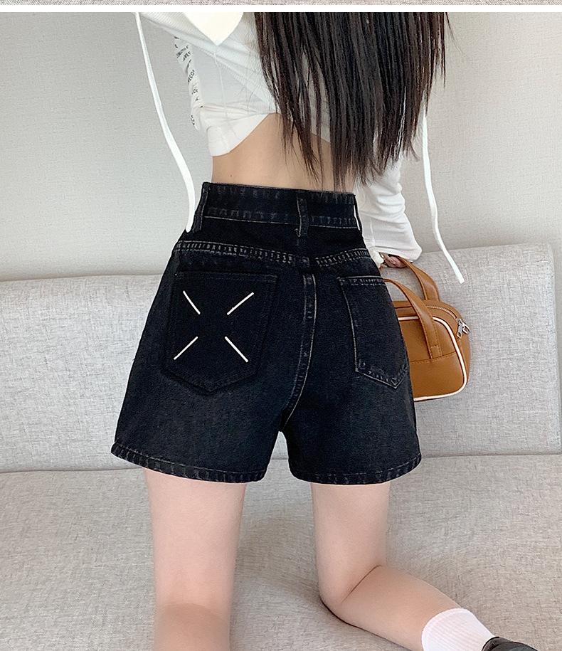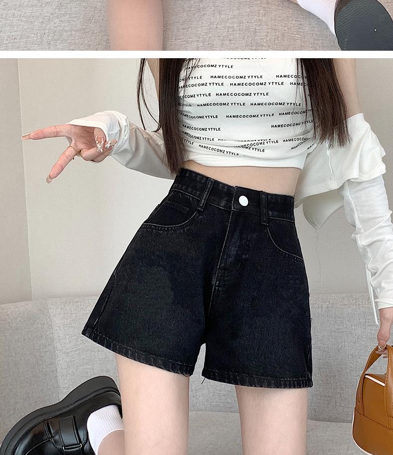Shorts de mezclilla retro de color contrastante para niñas, verano nuevo, cintura alta, holgados, delgados, línea A, a la moda, pierna ancha, pantalones cortos, ins trendy