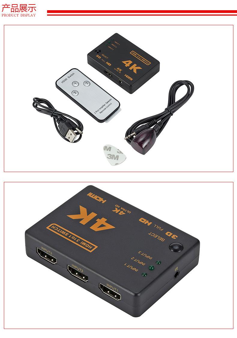 Conmutador HDMI tres entradas una salida conmutador HDMI conmutador de video HD tres cortes uno