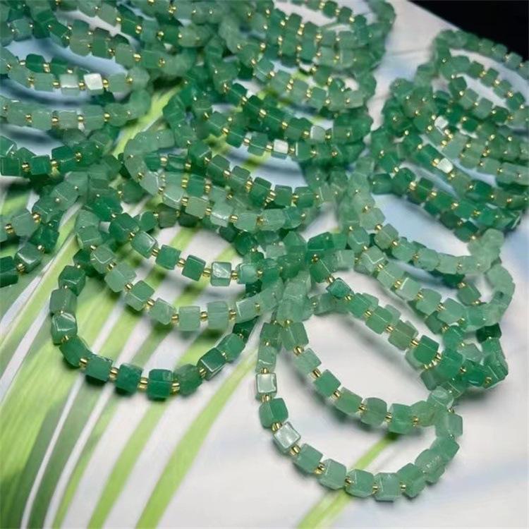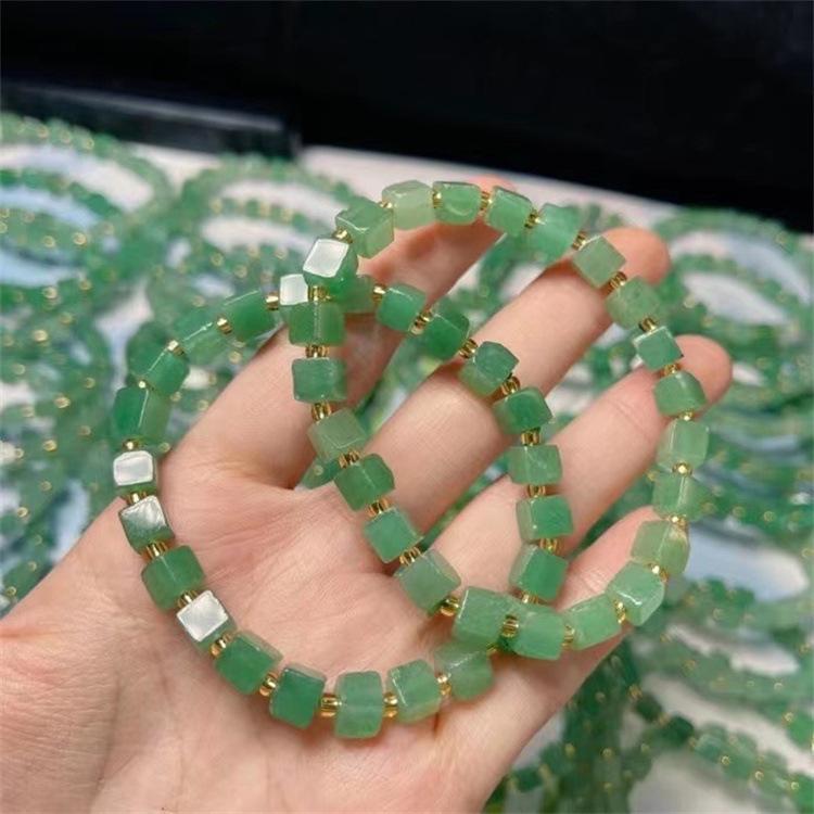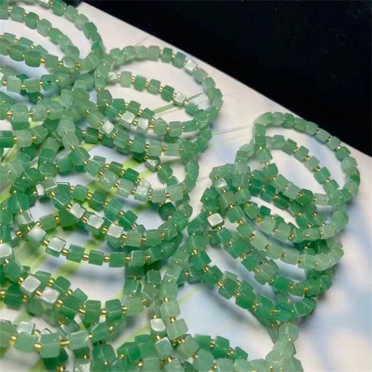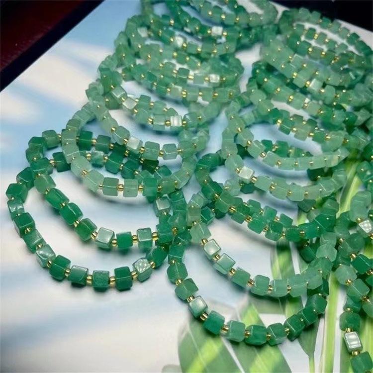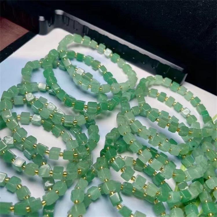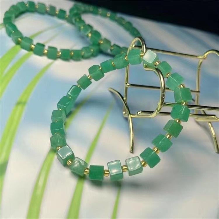 Pulsera Cubo de Azúcar de Aventurina Natural, Verde Hierba Fresca, Moderna y Versátil, Pulsera al Por Mayor