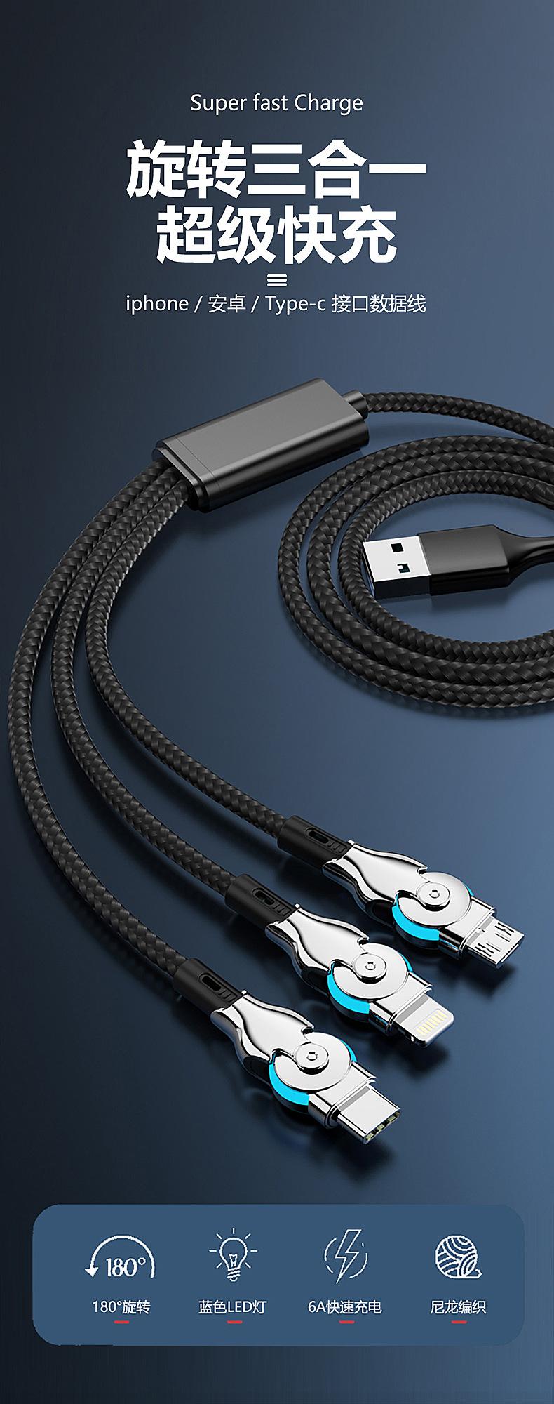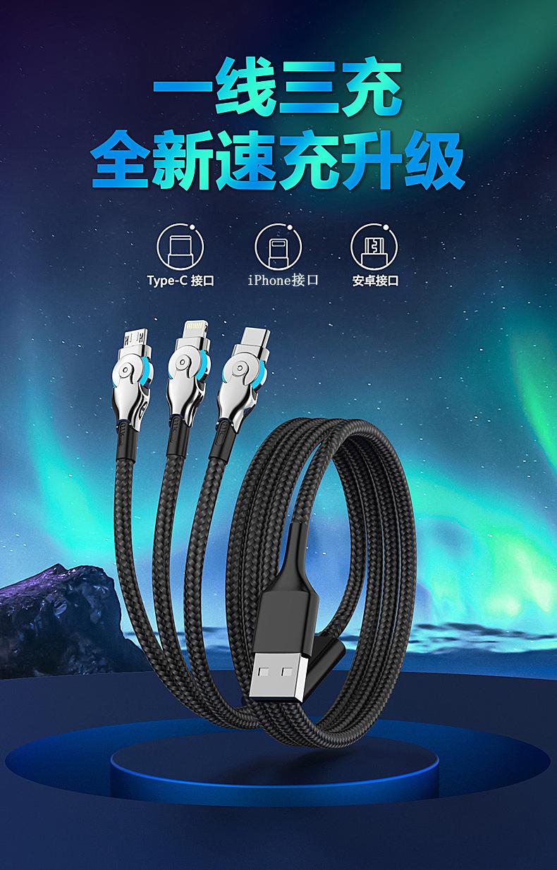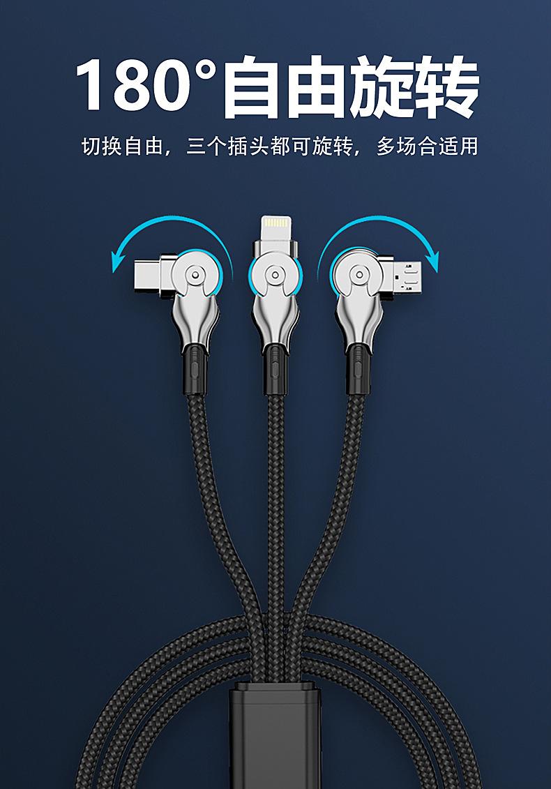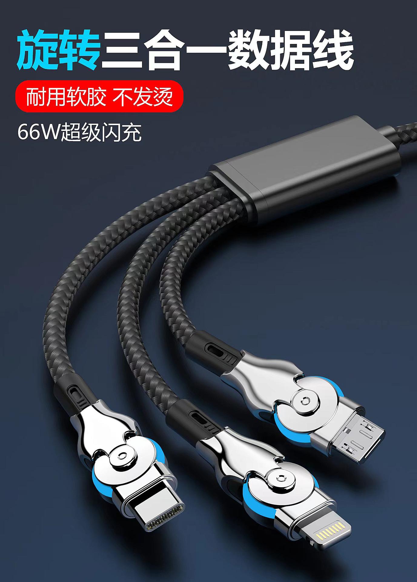 Cable de datos giratorio tres en uno carga rápida cable de carga uno a tres para Apple Android Huawei vivo cable de carga