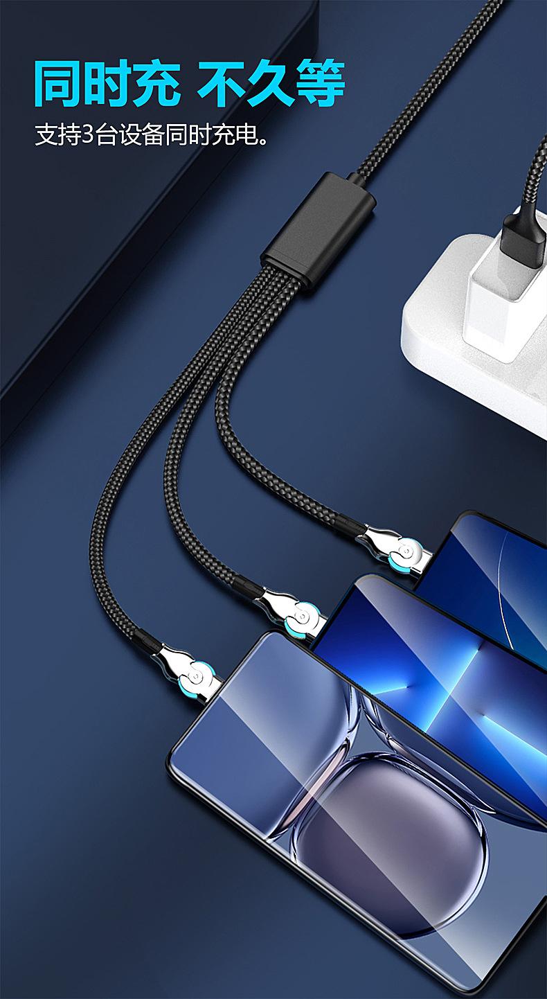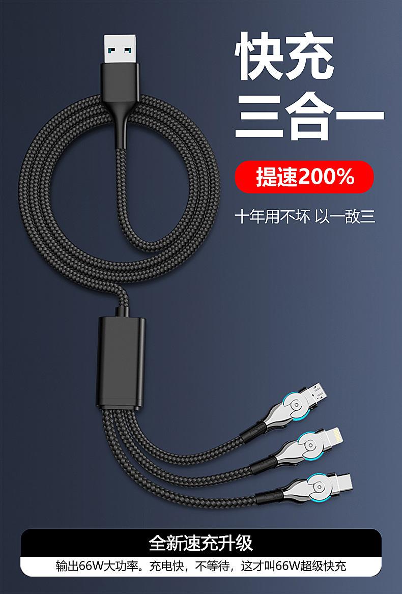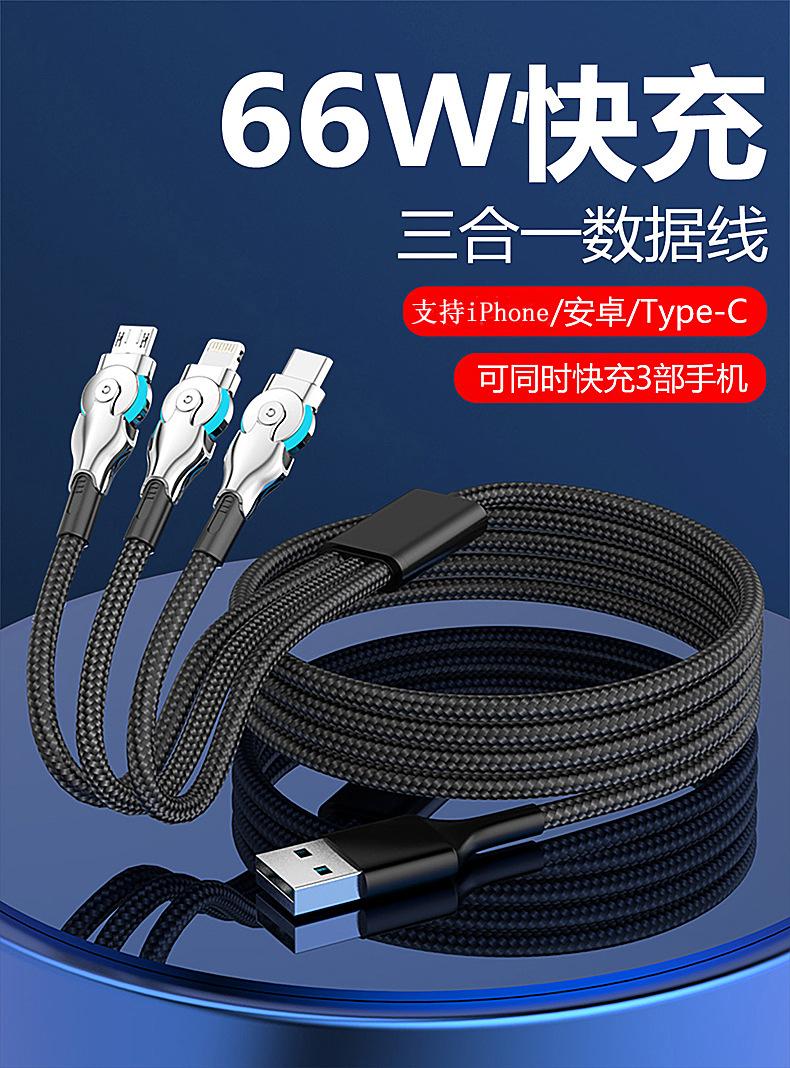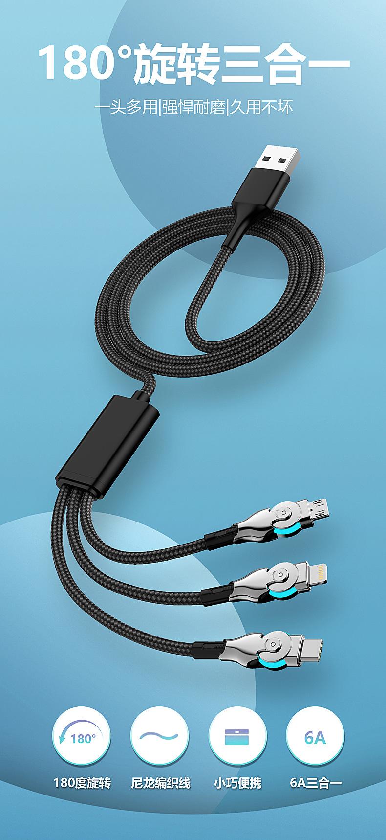 Cable de datos giratorio tres en uno carga rápida cable de carga uno a tres para Apple Android Huawei vivo cable de carga