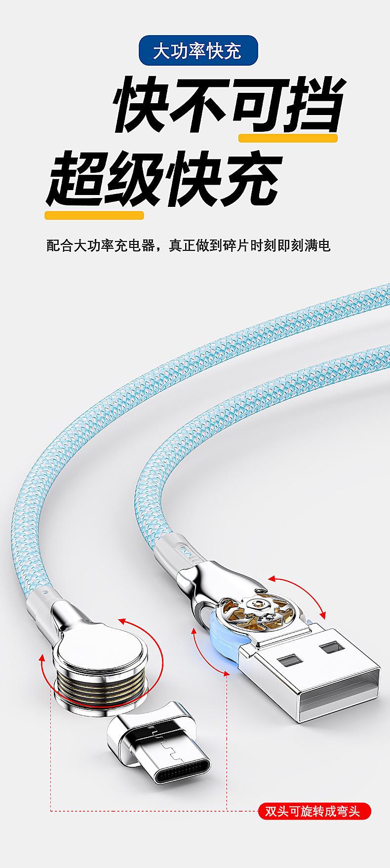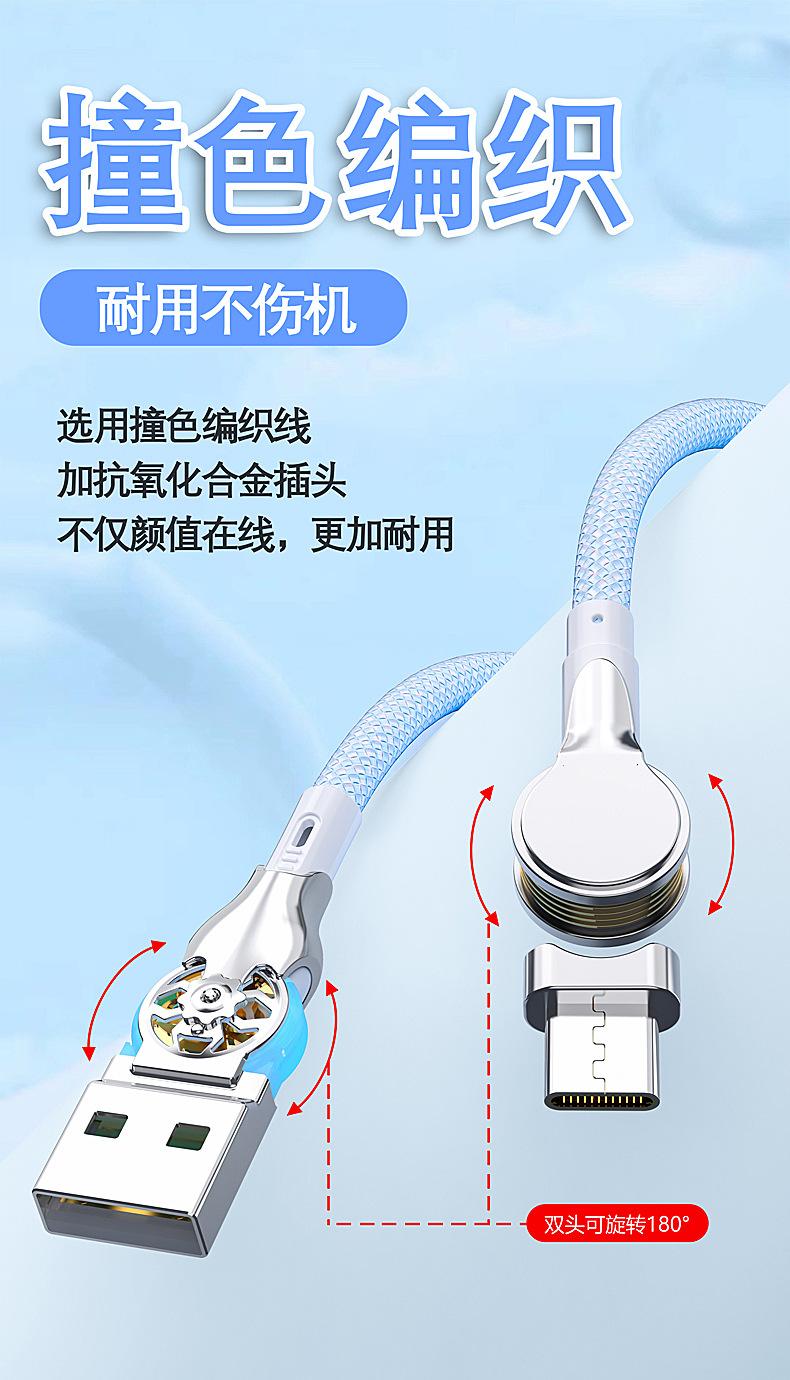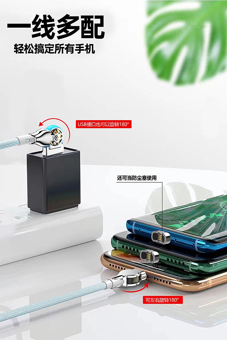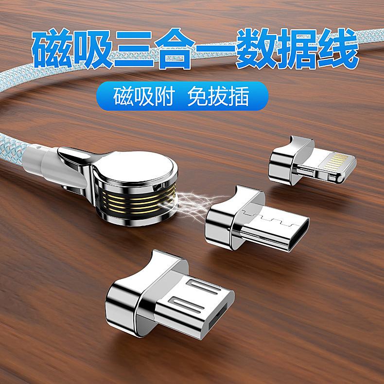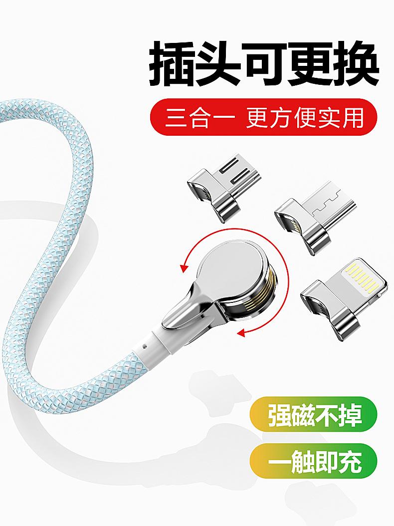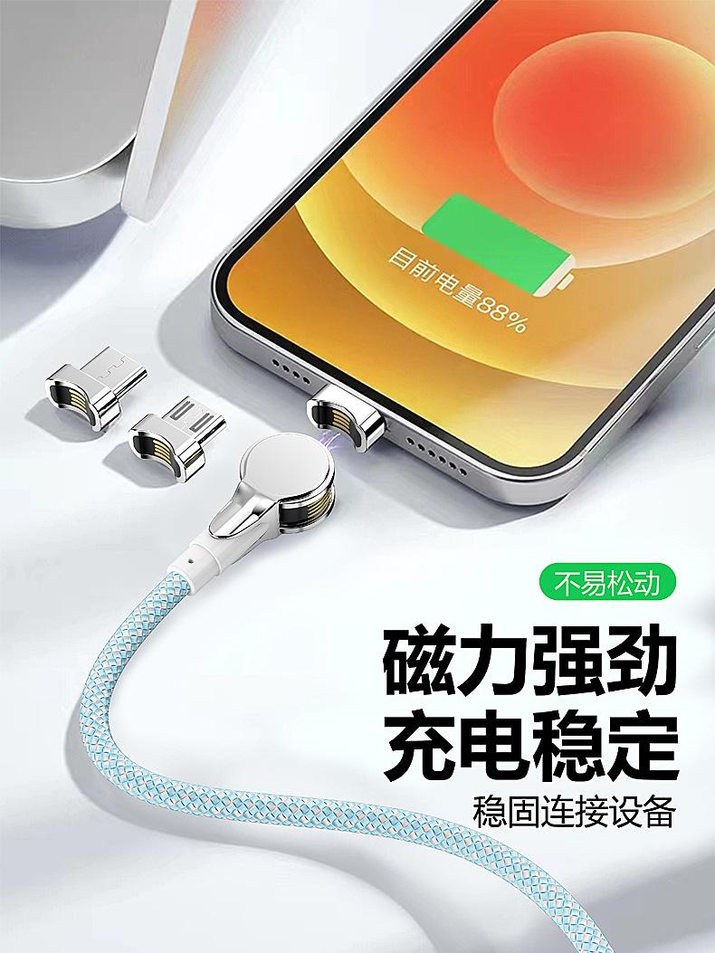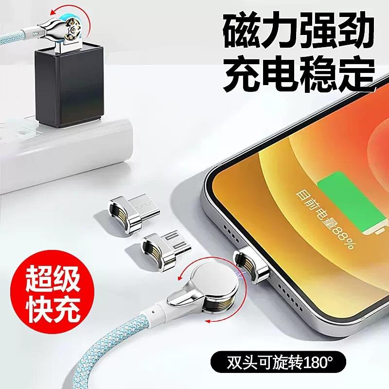 Compra Cable de carga de succión magnética fuerte codo doble giratorio carga rápida cable de datos para teléfono móvil tipo c Android para Apple Huawei al por mayor en Joom.pro