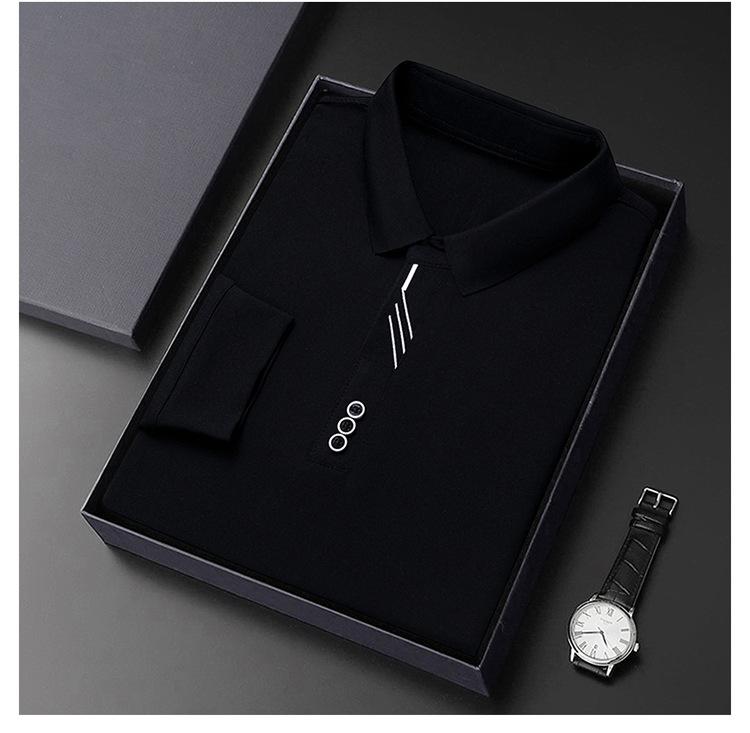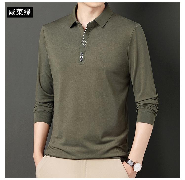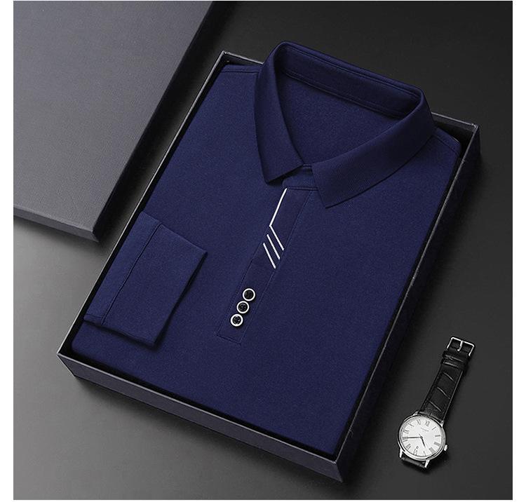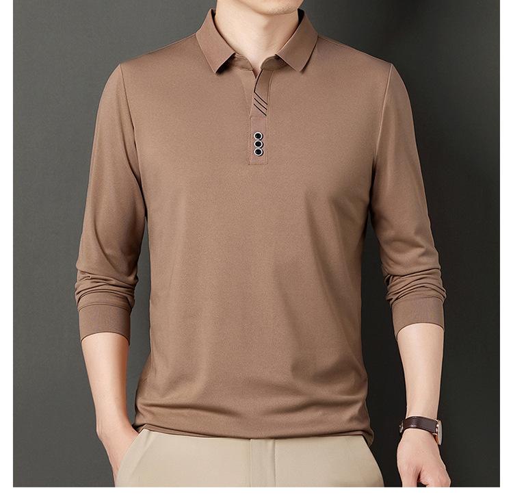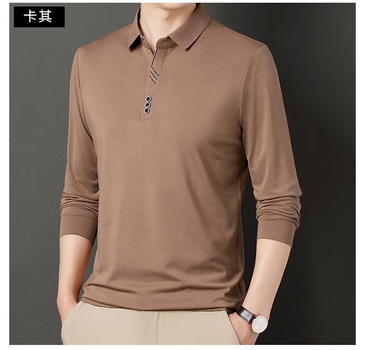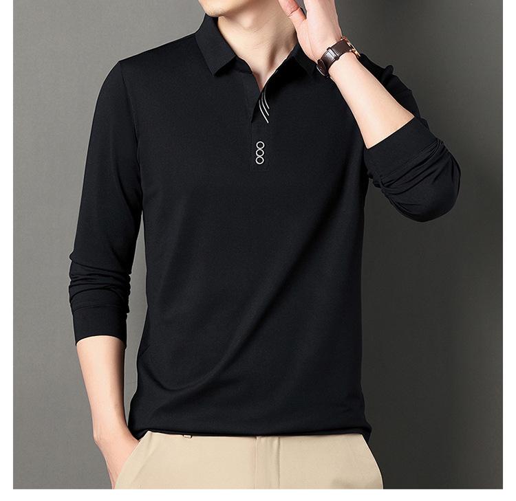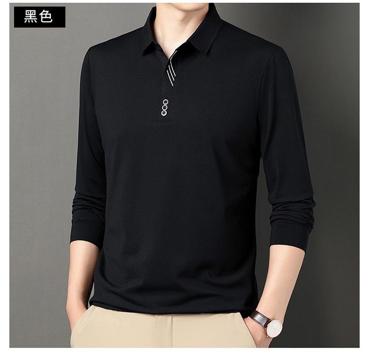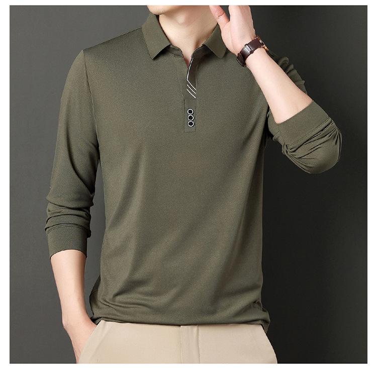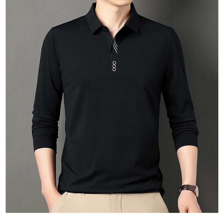 Camiseta de Manga Larga para Hombre de Primavera y Otoño 2025, Color Sólido Bordada, Camisa Polo de Solapa Casual Holgada para Papá de Mediana Edad, t de Alto Algodón