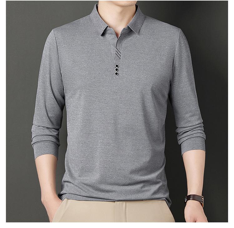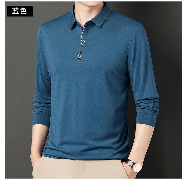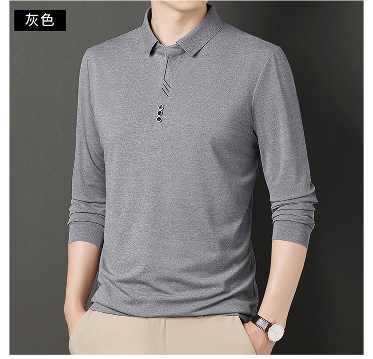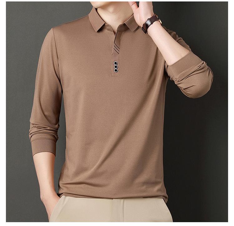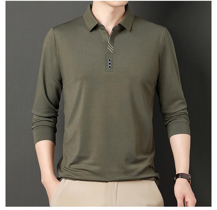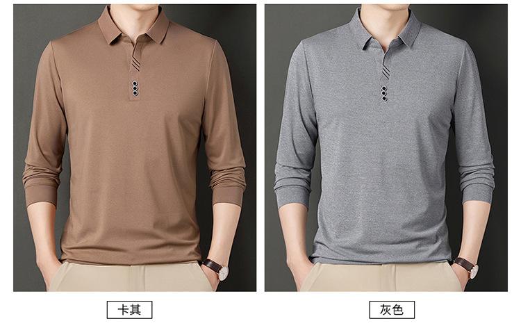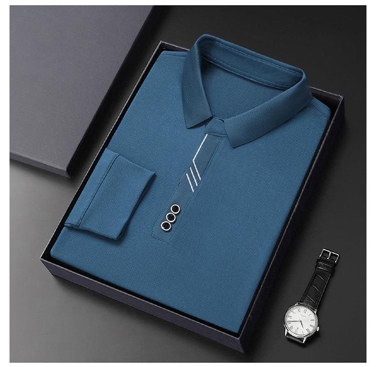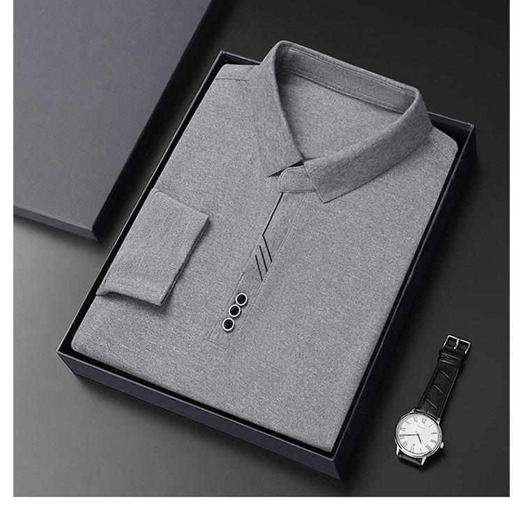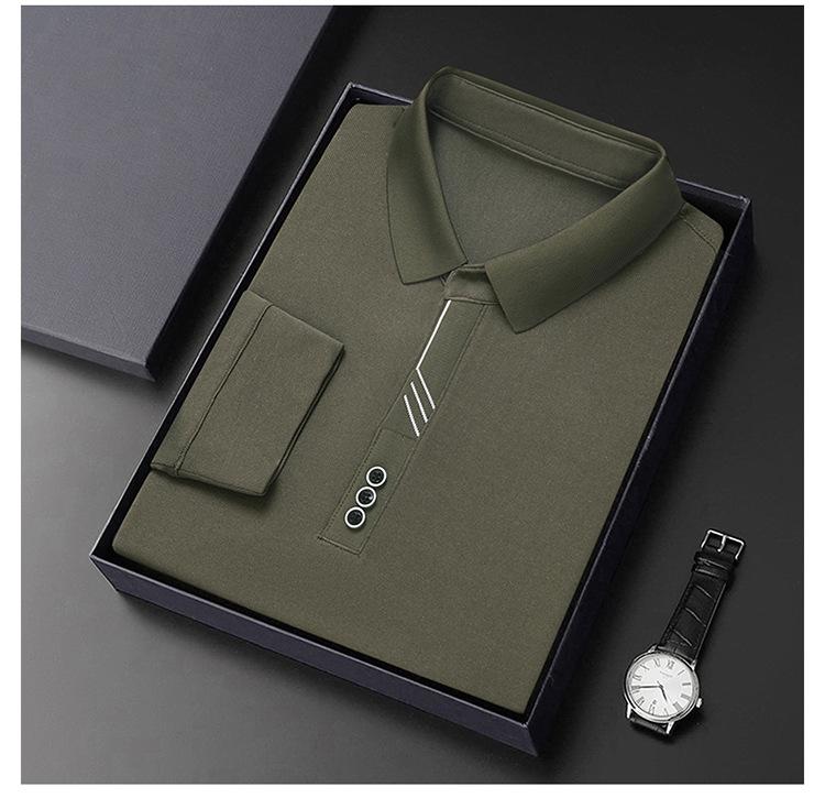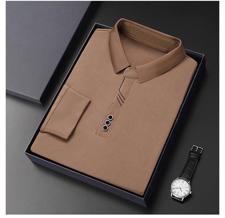 Camiseta de Manga Larga para Hombre de Primavera y Otoño 2025, Color Sólido Bordada, Camisa Polo de Solapa Casual Holgada para Papá de Mediana Edad, t de Alto Algodón