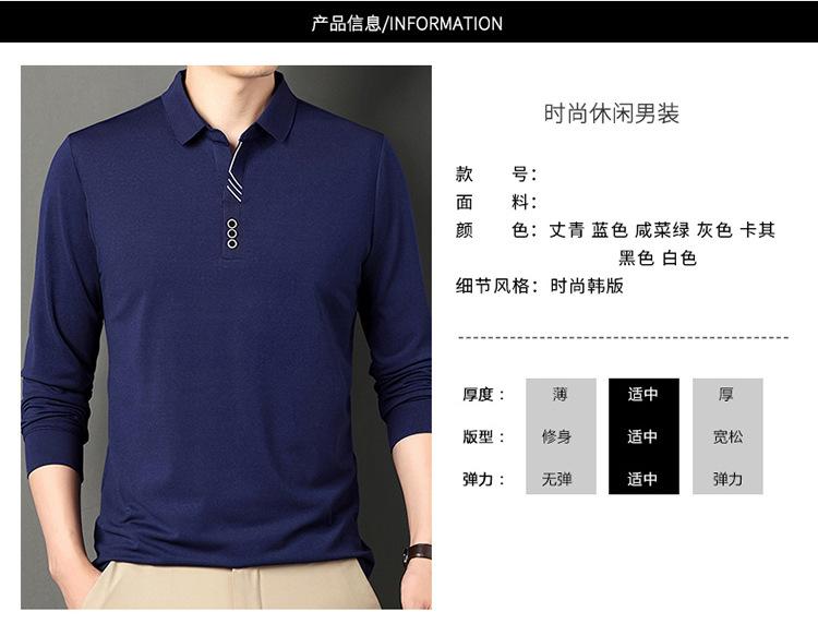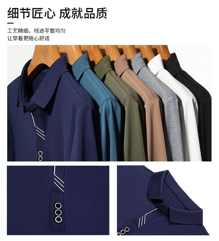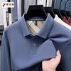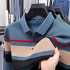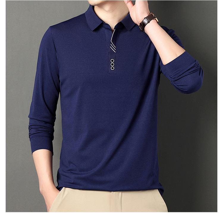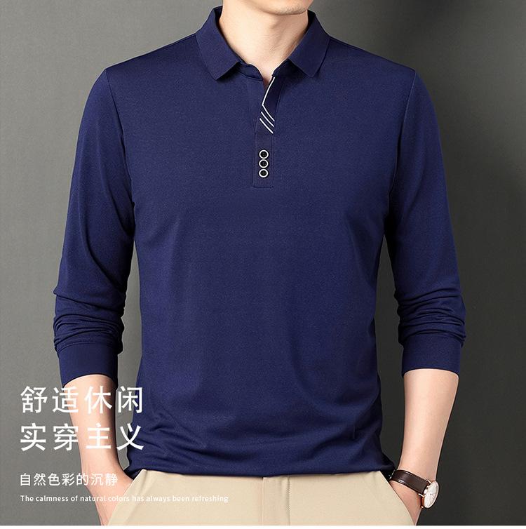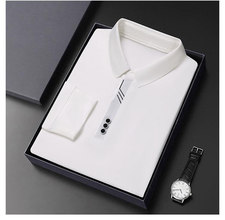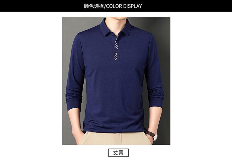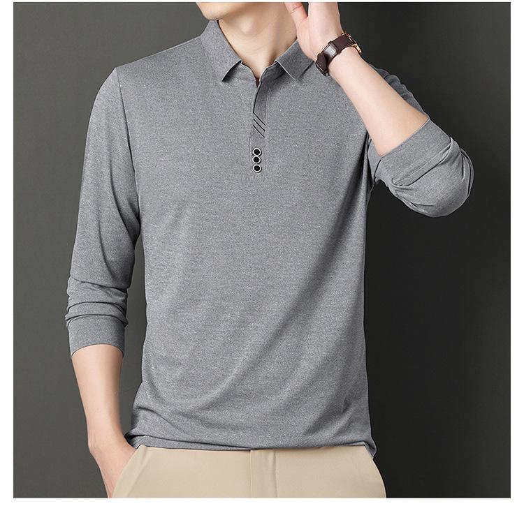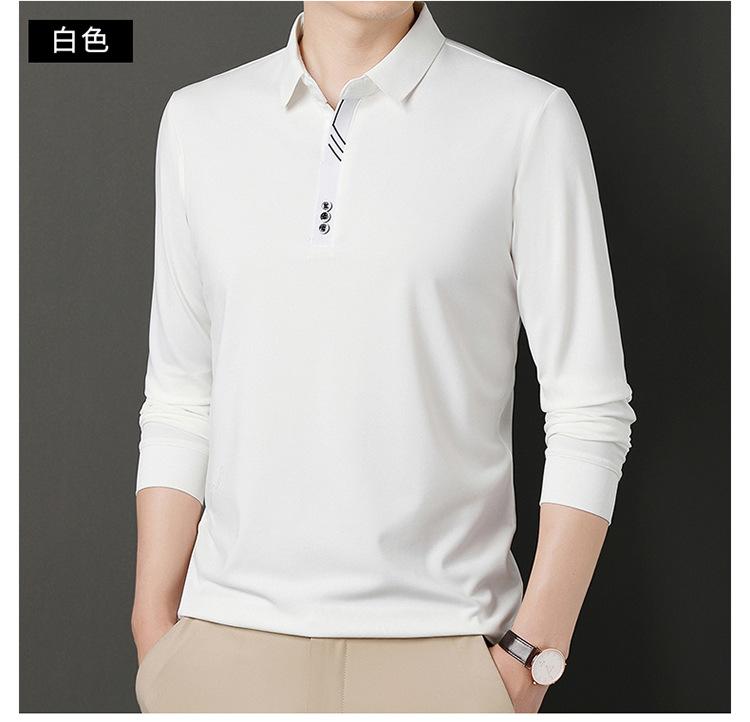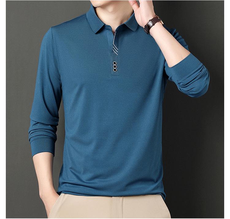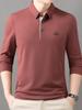 Camiseta de Manga Larga para Hombre de Primavera y Otoño 2025, Color Sólido Bordada, Camisa Polo de Solapa Casual Holgada para Papá de Mediana Edad, t de Alto Algodón