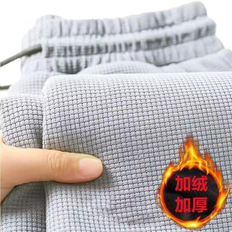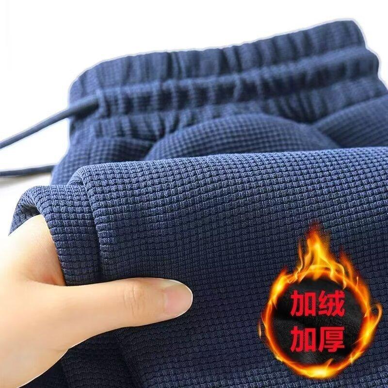 Otoño e Invierno Talla Grande Color Sólido Simple Pierna Recta Casual Pantalones Largos Otoño Nuevo Forro Polar Engrosado Suelto Pantalones Largos Deportivos para Hombre
