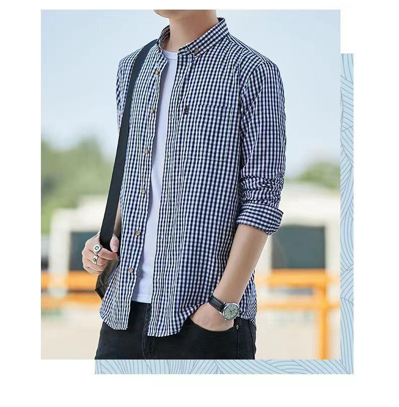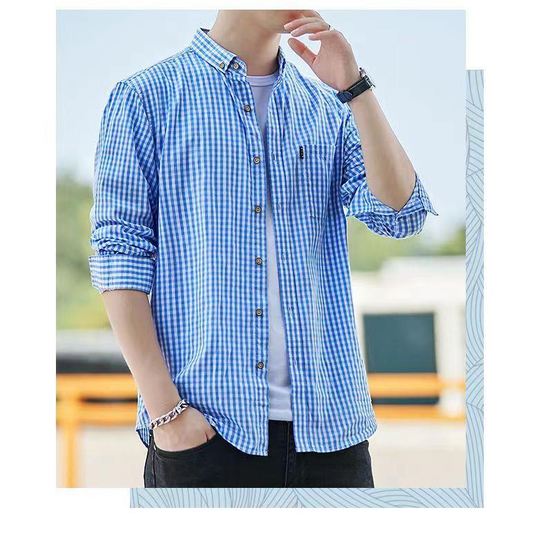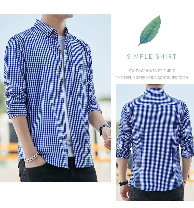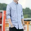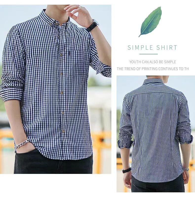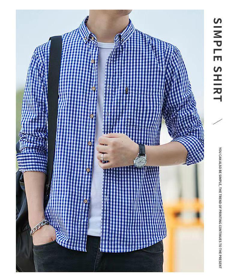 Camisa de algodón a cuadros para hombre de primavera y otoño, delgada, de manga larga, casual de negocios, camisa de algodón para hombre, moda de corte ajustado estilo coreano