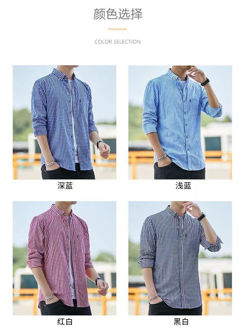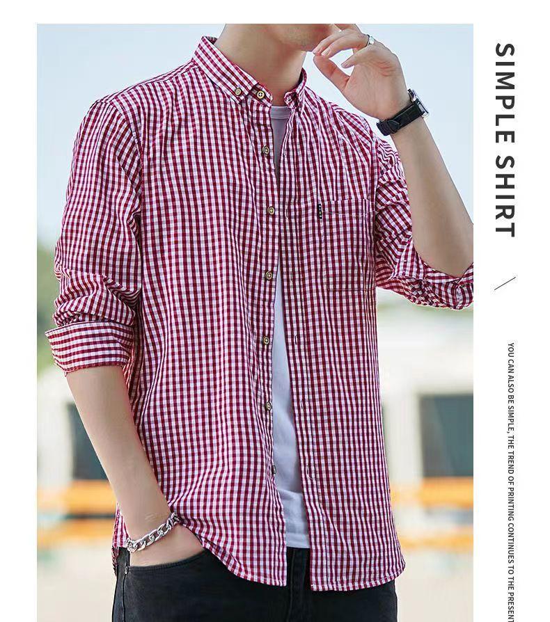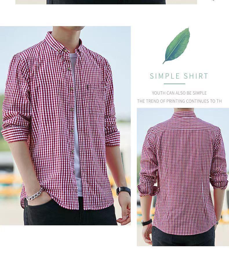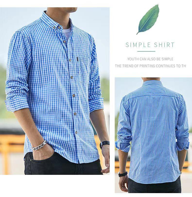 Camisa de algodón a cuadros para hombre de primavera y otoño, delgada, de manga larga, casual de negocios, camisa de algodón para hombre, moda de corte ajustado estilo coreano