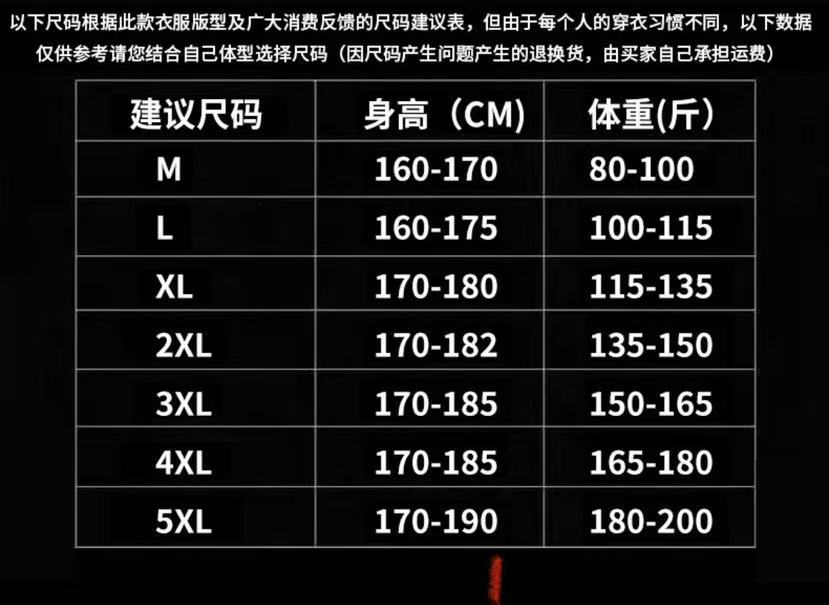 M, L, XL, 2XL, 3XL, 4XL, 5XL