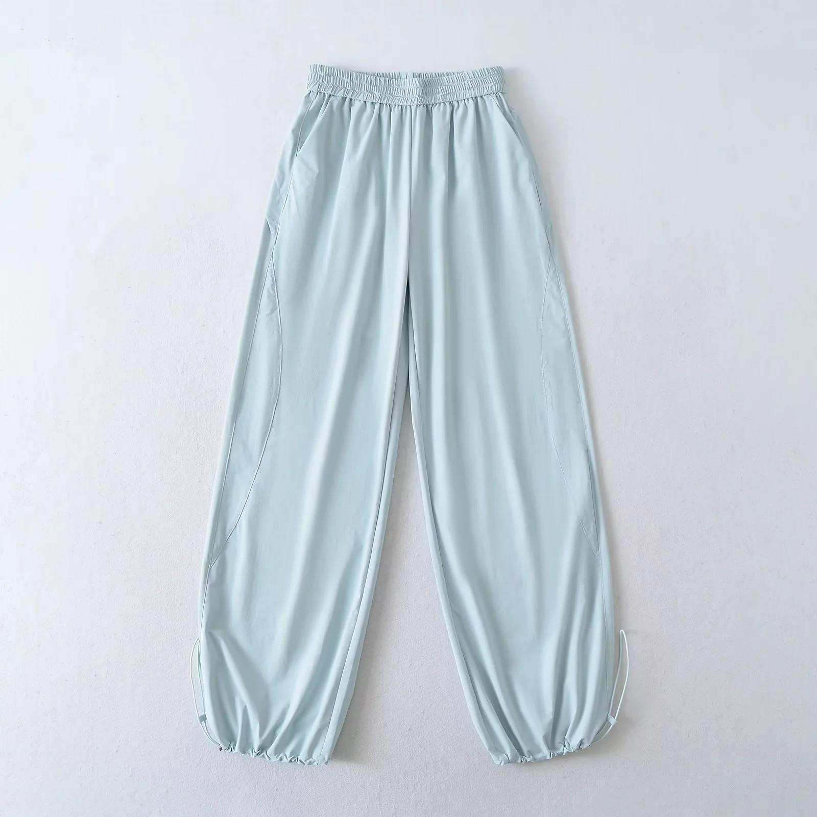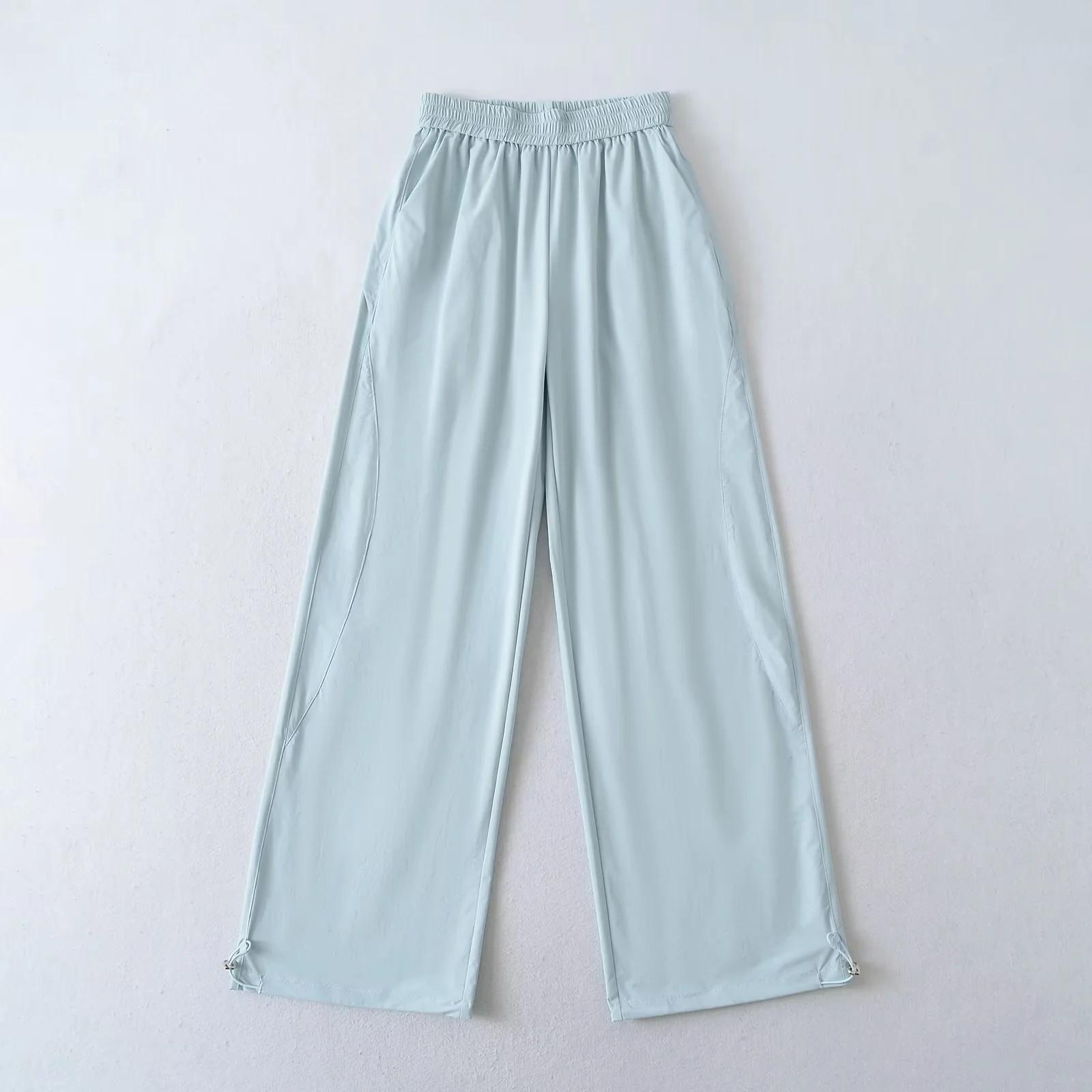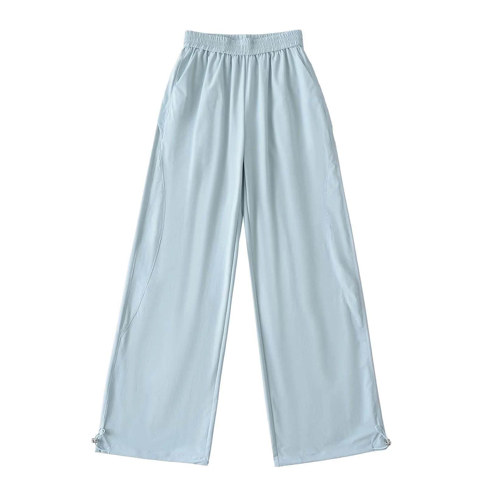 2025 Nuevo Verano Delgados Pantalones Casuales American College Sueltos Seda Helada Secado Rápido Rectos Pierna Ancha Pantalones Deportivos