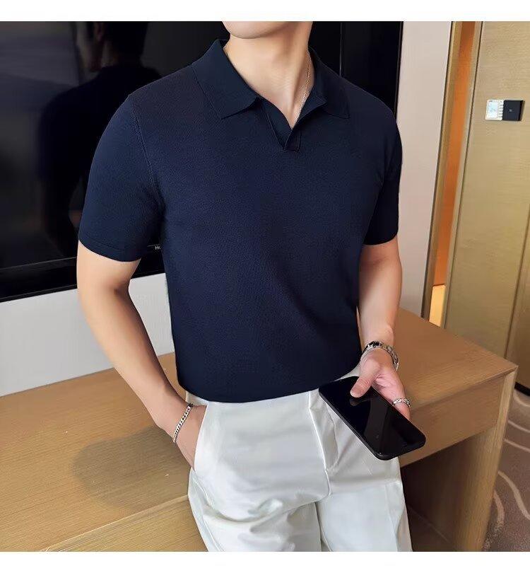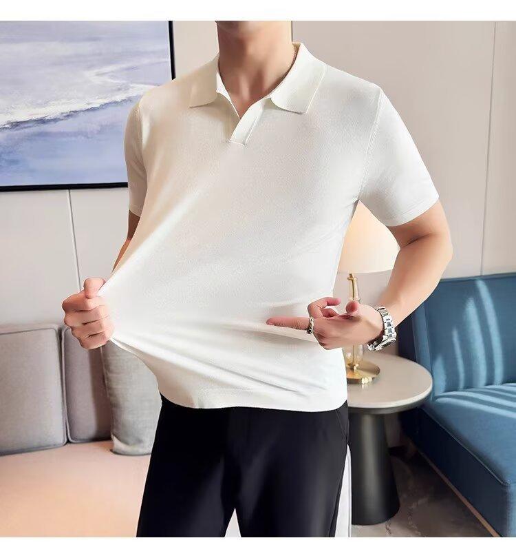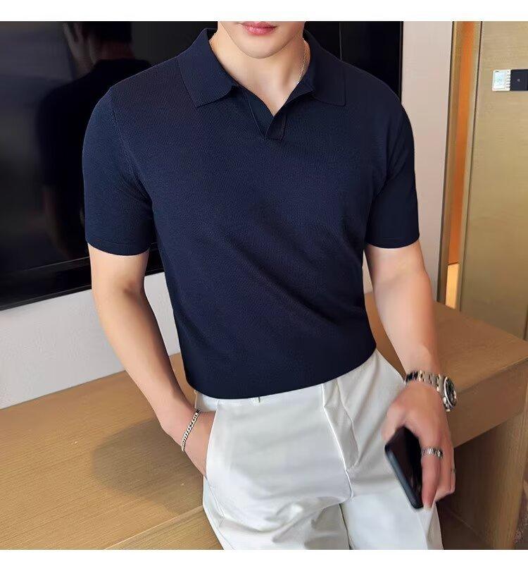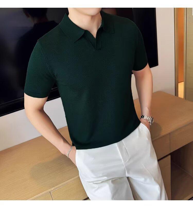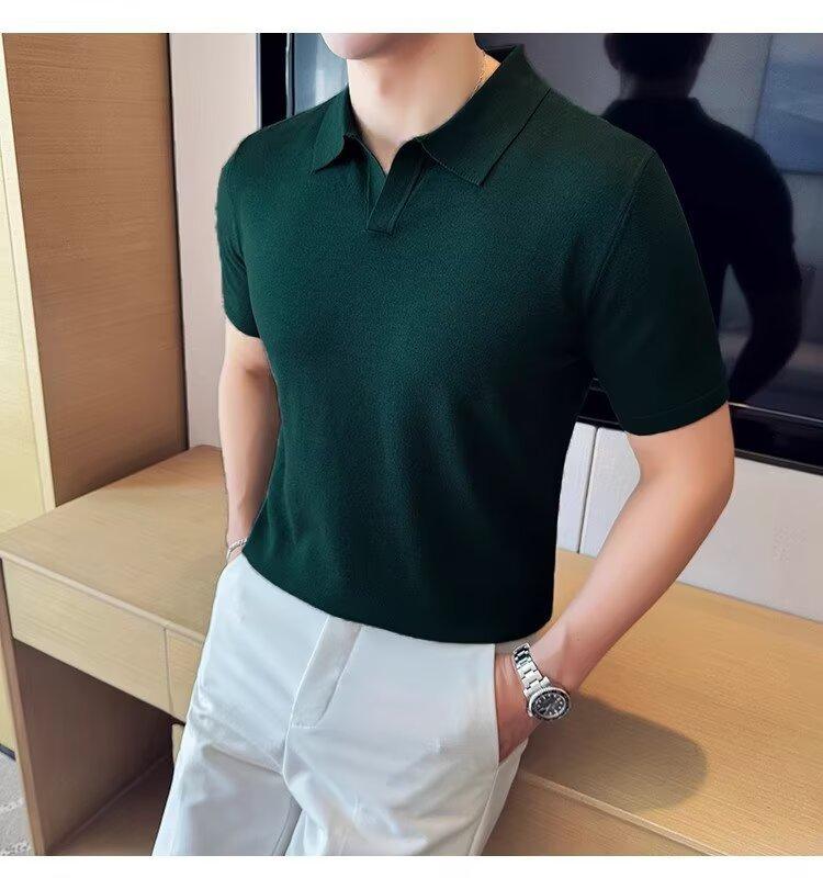 Verano Nuevo Camiseta Polo de Punto de Color Puro para Hombre Manga Corta Solapa Camiseta Slim Estilo de Negocios Casual Versátil