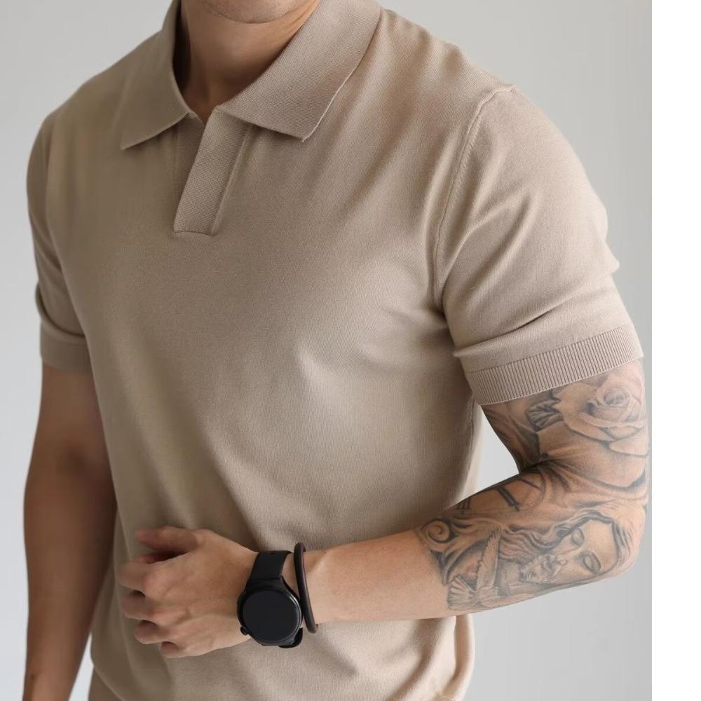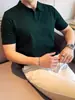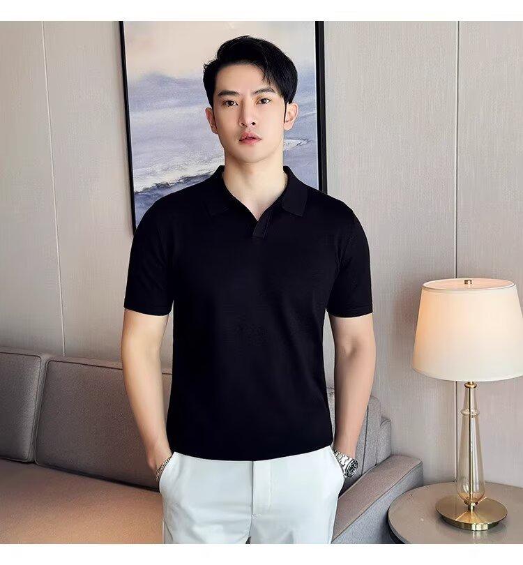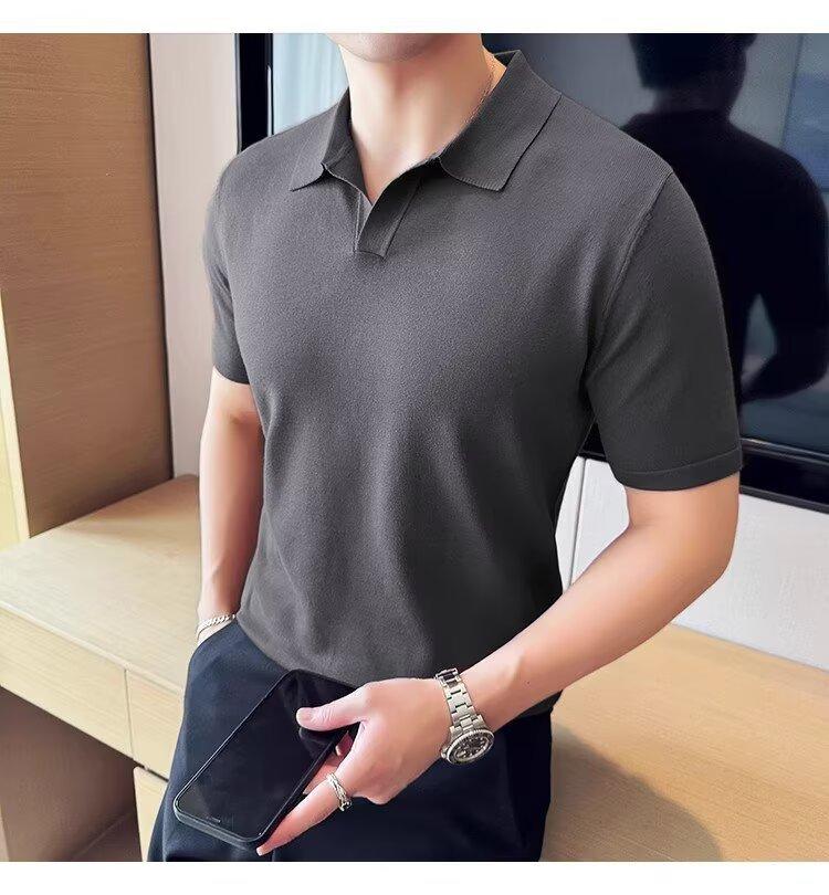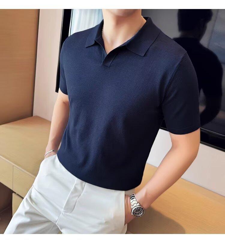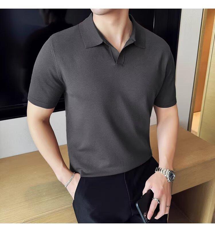 Verano Nuevo Camiseta Polo de Punto de Color Puro para Hombre Manga Corta Solapa Camiseta Slim Estilo de Negocios Casual Versátil