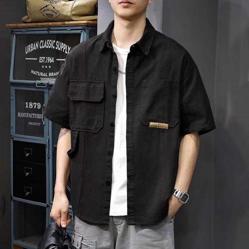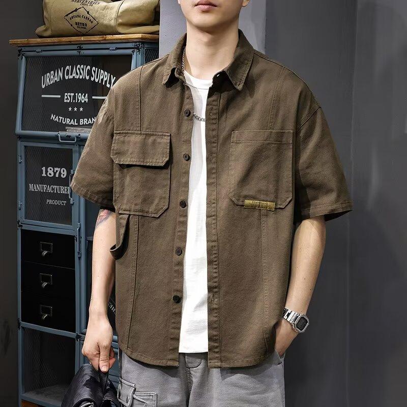 2025 Nueva Camisa de Trabajo para Hombre Verano Juvenil Americana Holgada Casual Moderna Camisa de Manga Corta Ropa de Hombre