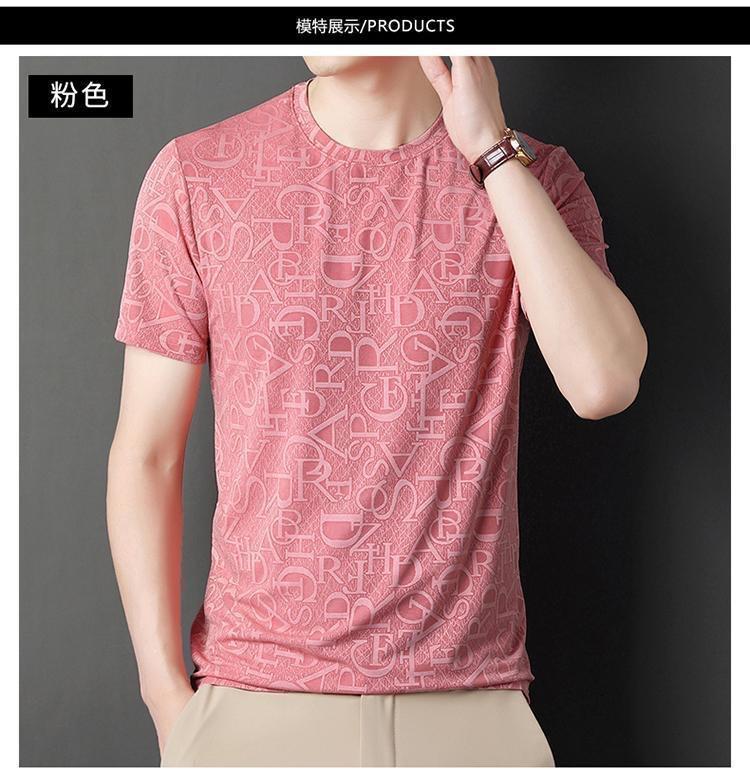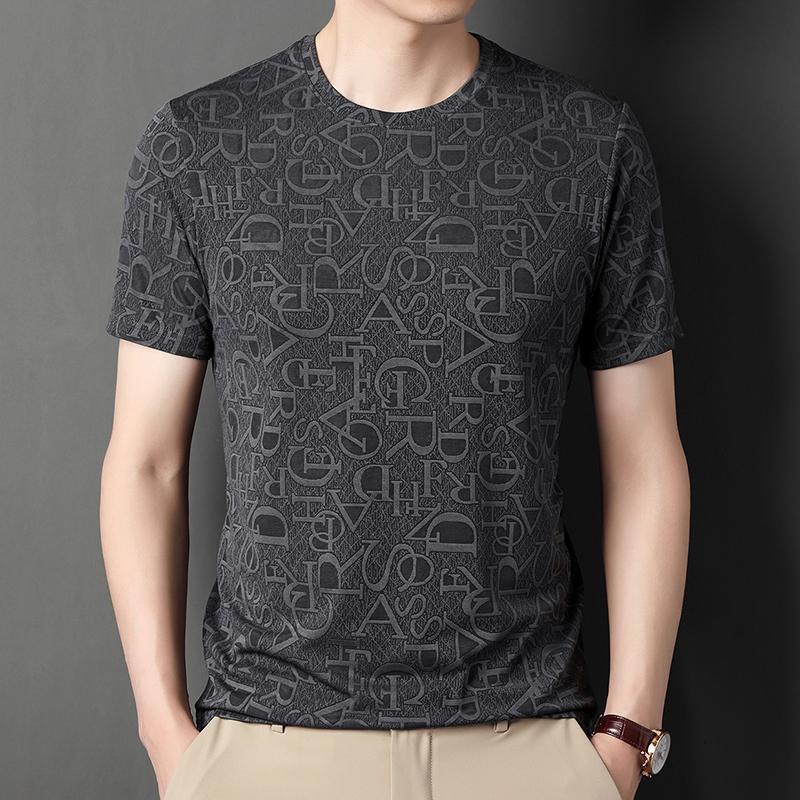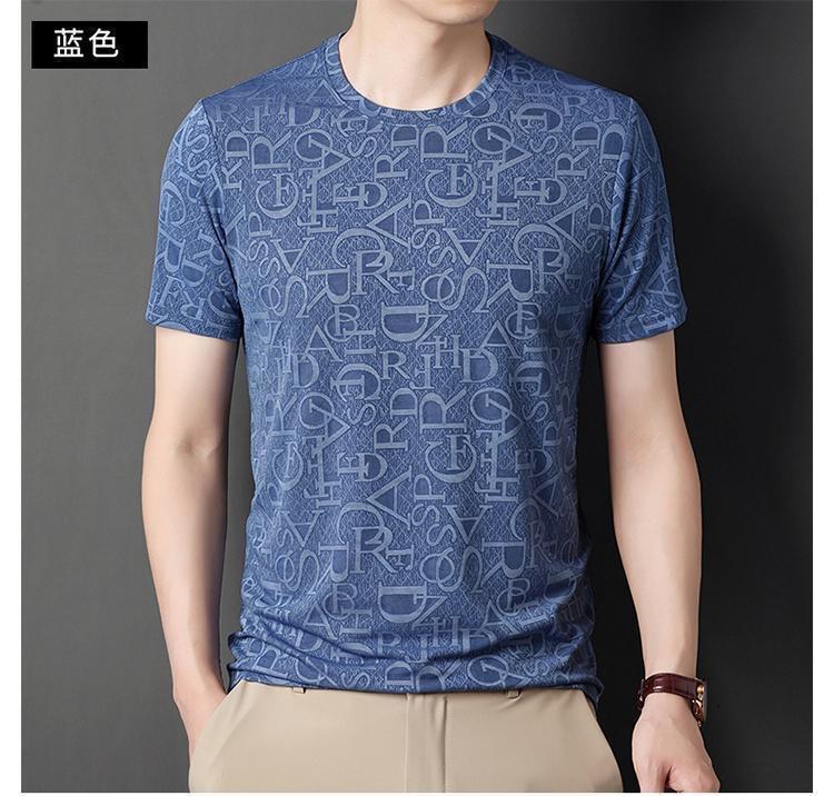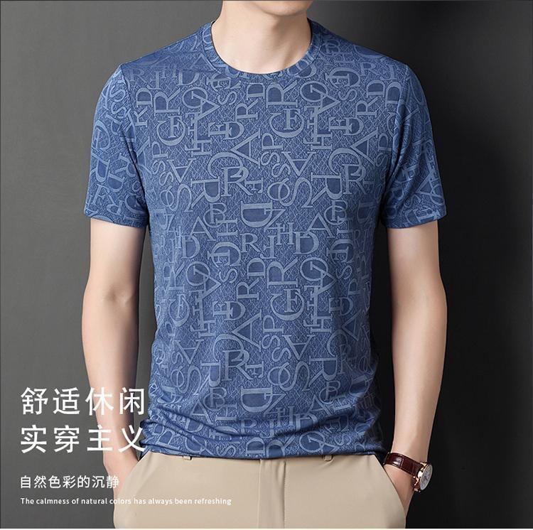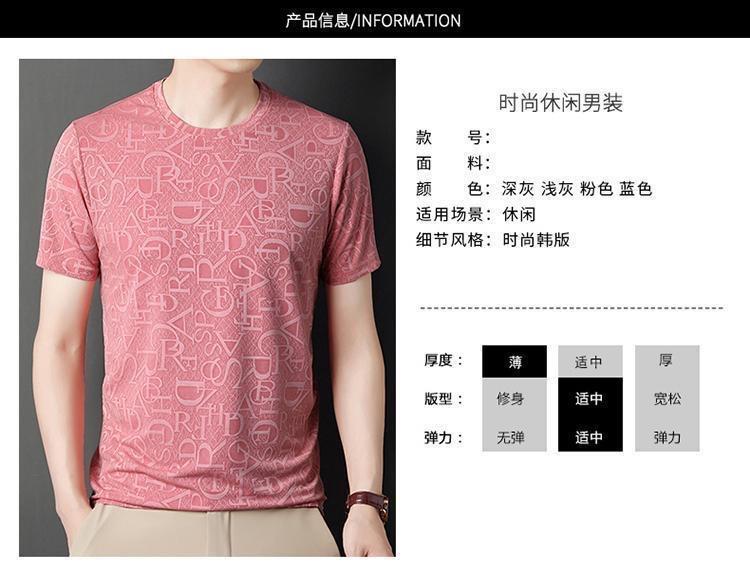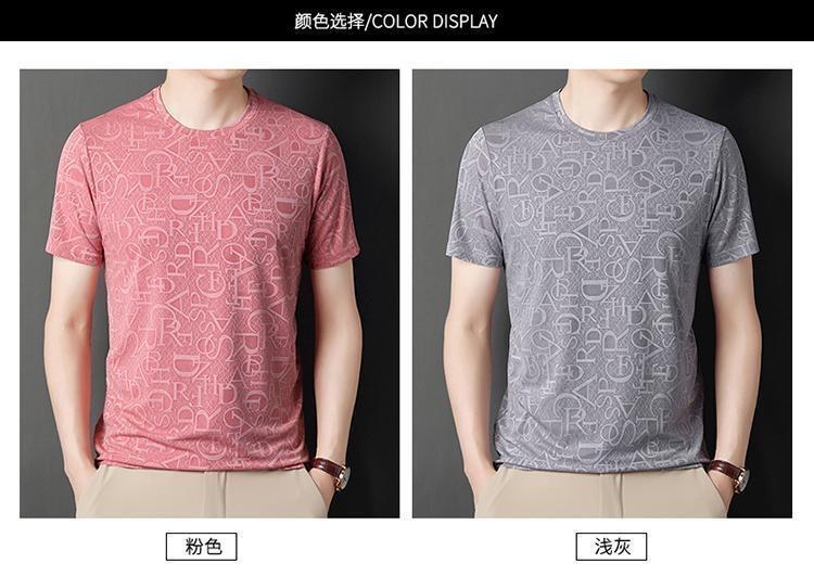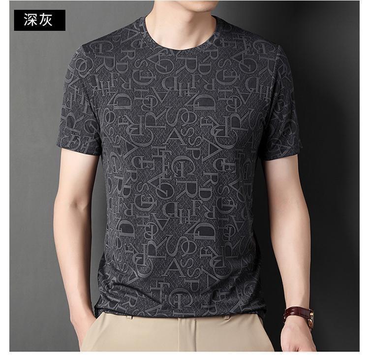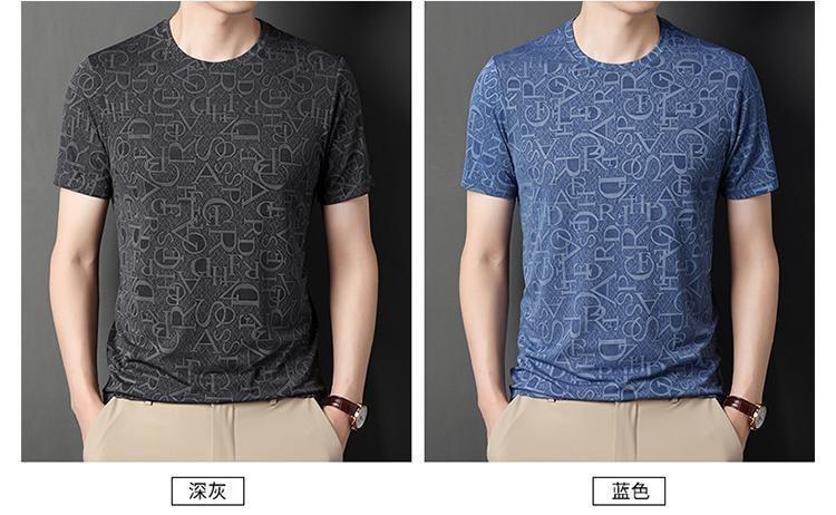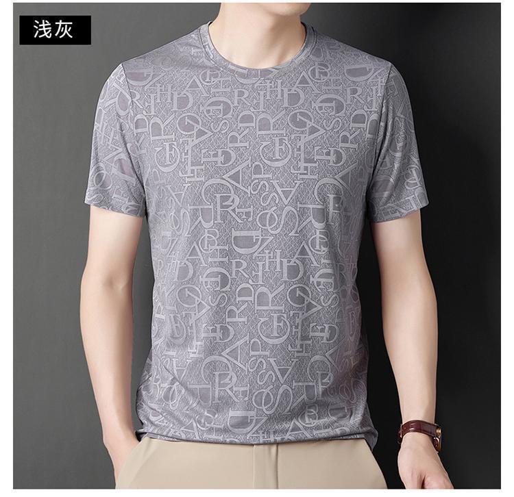 Camiseta de seda de hielo para comercio exterior transfronterizo t verano manga corta delgada manga corta camiseta de hombre cuello redondo top casual camisa base jacquard