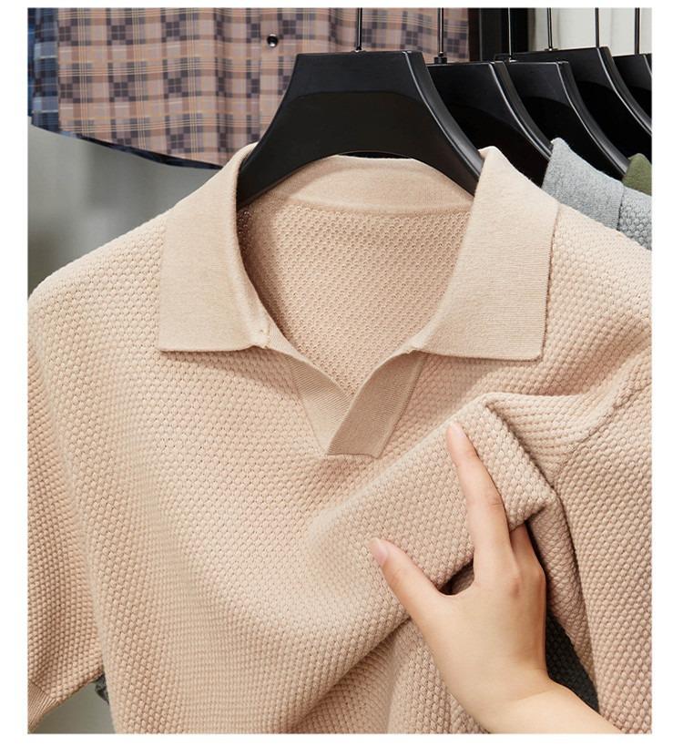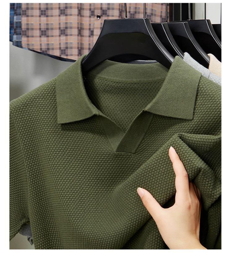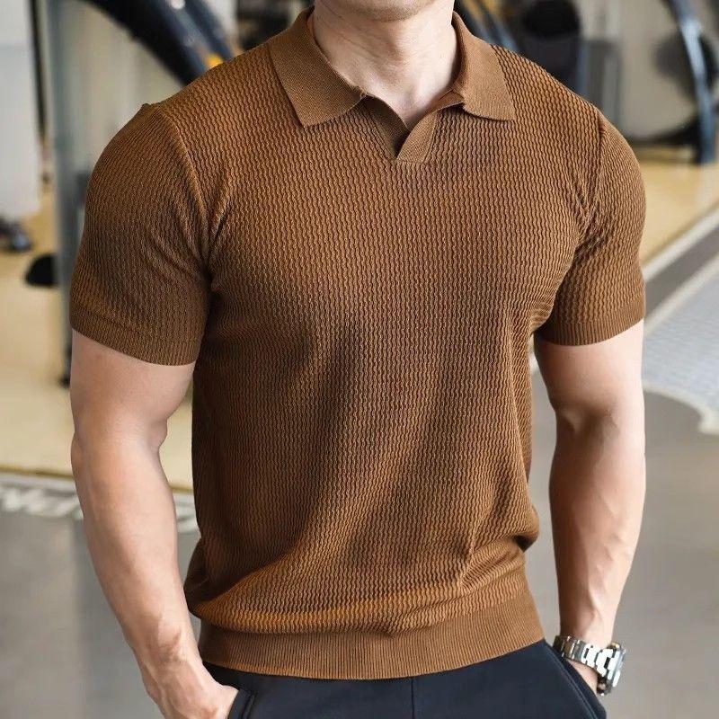 Deportes de Verano y Ocio Fitness Manga Corta Tops de Entrenamiento para Correr para Hombre Color Puro Textura Transpirable Camiseta con Cuello Polo