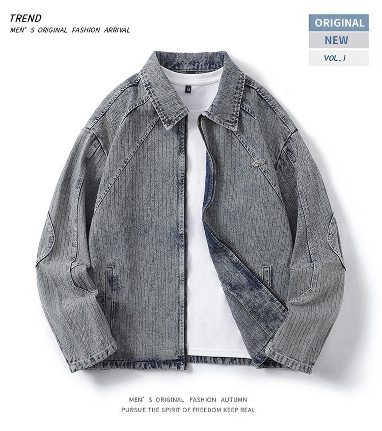 Otoño 2024 Nueva Moda Marca Chaqueta de Mezclilla para Hombre Chaqueta de Mezclilla Juvenil de Color Sólido Chaqueta Holgada Coreana Venta al por Mayor