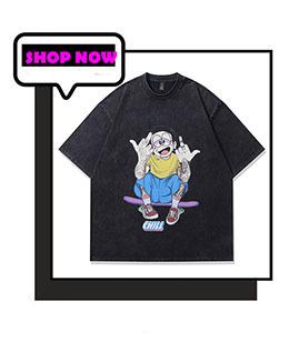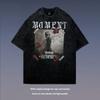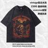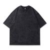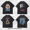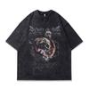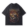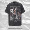 Tkpa Marca de Moda Urbana de Alta Gama Vintage Retro Estampado de Calavera Camiseta de Hombre Escote Pequeño Holgada Lavada Desgastada Manga Corta
