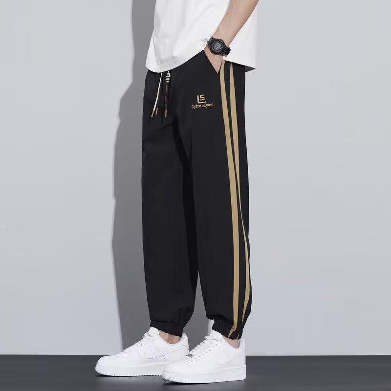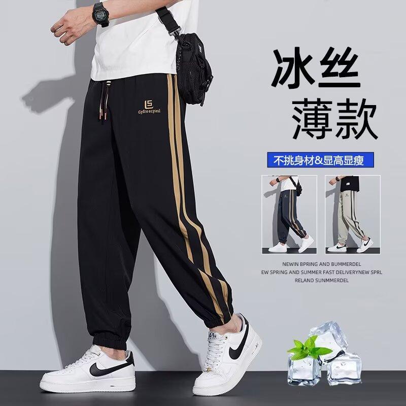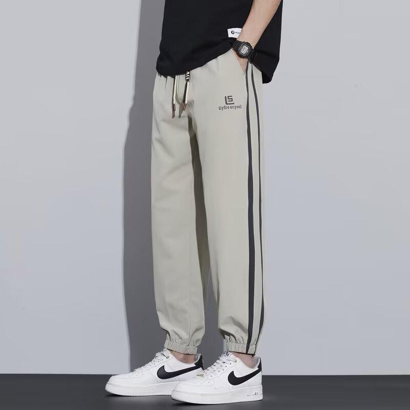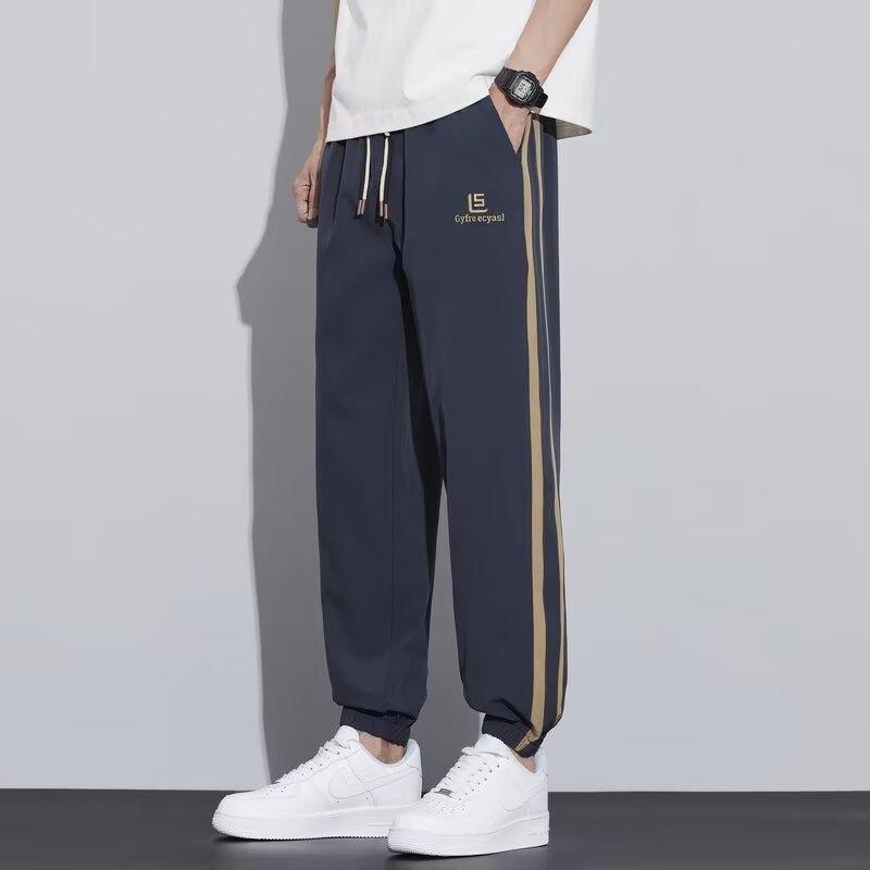 Pantalones casuales holgados nuevos para hombre, pantalones versátiles modernos de estilo coreano, pantalones largos hasta el piso de pierna ancha con caída fina de verano