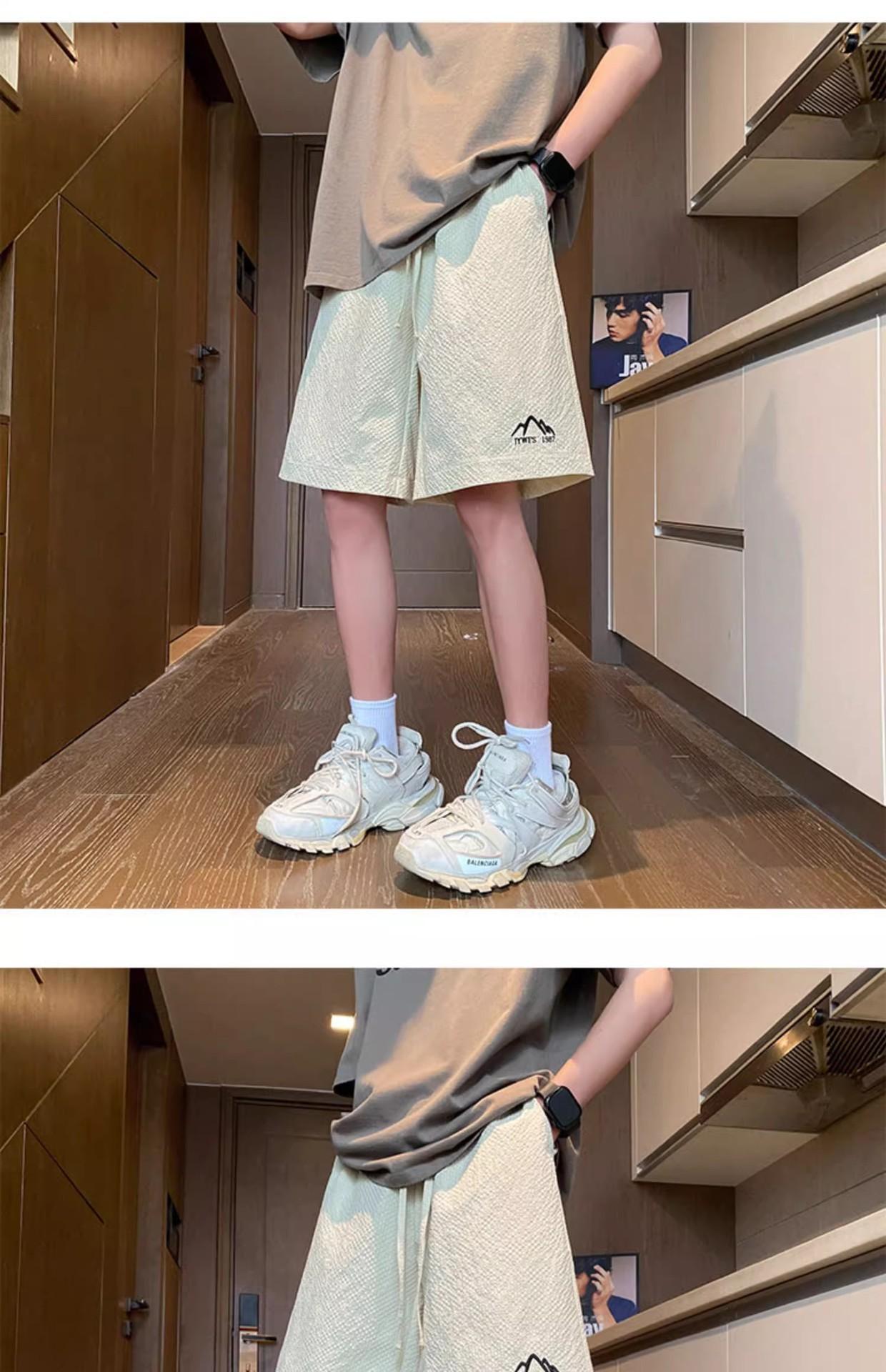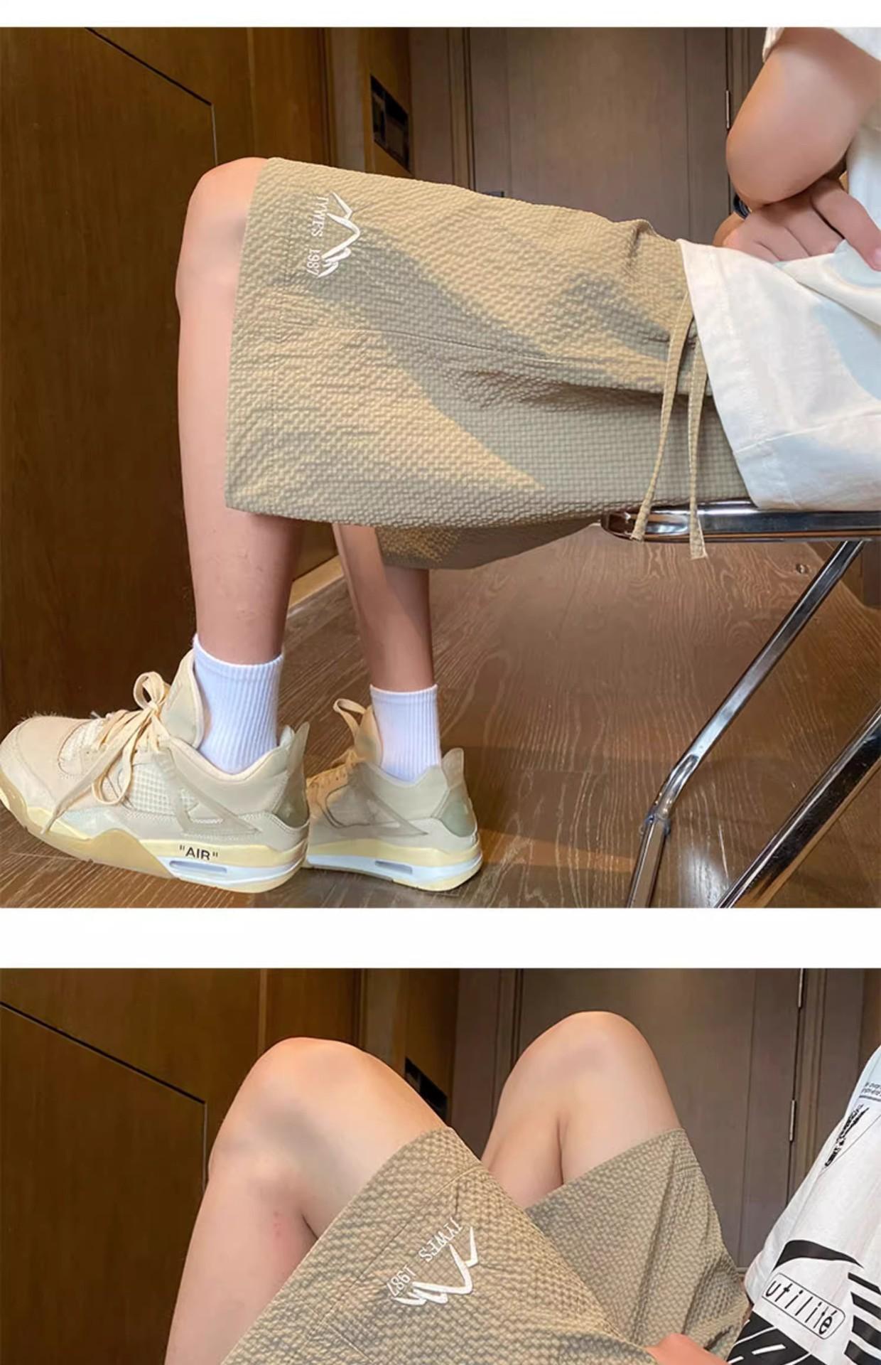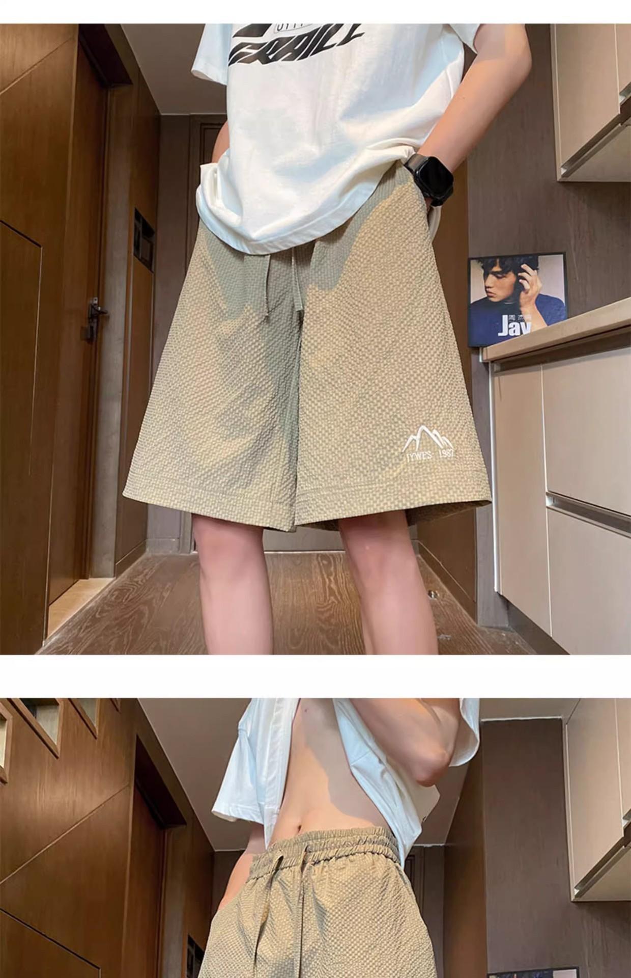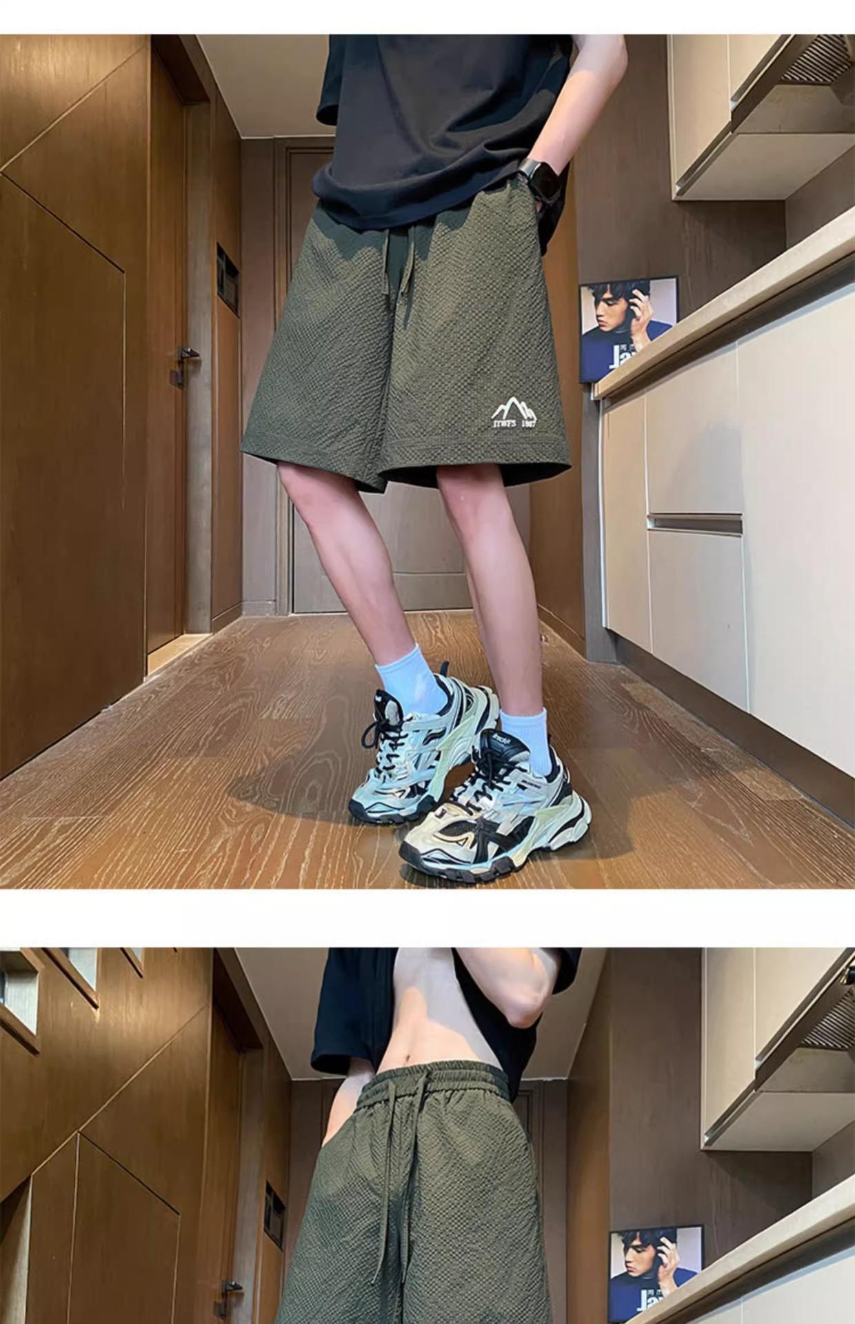 Pantalones Deportivos Casuales Holgados American High Street Pantalones de Playa para Hombre Moda para Hombre Verano Pantalones Cortos de Seda Helada de Secado Rápido Pantalones de Media Longitud para Hombre