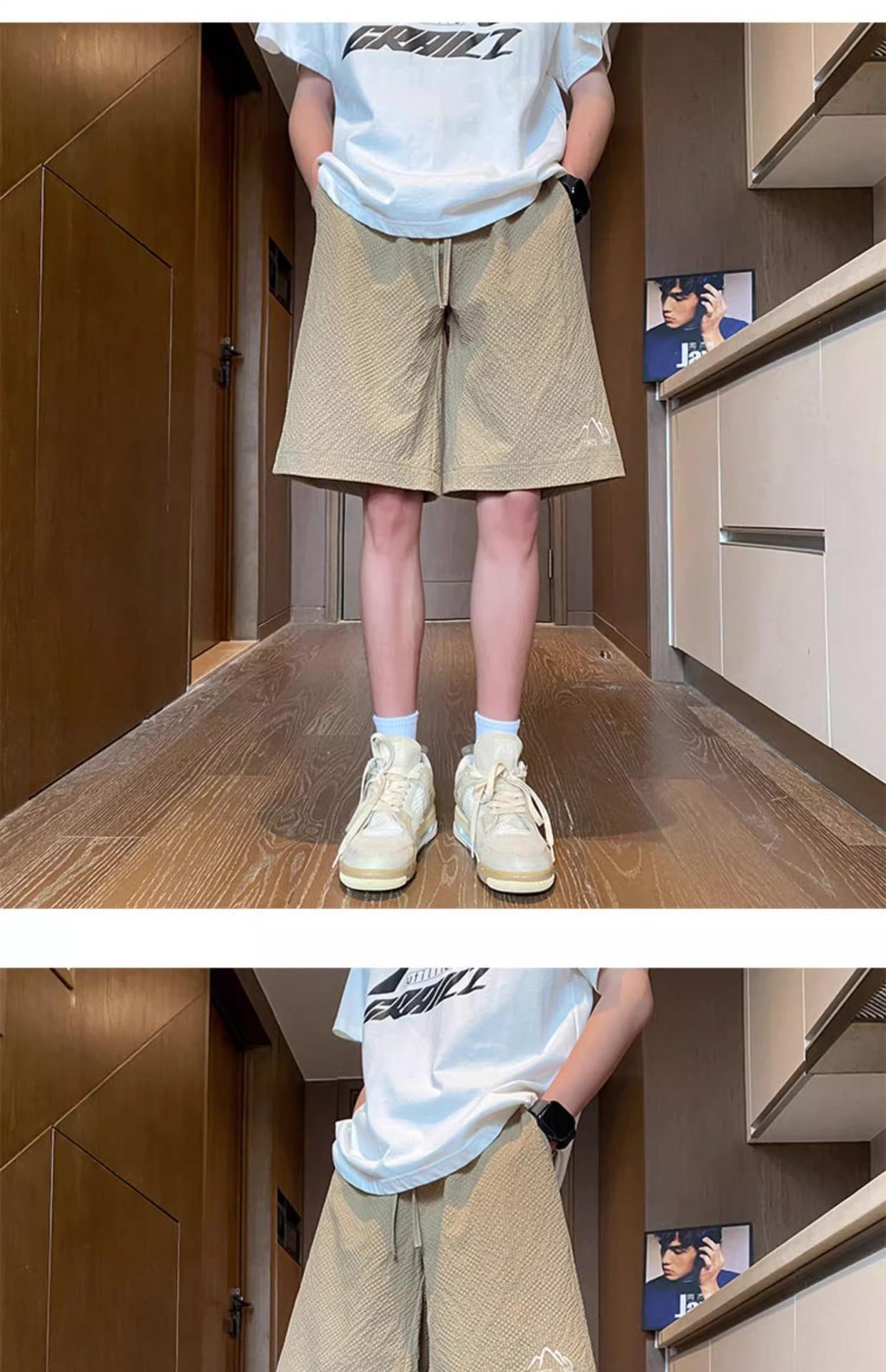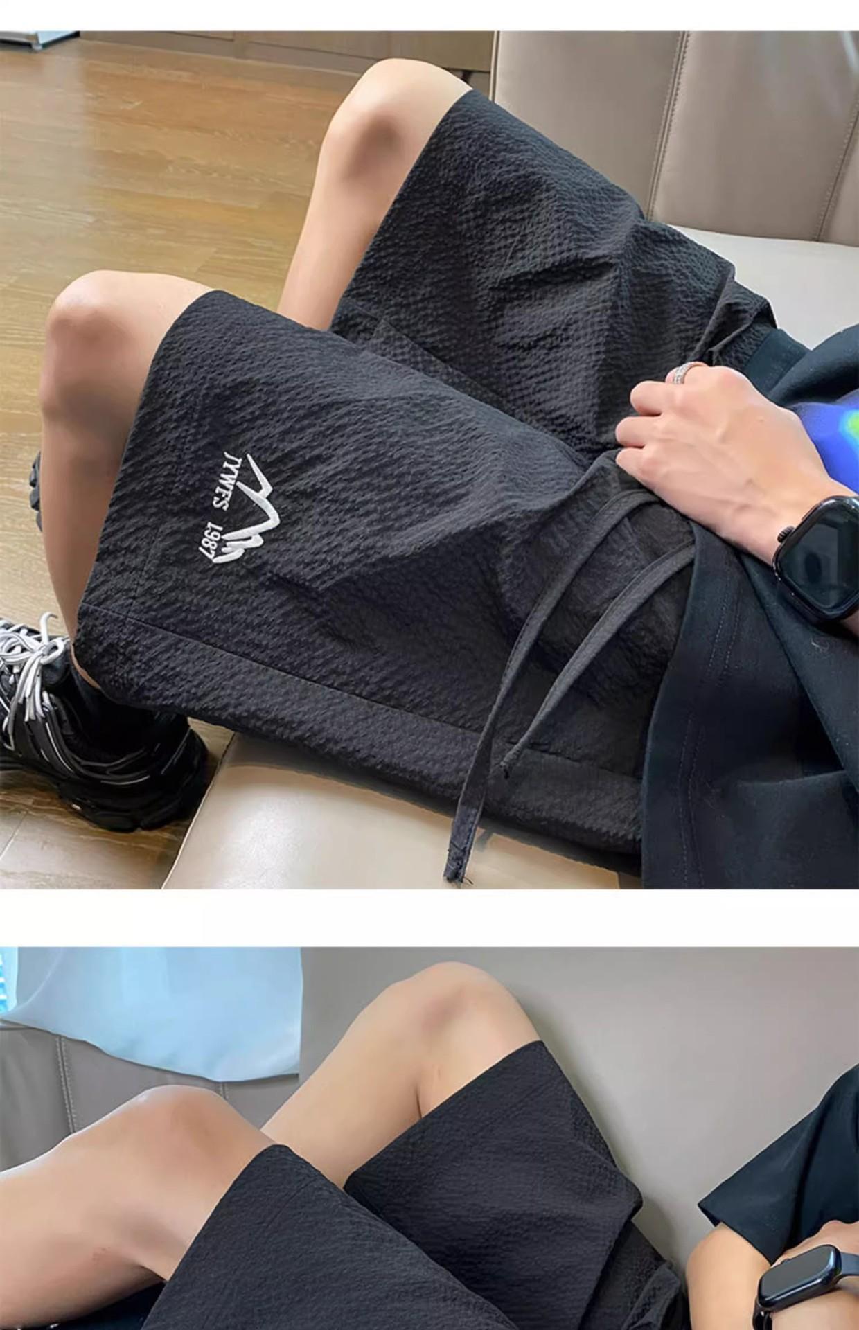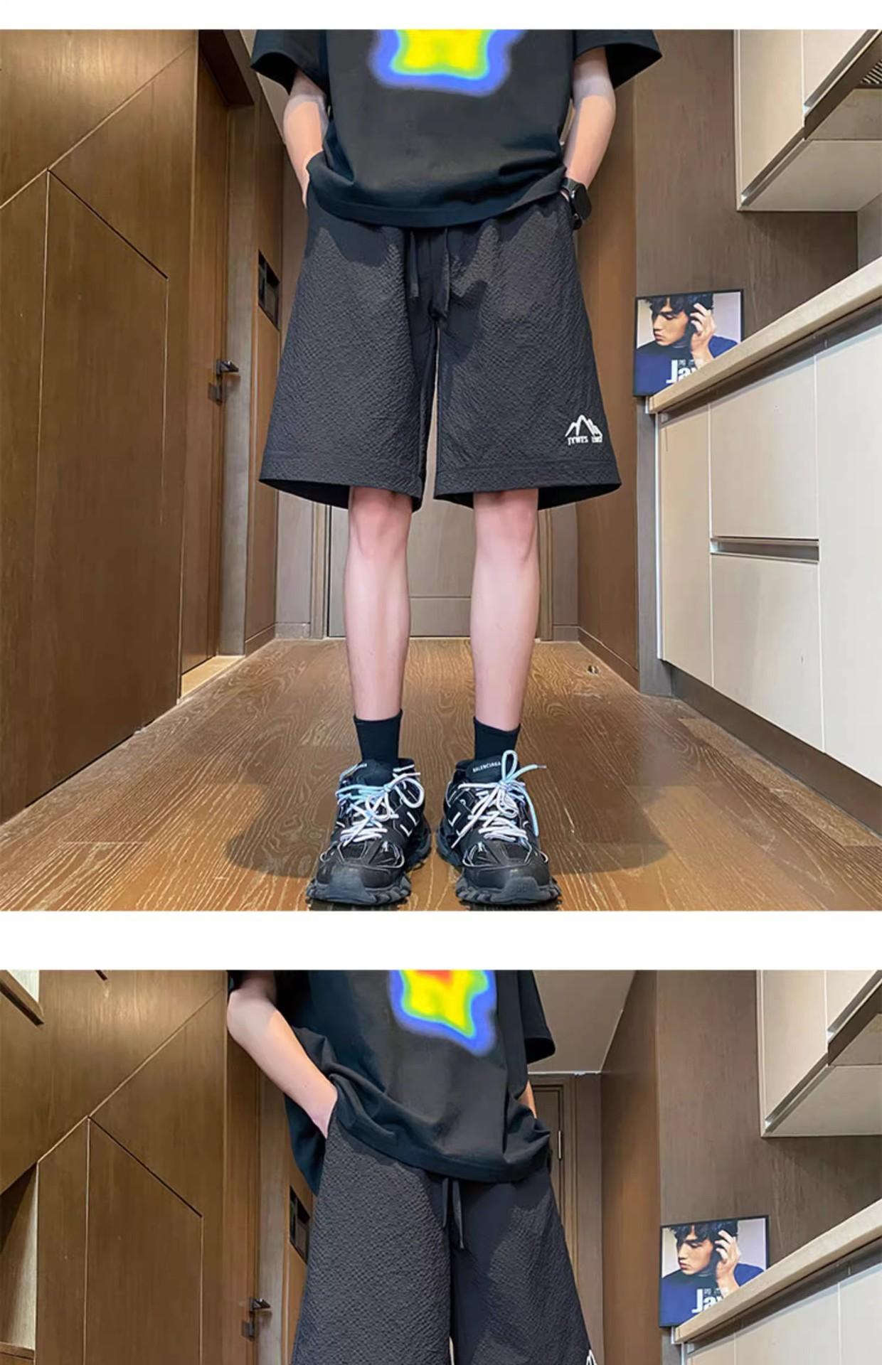Pantalones Deportivos Casuales Holgados American High Street Pantalones de Playa para Hombre Moda para Hombre Verano Pantalones Cortos de Seda Helada de Secado Rápido Pantalones de Media Longitud para Hombre