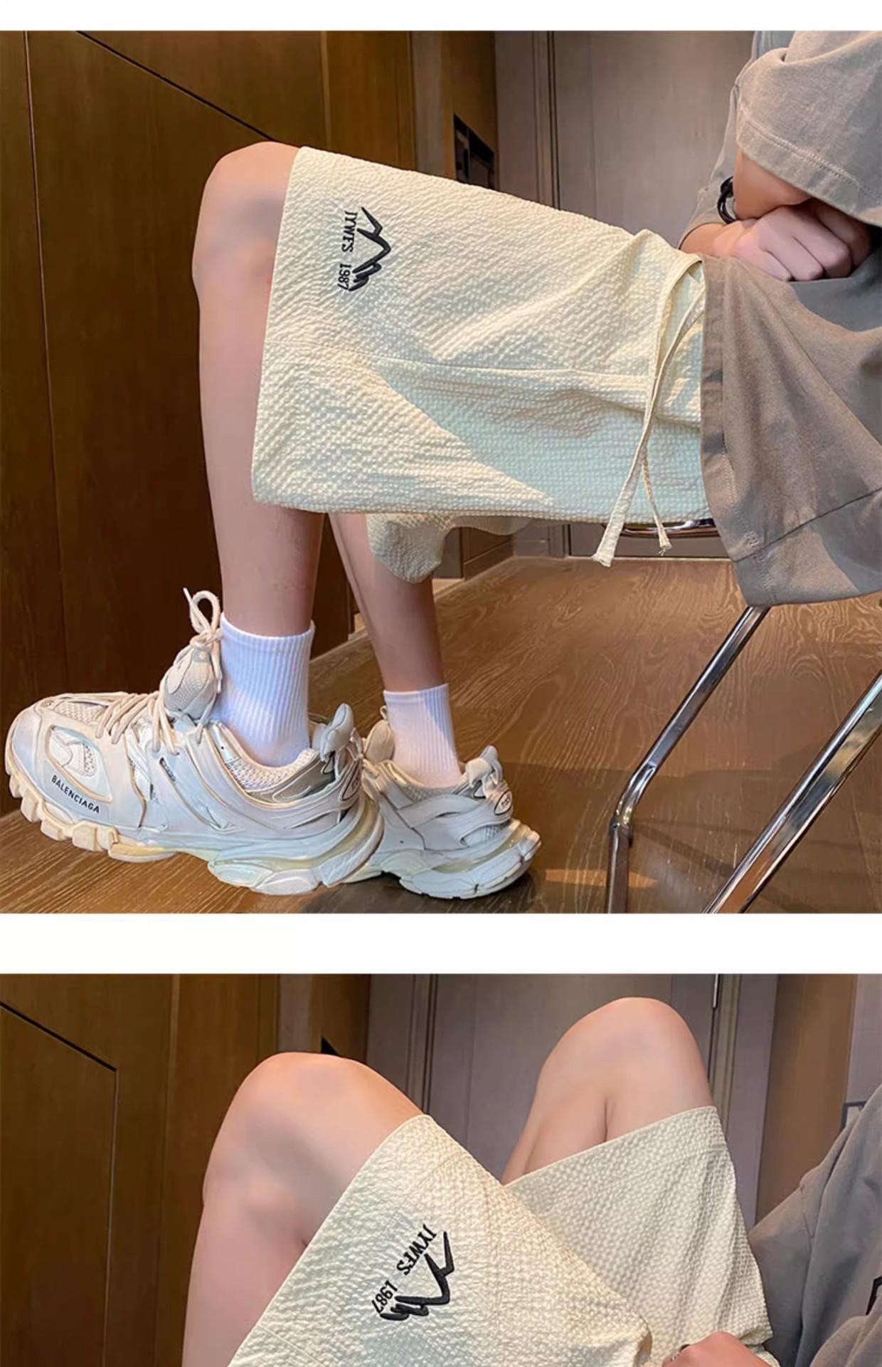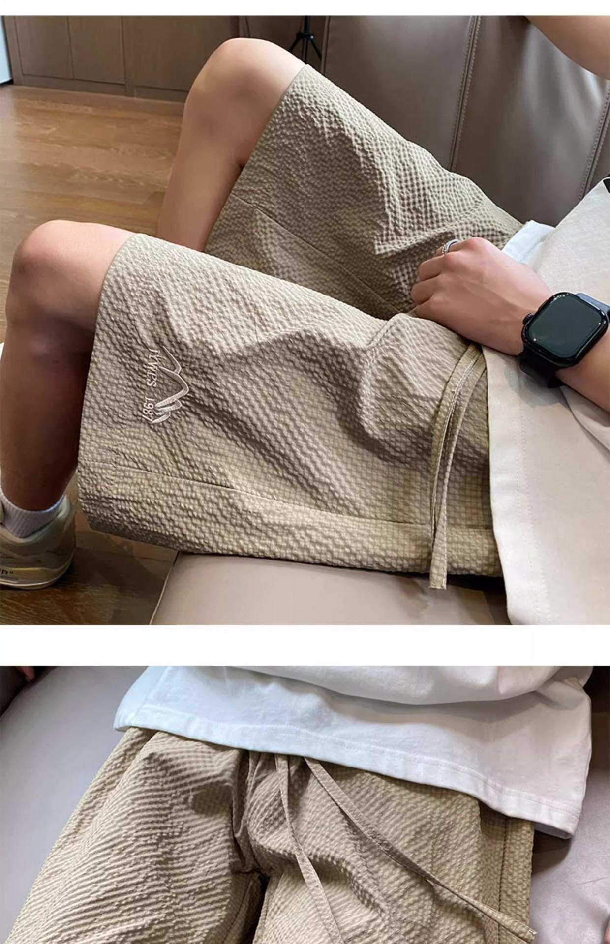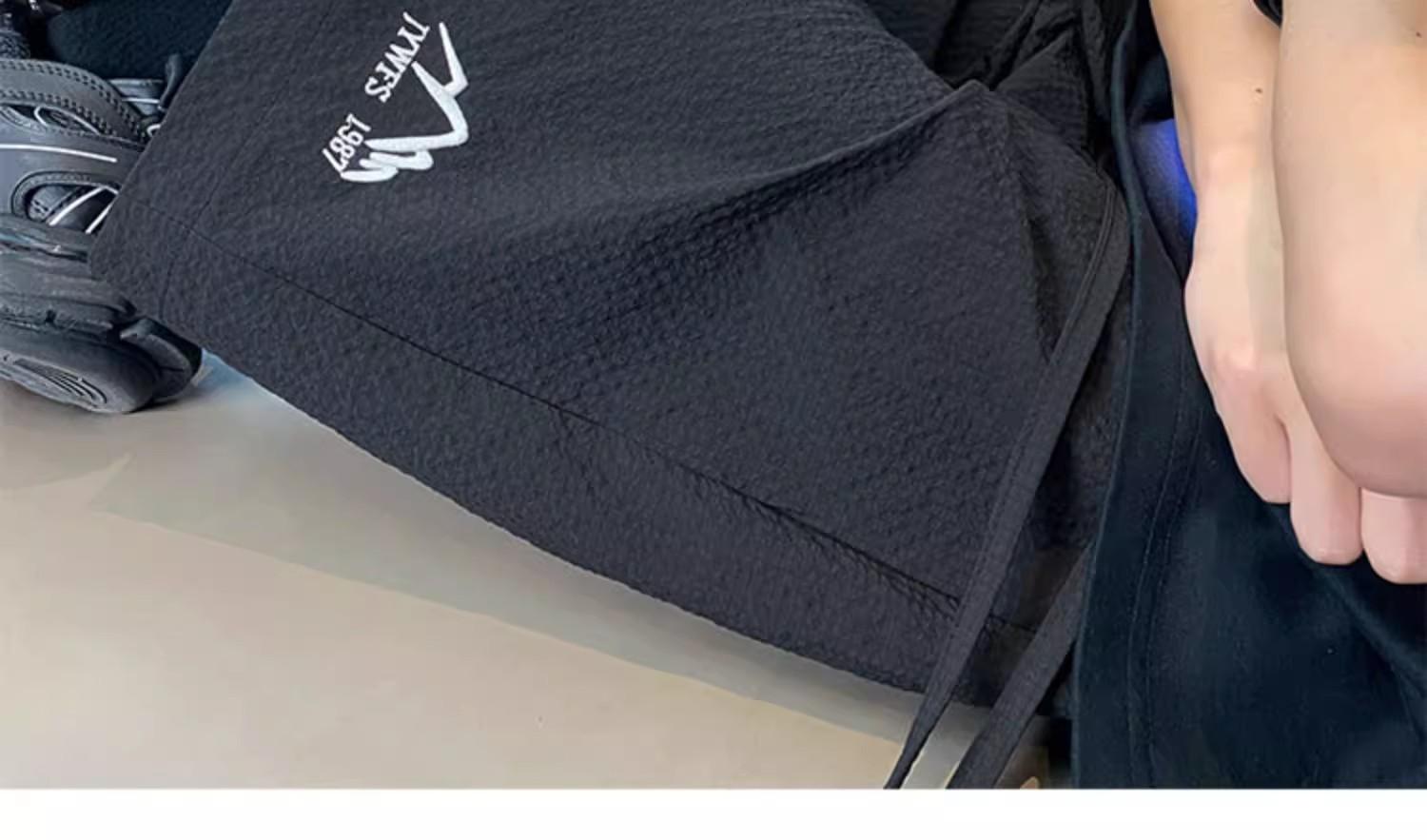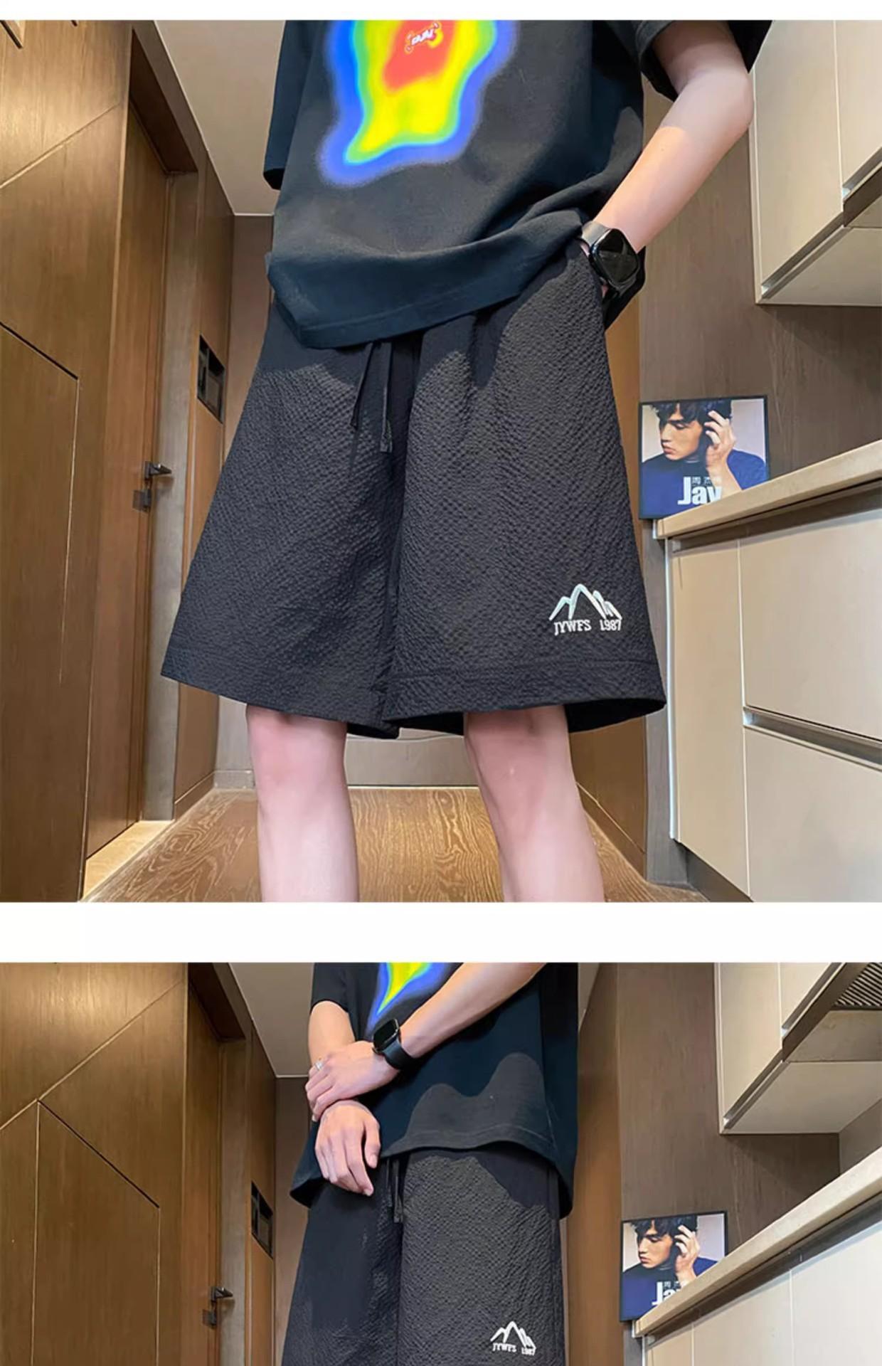 Pantalones Deportivos Casuales Holgados American High Street Pantalones de Playa para Hombre Moda para Hombre Verano Pantalones Cortos de Seda Helada de Secado Rápido Pantalones de Media Longitud para Hombre