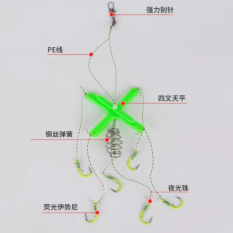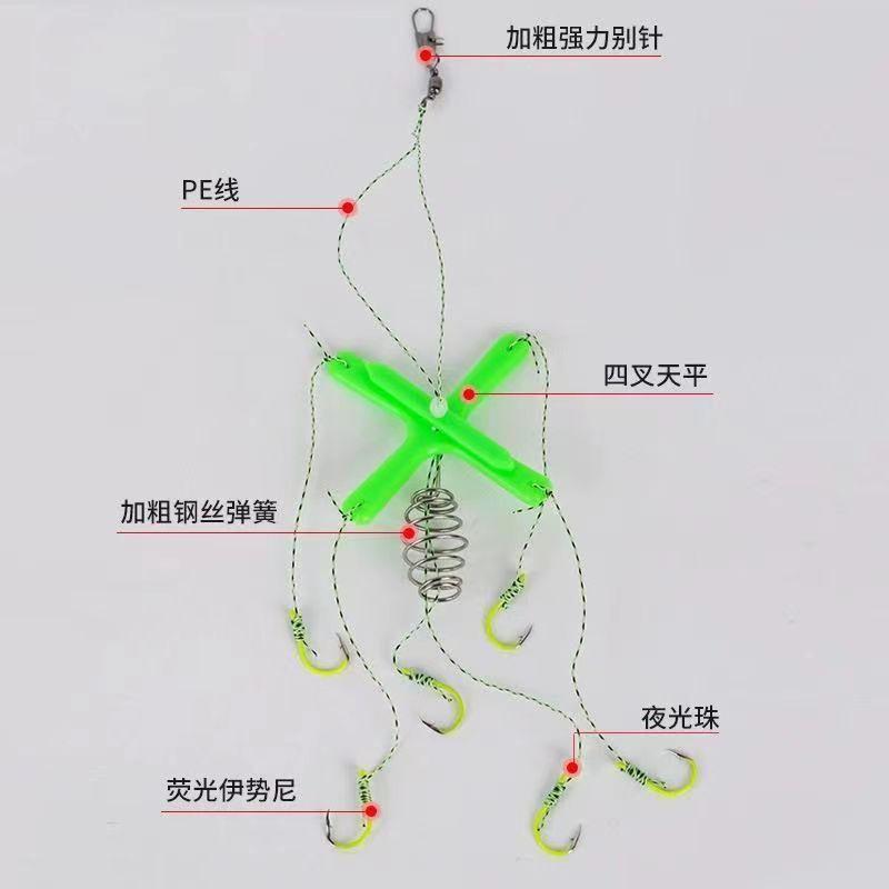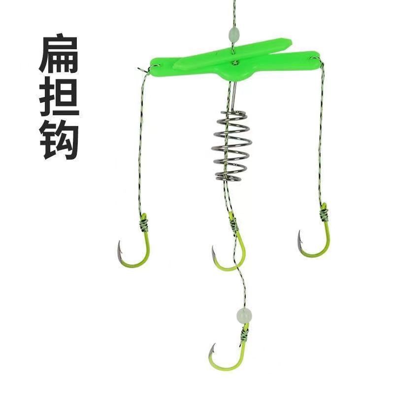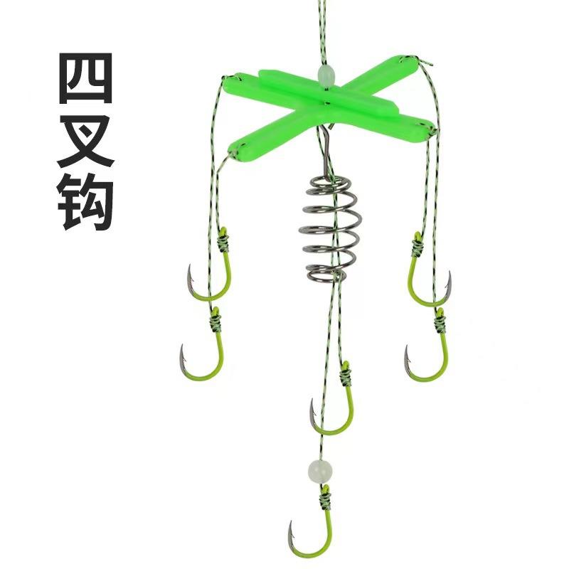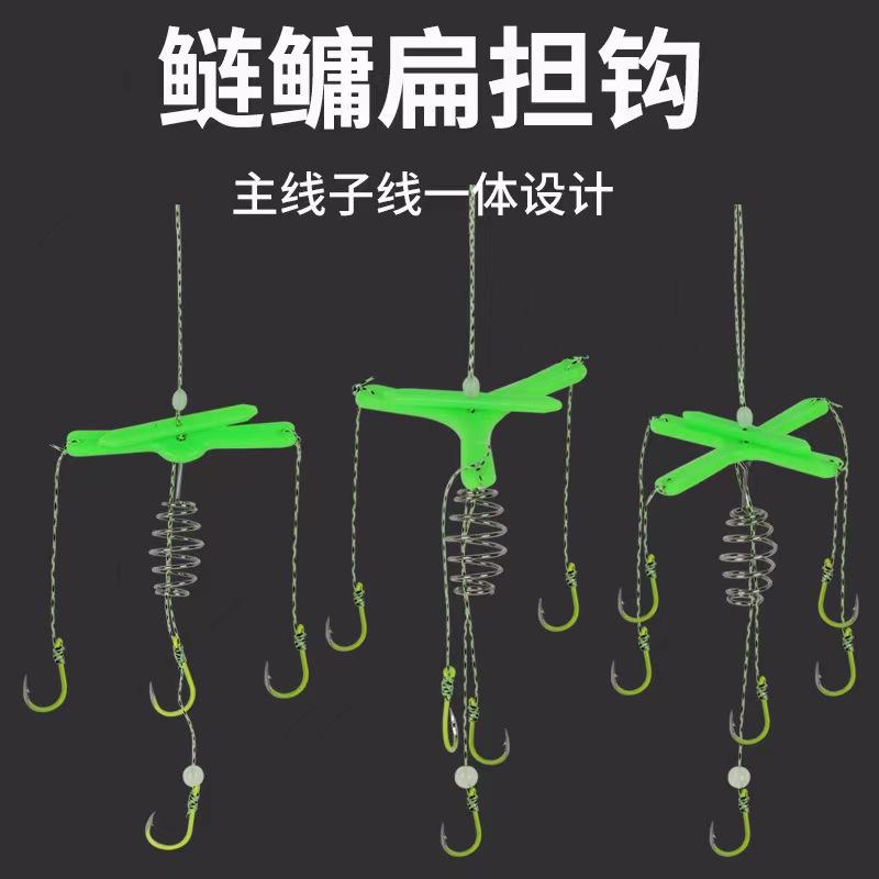 Grupo de pesca flotante de carpa plateada, cebo cuadrado, caña plana, anzuelo de explosión, nuevo anzuelo reforzado de cuatro puntas, anzuelo de aleta para cebo cuadrado