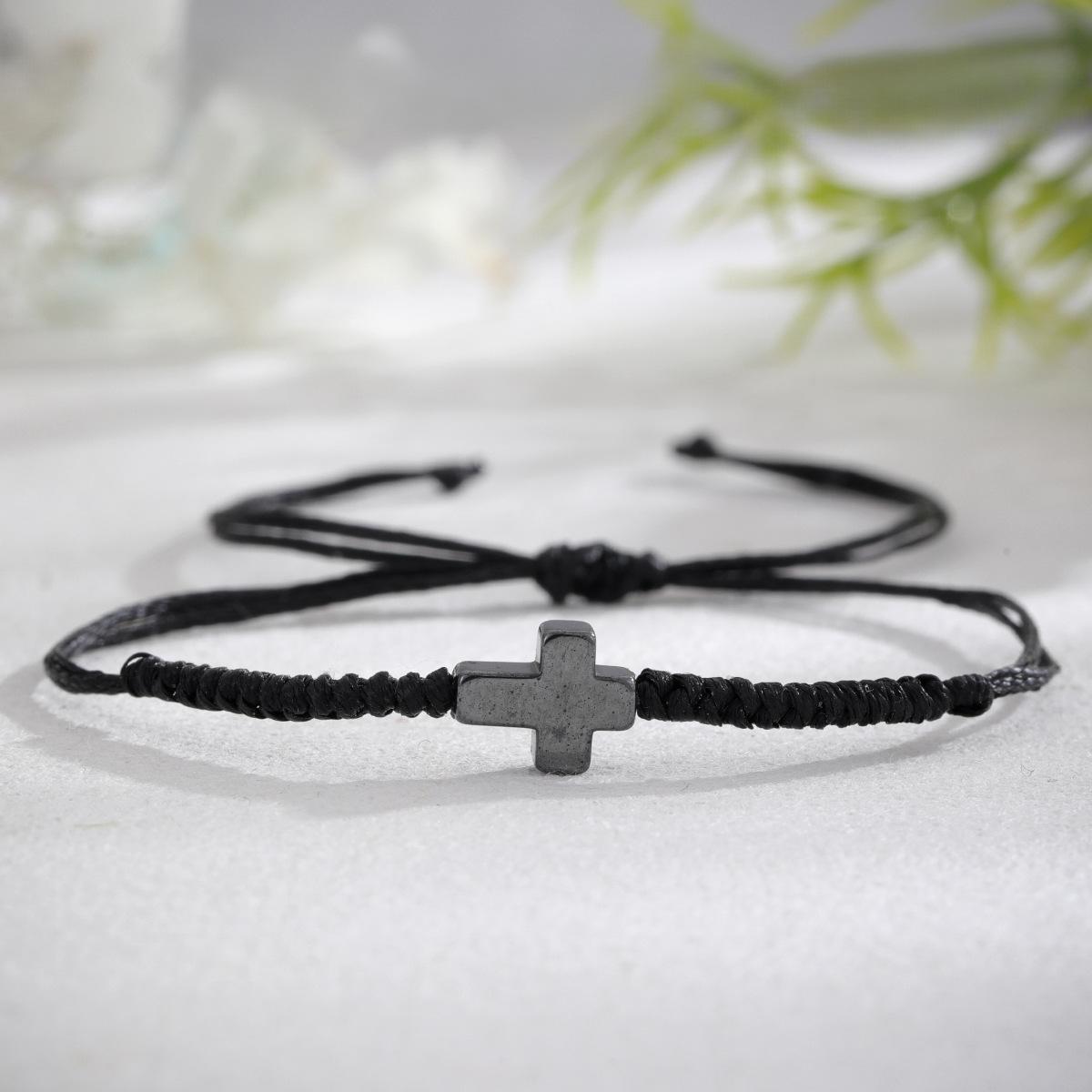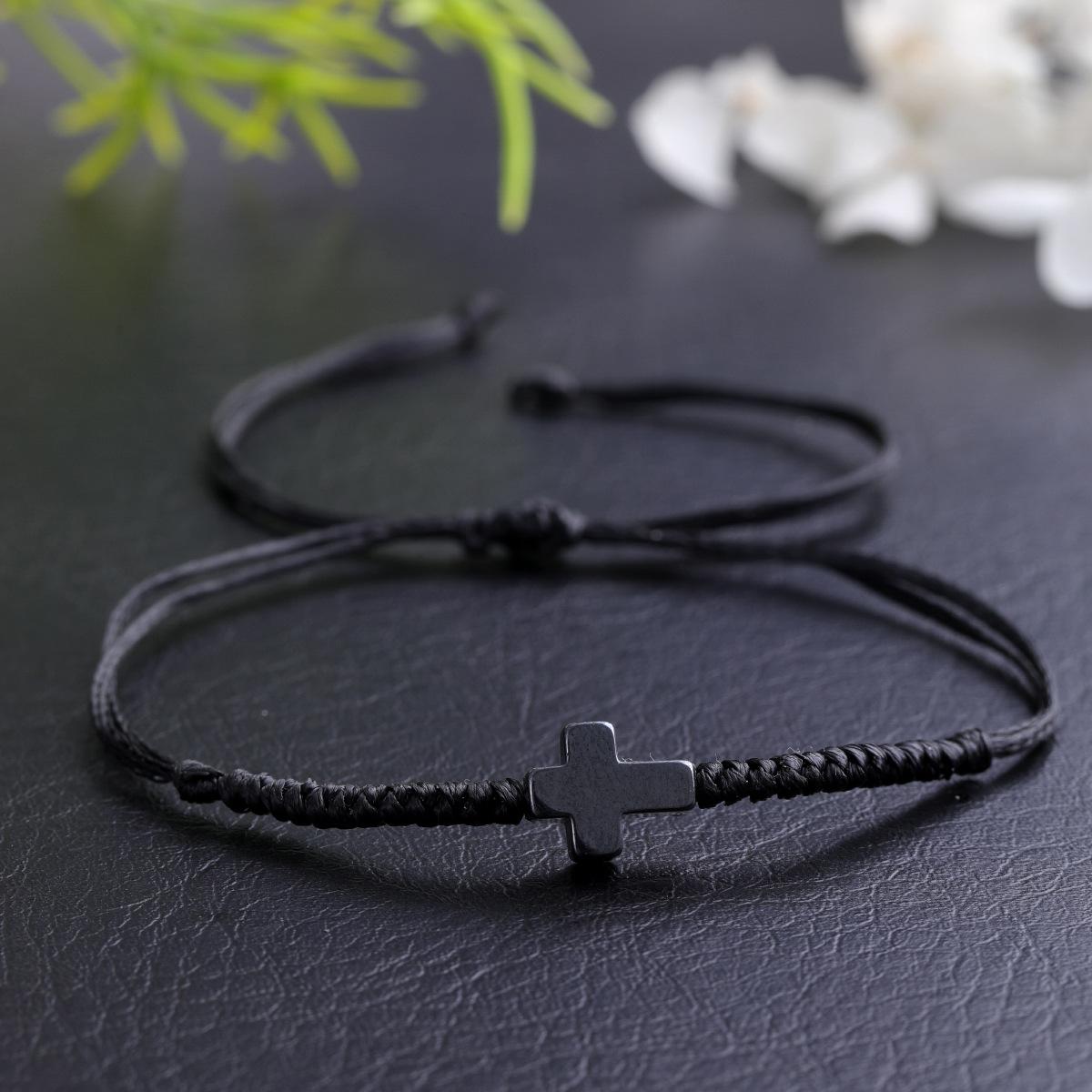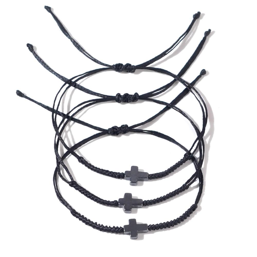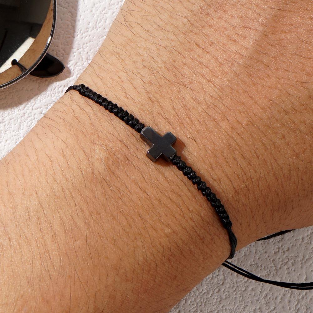 Pulsera minimalista de cruz de piedra natural negra para hombre con sensación de alta gama, adecuada para moda urbana, juego de pulseras al por mayor